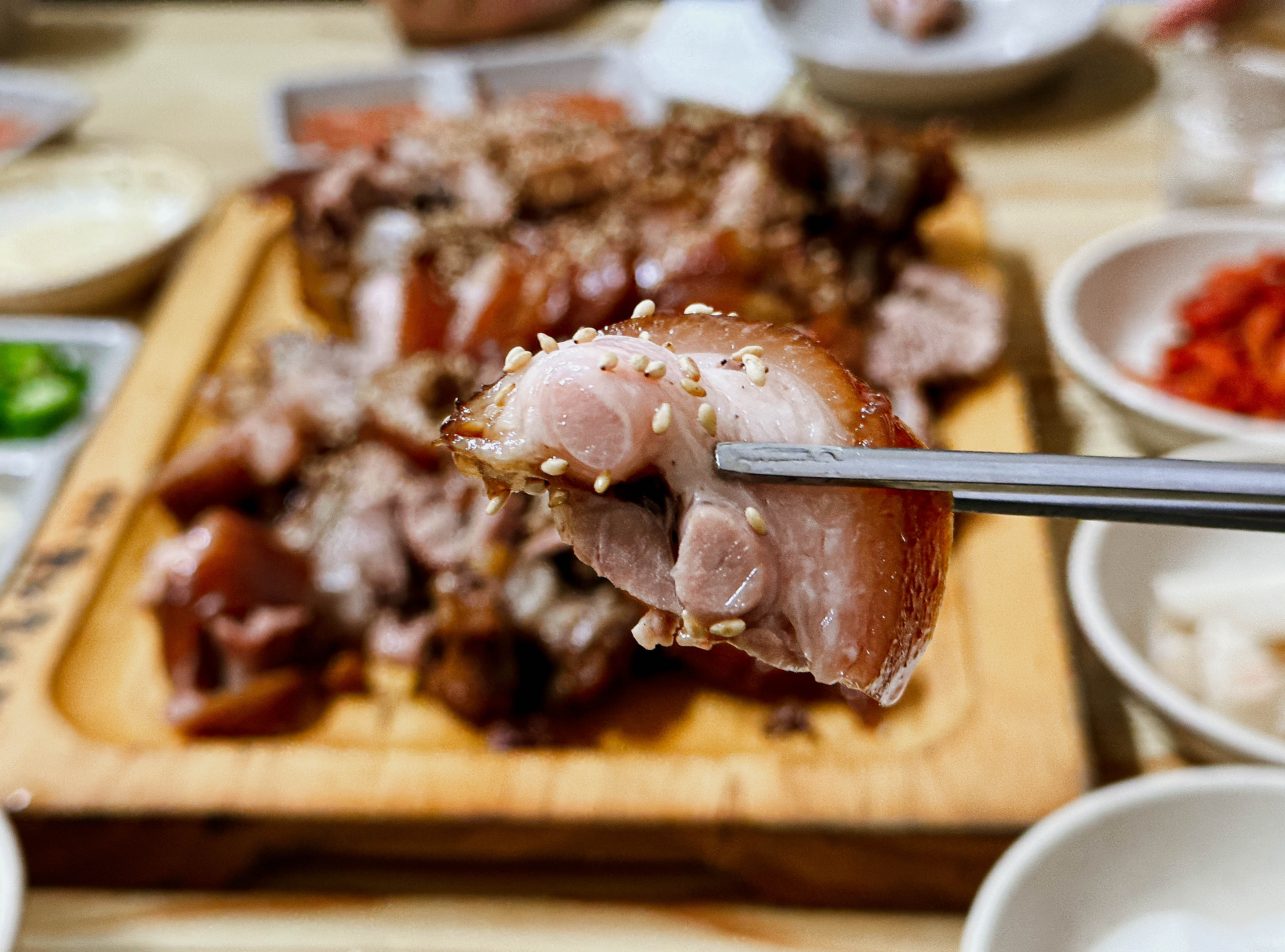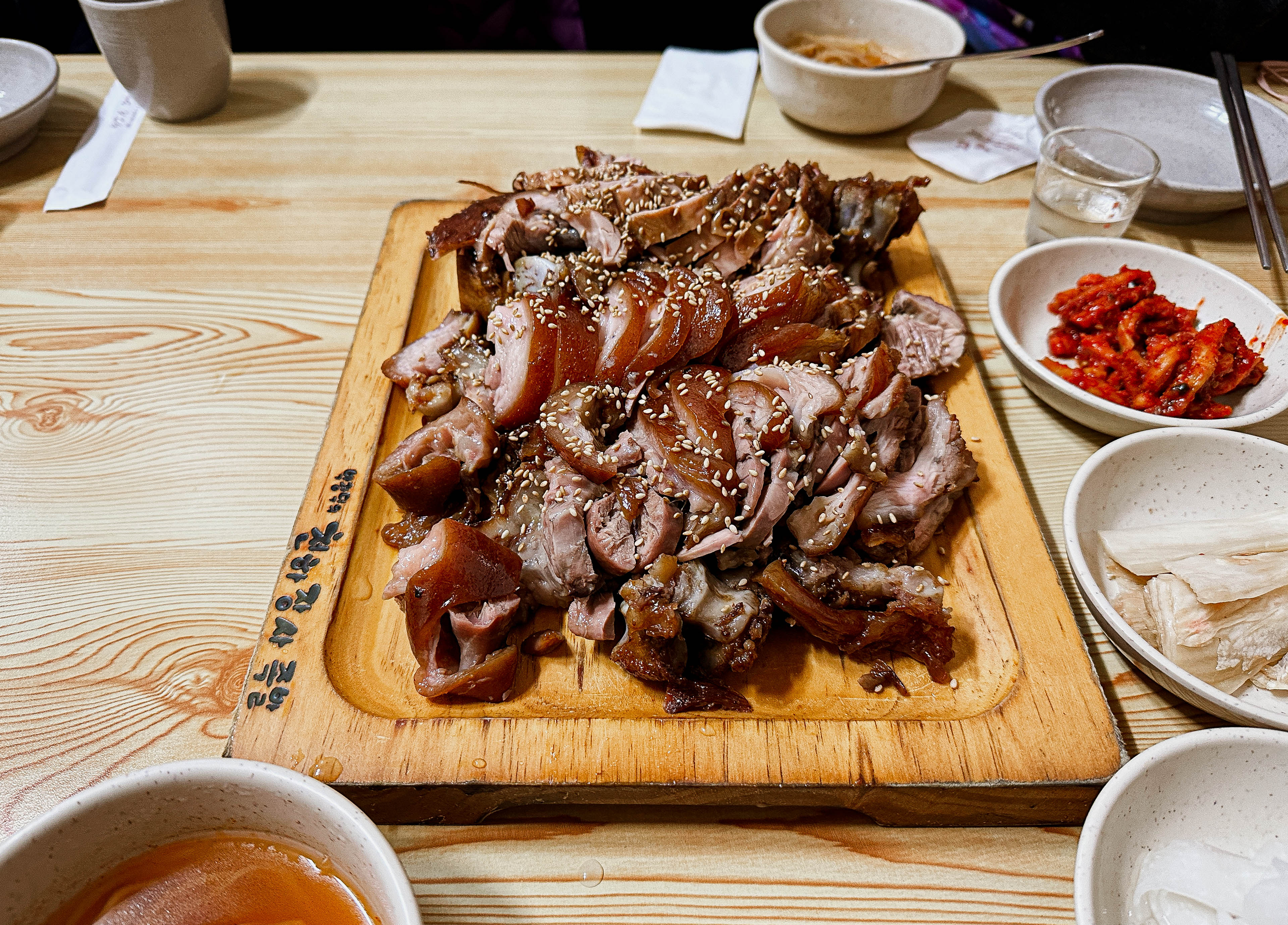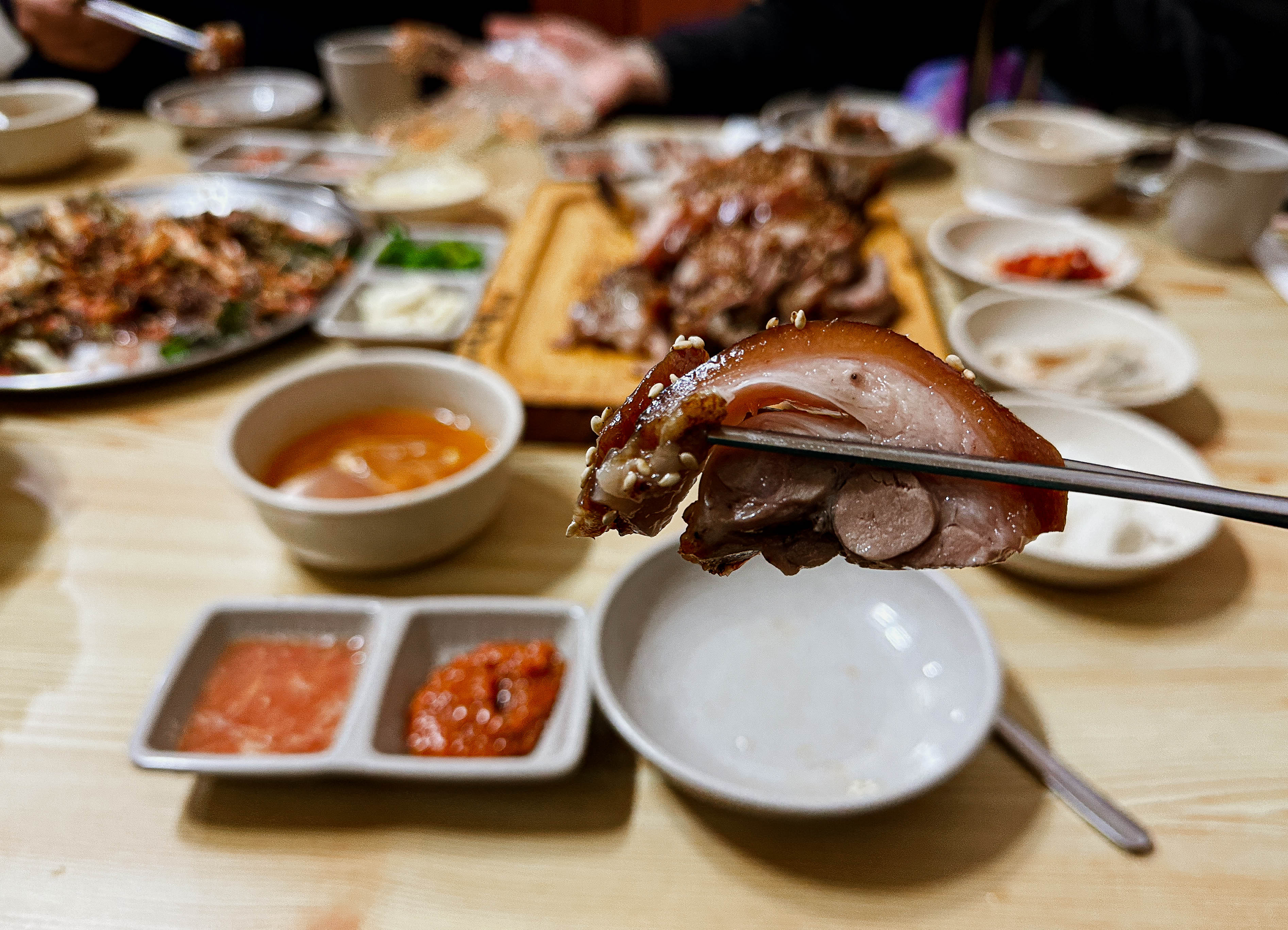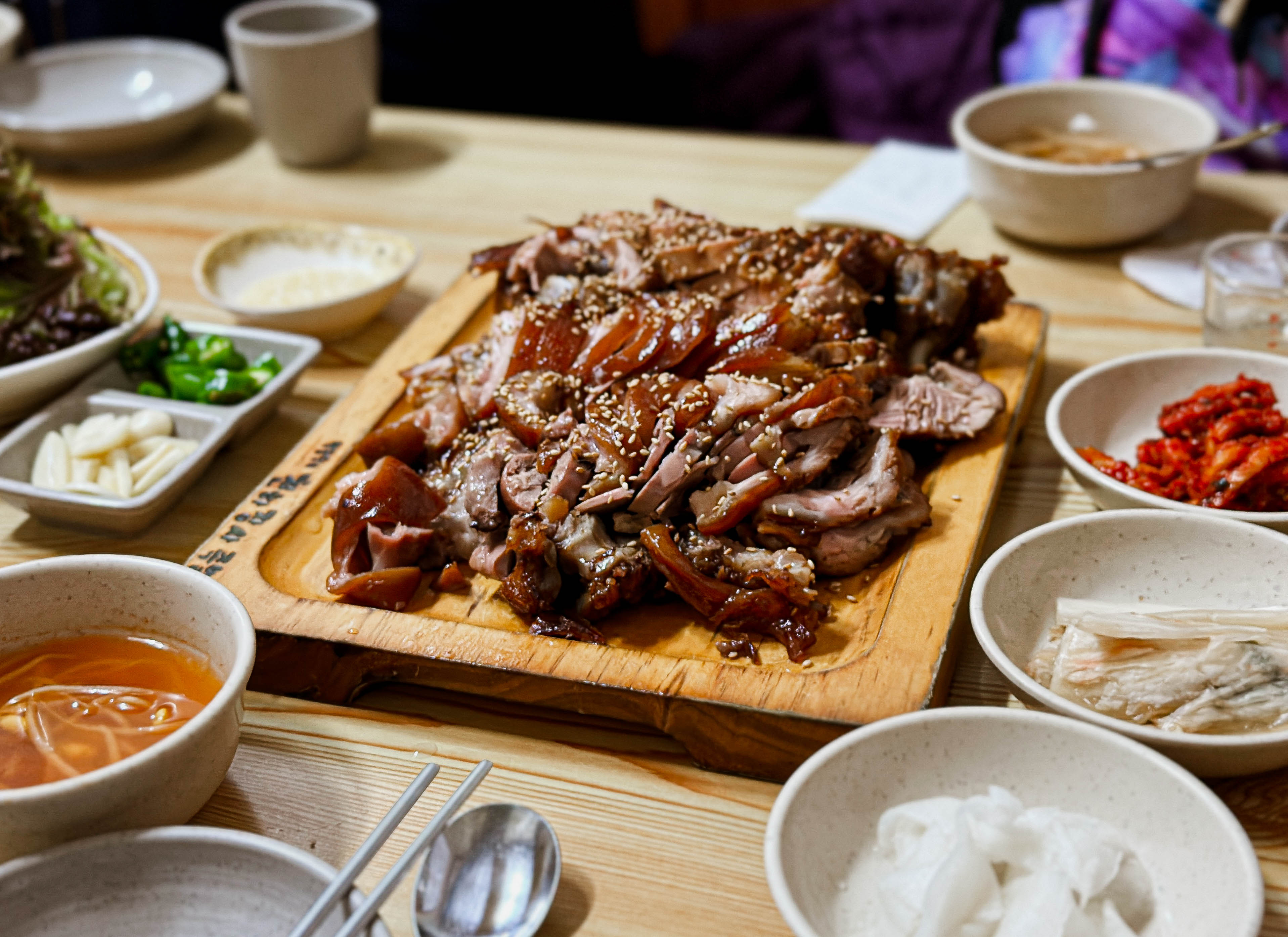 야들야들 부드러운 식감의 족발은 잡내도 없이 맛있었고, 특히 함께 내어주신 마늘소스랑도 잘 어울렸습니다. 저도 나이를 먹었는지 족발을 마늘이랑 고추랑 같이 곁들여 쌈을 싸서 먹어야 덜 느끼하더라고요. 또 상추가 졸음을 유발한다고(?) 하니, 다음날 일정을 위해 많이 먹어두었죠.