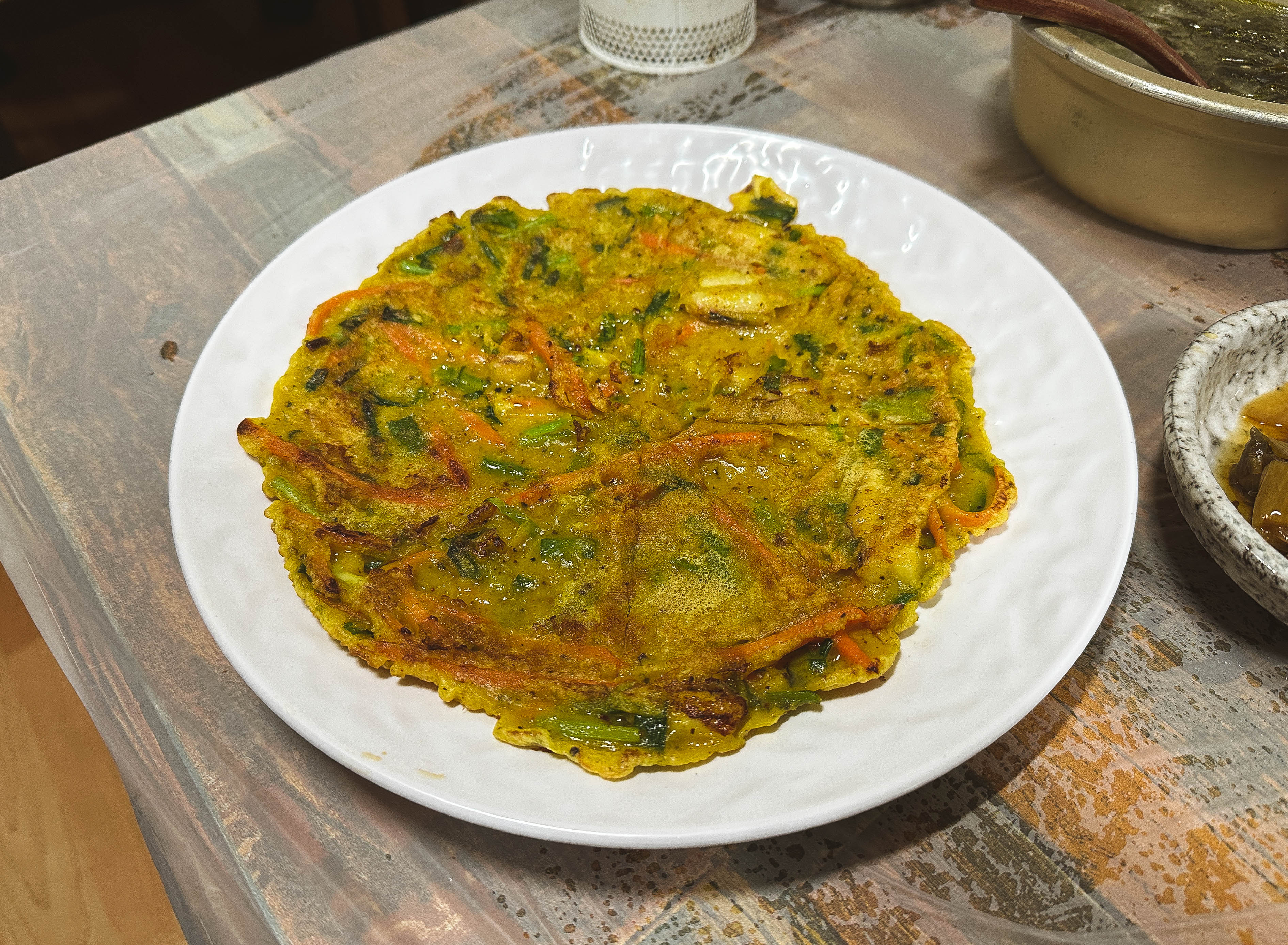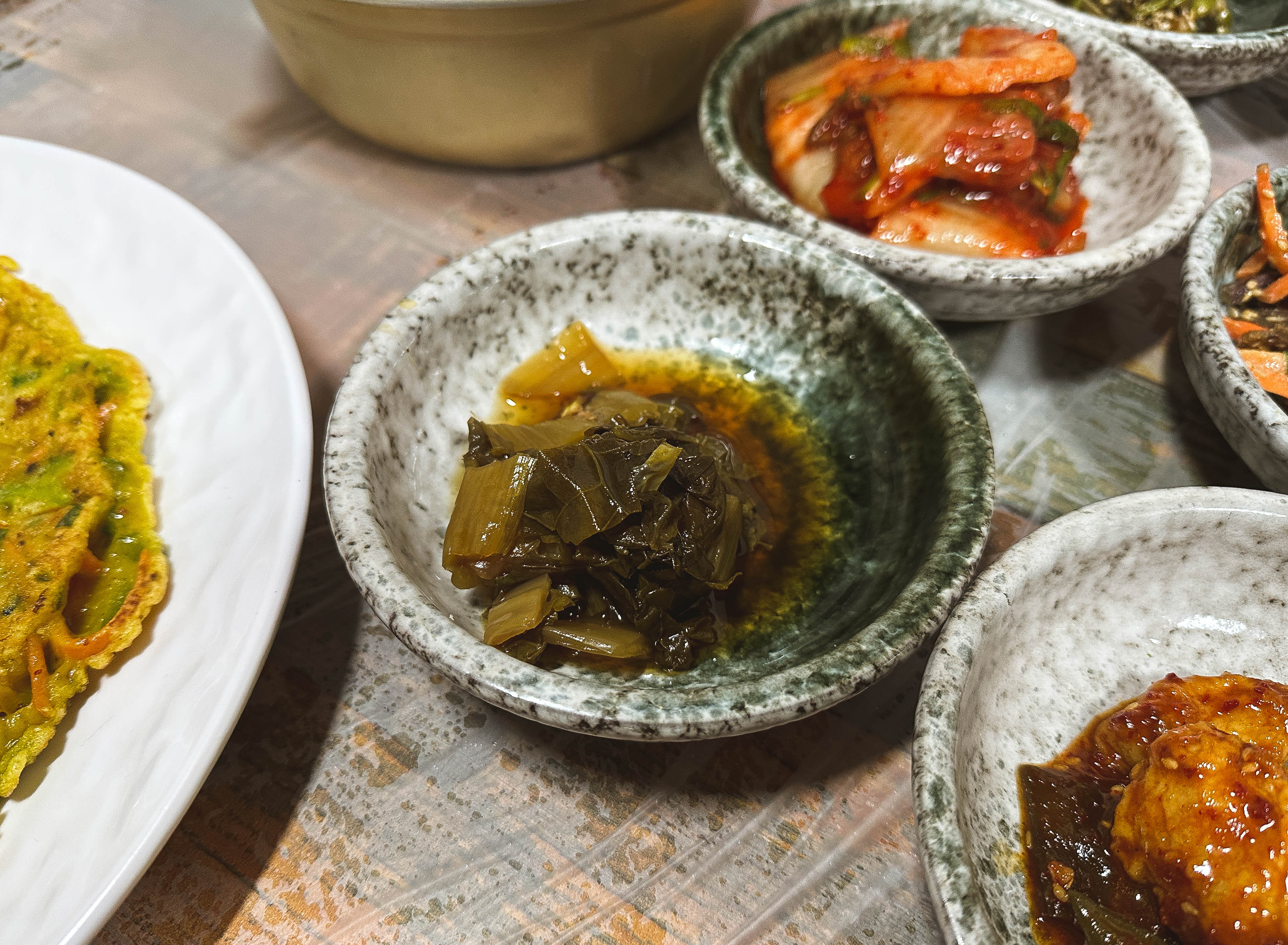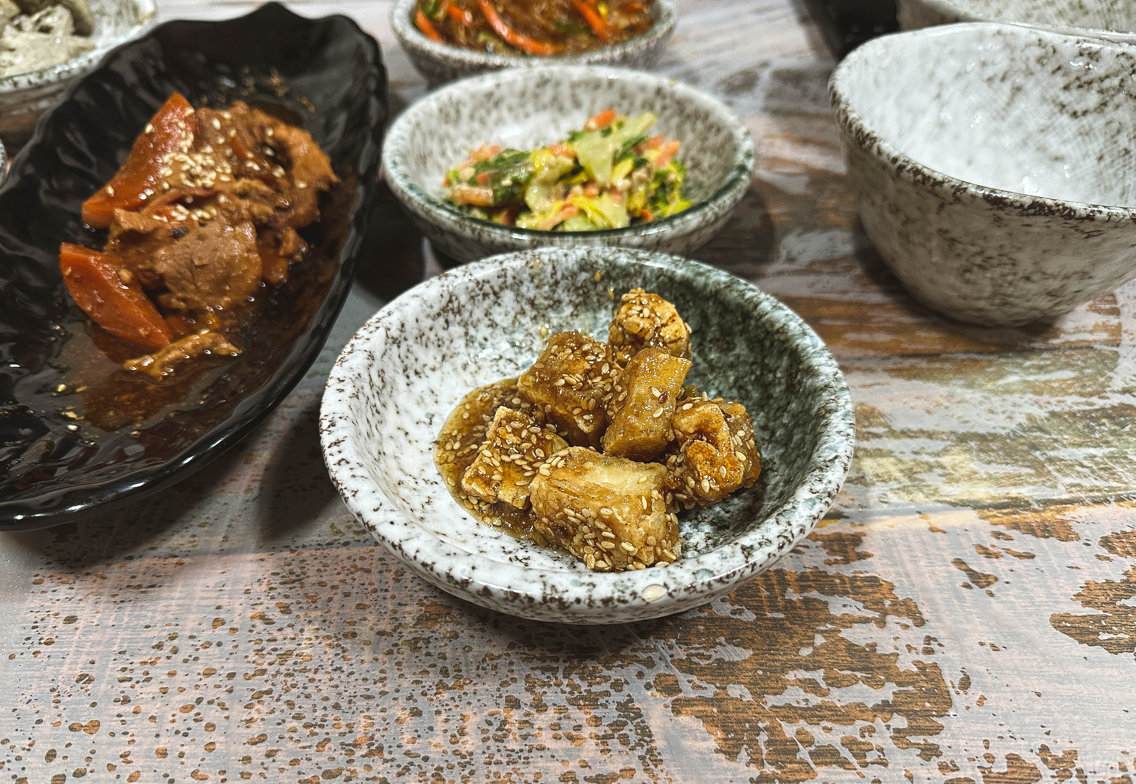 반찬은 오징어제육볶음, 멸치볶음, 갓장아찌, 두부강정, 어묵볶음, 미역국, 잡채, 해물파전 등이 있었습니다. 반찬들의 간은 전체적으로 심심한 편이었는데, 저는 음식을 짜게 먹는 편은 아니어서 입맛에 잘 맞았습니다.