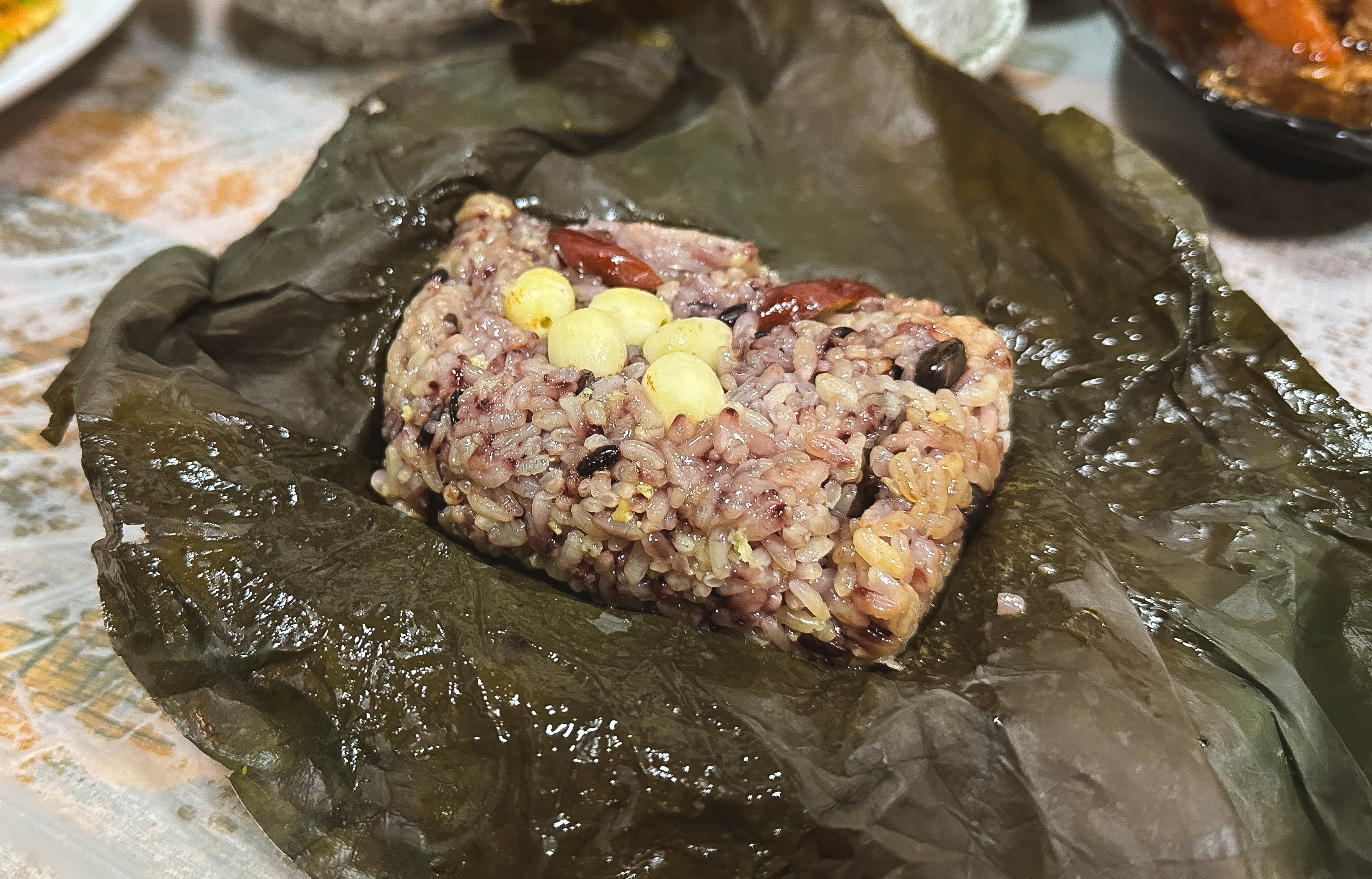 산장가든의 메뉴는 연잎밥을 포함한 12가지 정도의 국과 반찬들이 나왔습니다. 밥은 연잎에 쌓여 나오는데, 찰기가 있는 잡곡밥이 들어있었습니다. 연잎밥을 원치 않는 분은 일반 공기밥으로도 받을 수 있는 것 같았습니다.