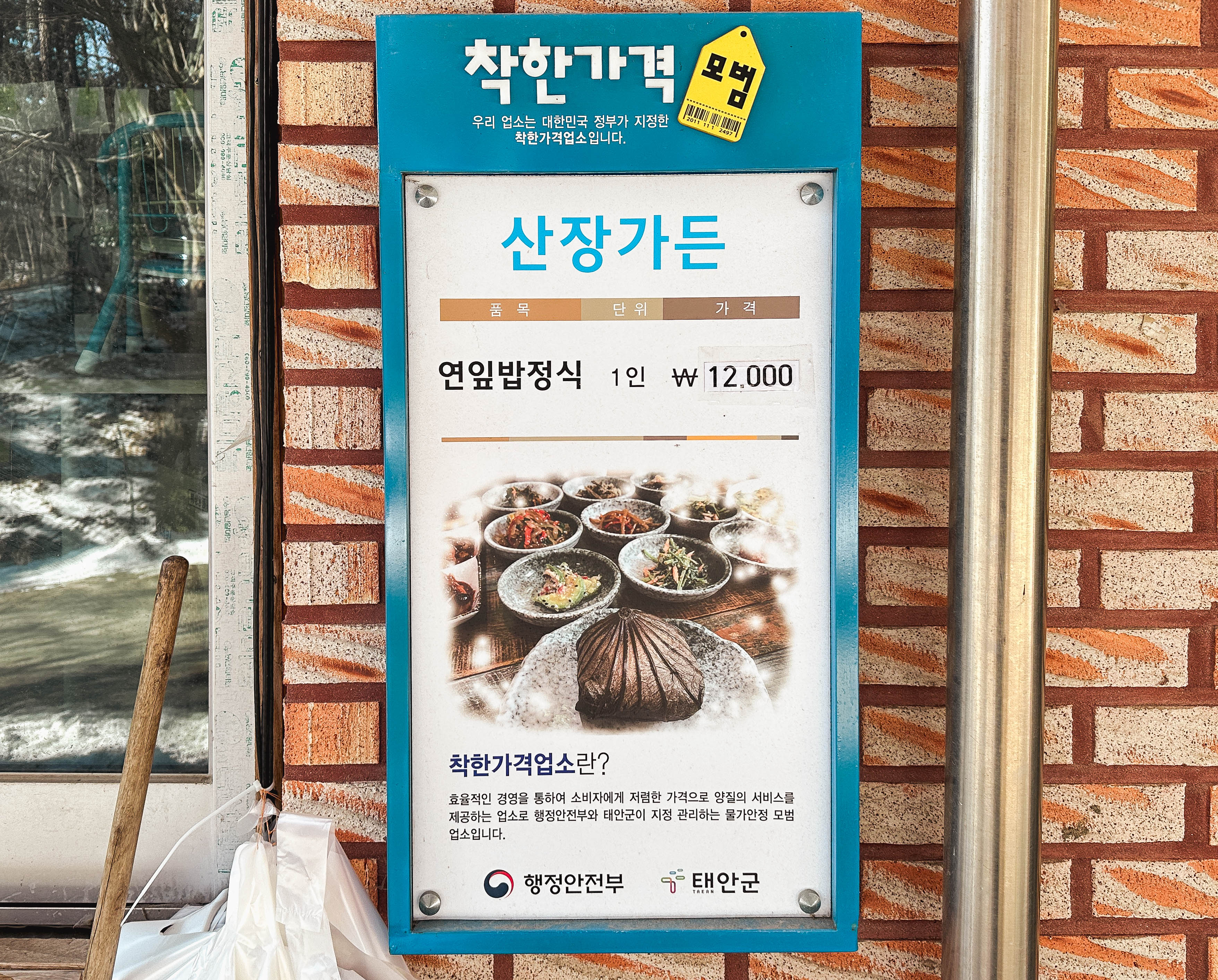 태안 산장가든은 냉천골 계곡 인근에 있는 가게로, 현지인들이 찾는 숨겨진 맛집이라고 합니다. 특히 합리적인 가격에 반찬까지 부담 없이 계속 리필해주셔서 더 유명한 가게였습니다.