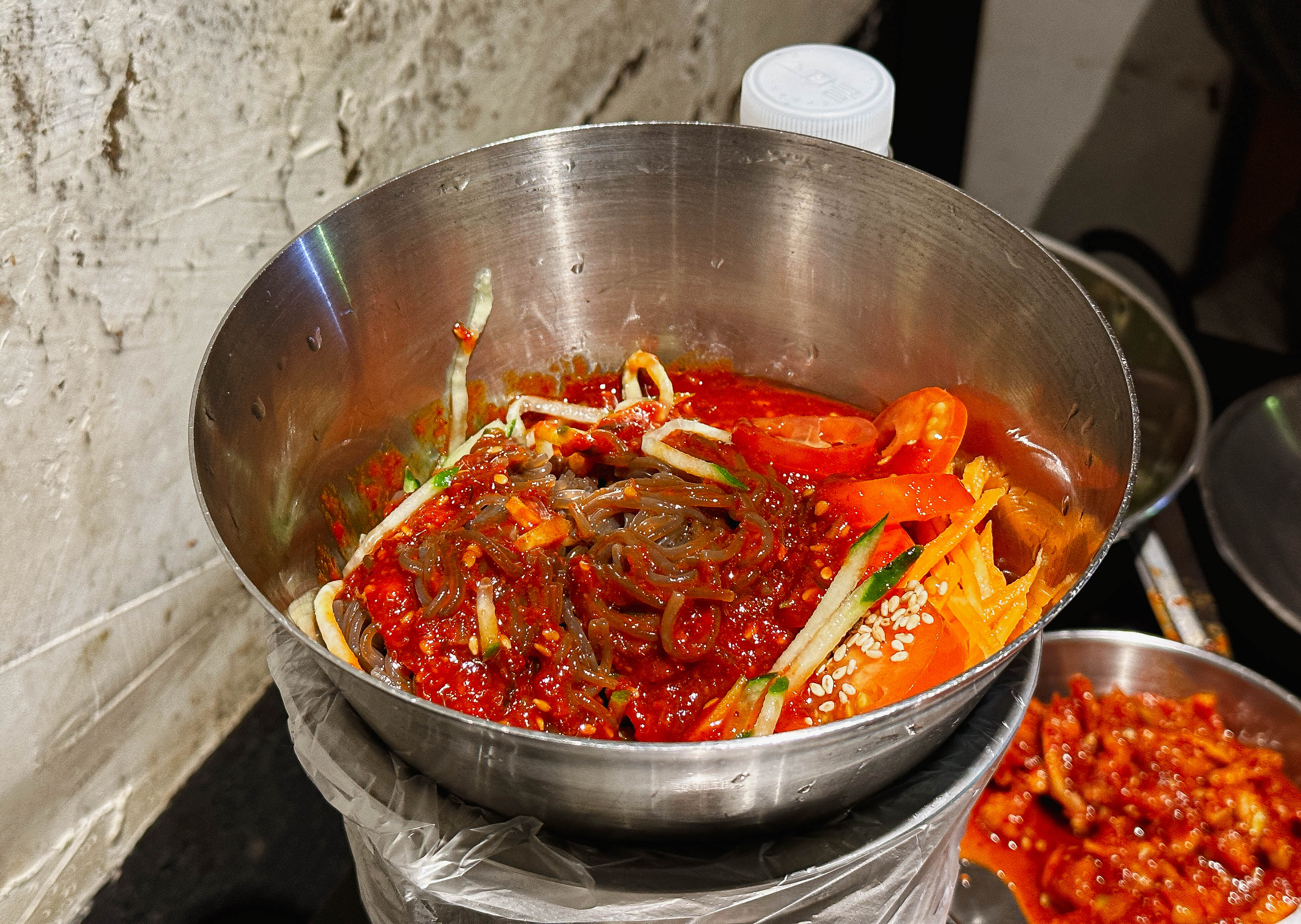 족발에 같이 곁들여 먹었던 비빔국수의 모습입니다. 매콤 새콤한 양념에 찰기 있는 면이랑 잘 어우러져 군침돌게 하는 메뉴였습니다. 족발만 먹어도 맛있었지만, 뭔가 곁들이고 싶은 분께 추천드립니다.