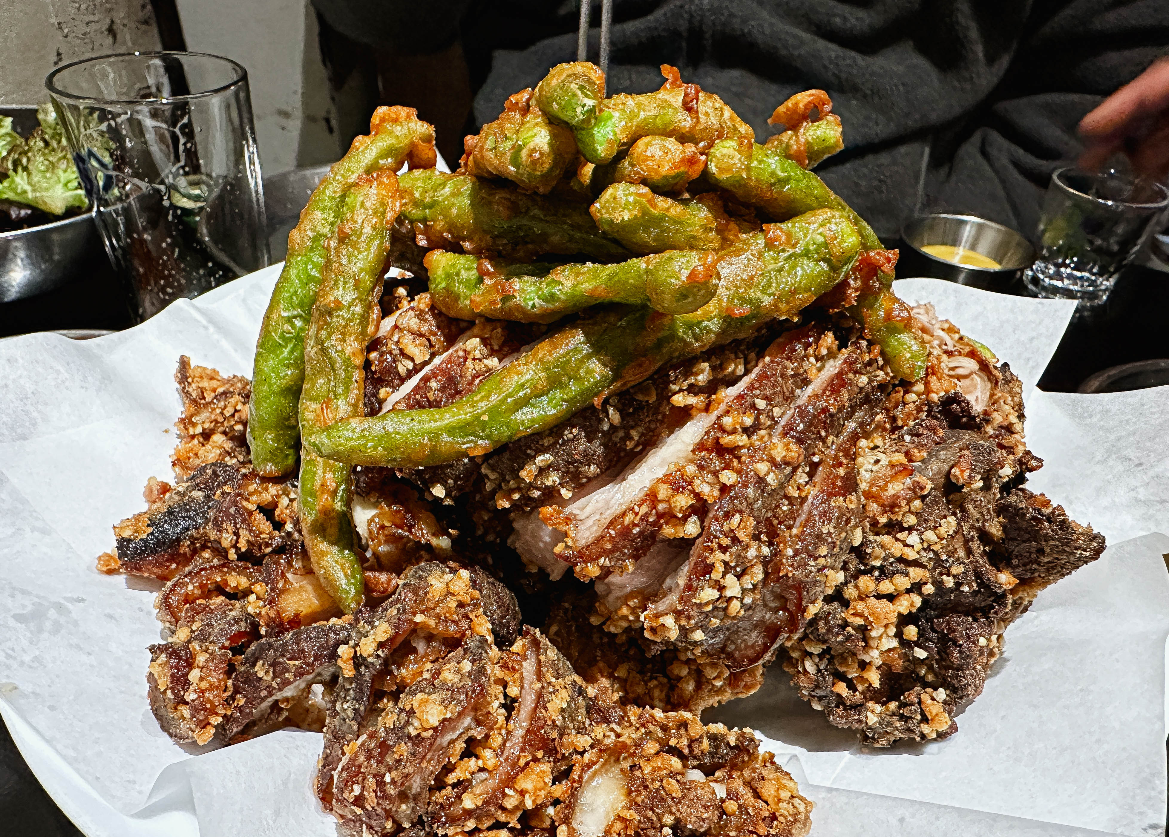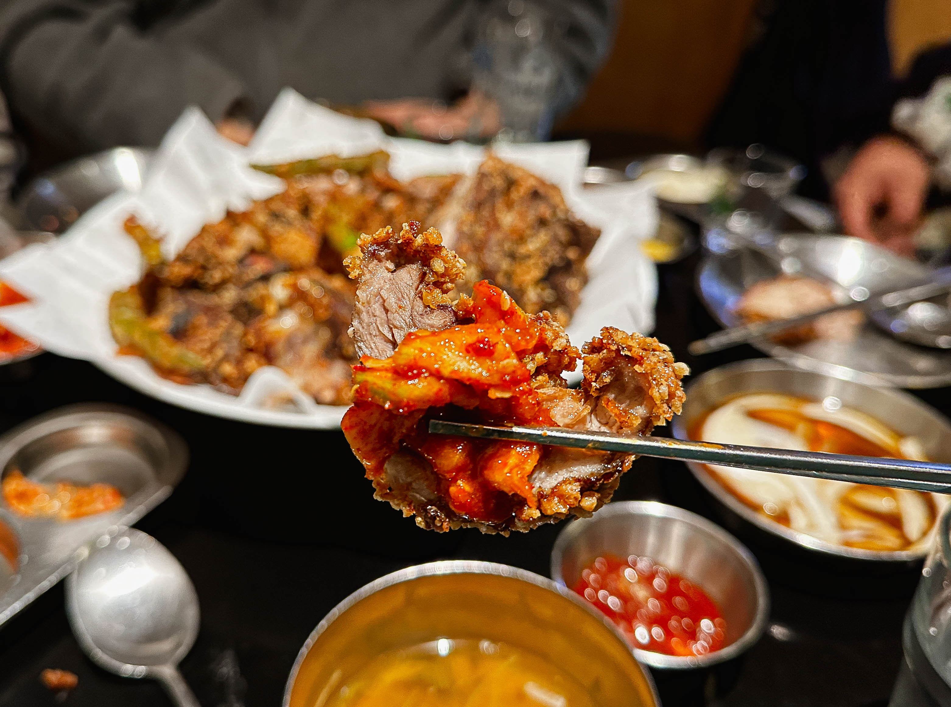 그믐족발의 튀김족발은 제가 다녀본 여러 군데 튀김족발집 가운데 가장 맛이 완성도 높았습니다. 겉바속촉을 제대로 표현했고, 현미베이크 치킨처럼 튀김옷을 입혀 크런키 한 식감이 돋보이는 메뉴였습니다. 족발 자체도 기름내 안 나고 느끼하지 않았지만, 매콤한 꽈리고추와 함께 먹으면 더 맛있다는 사실. 대기가 길다는 것만 빼면 추천드리고 싶은 가게입니다.