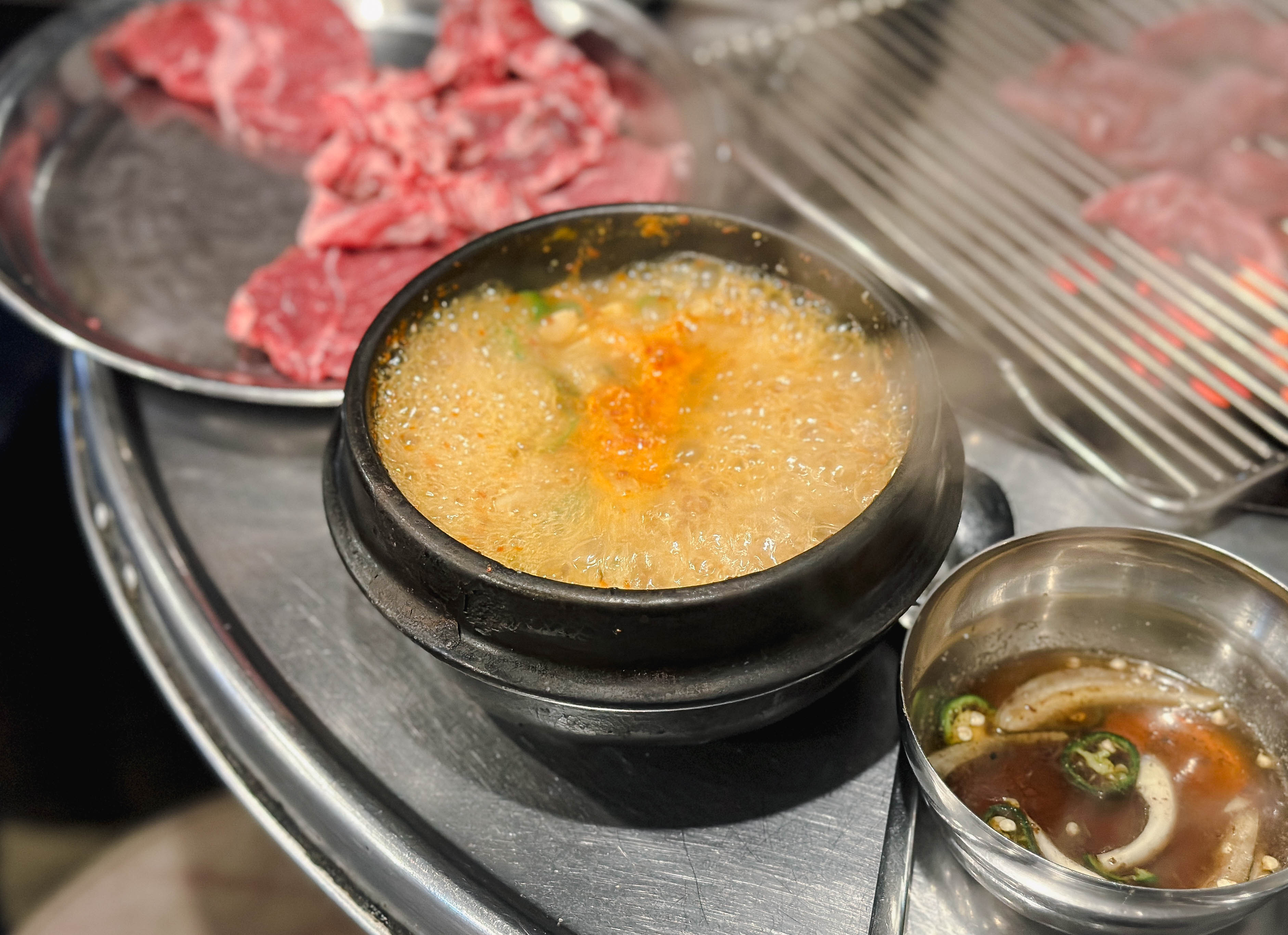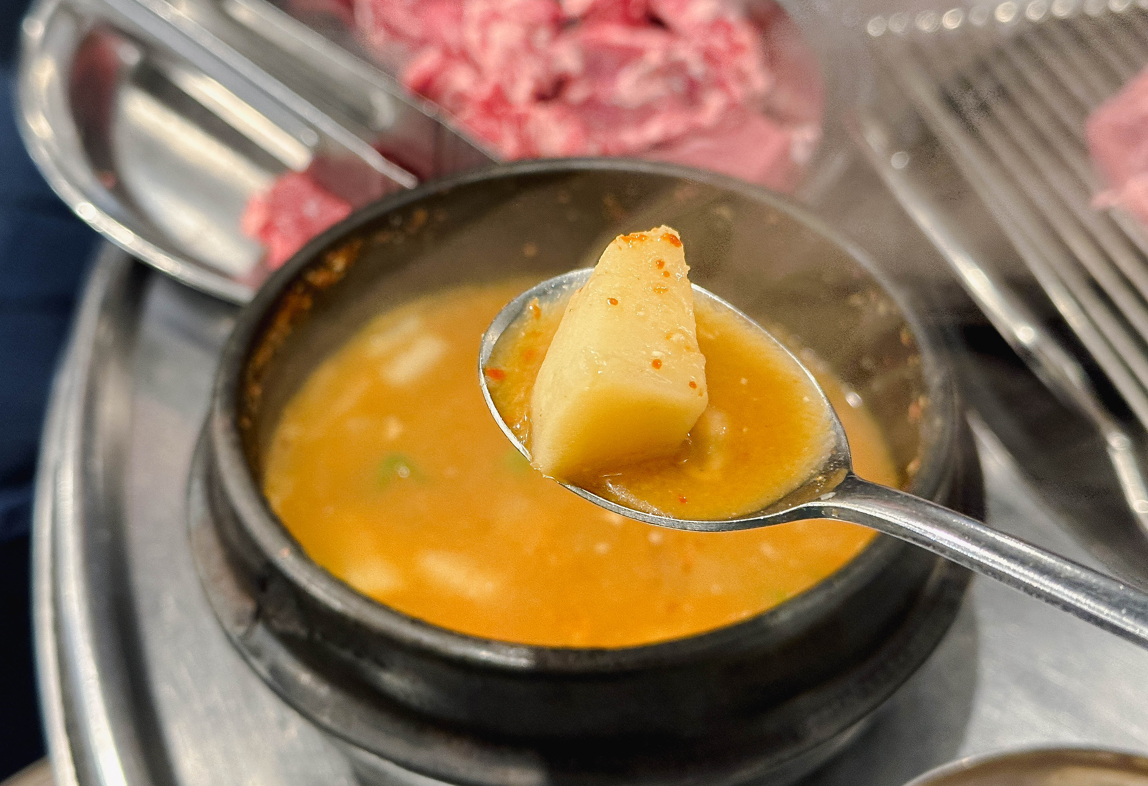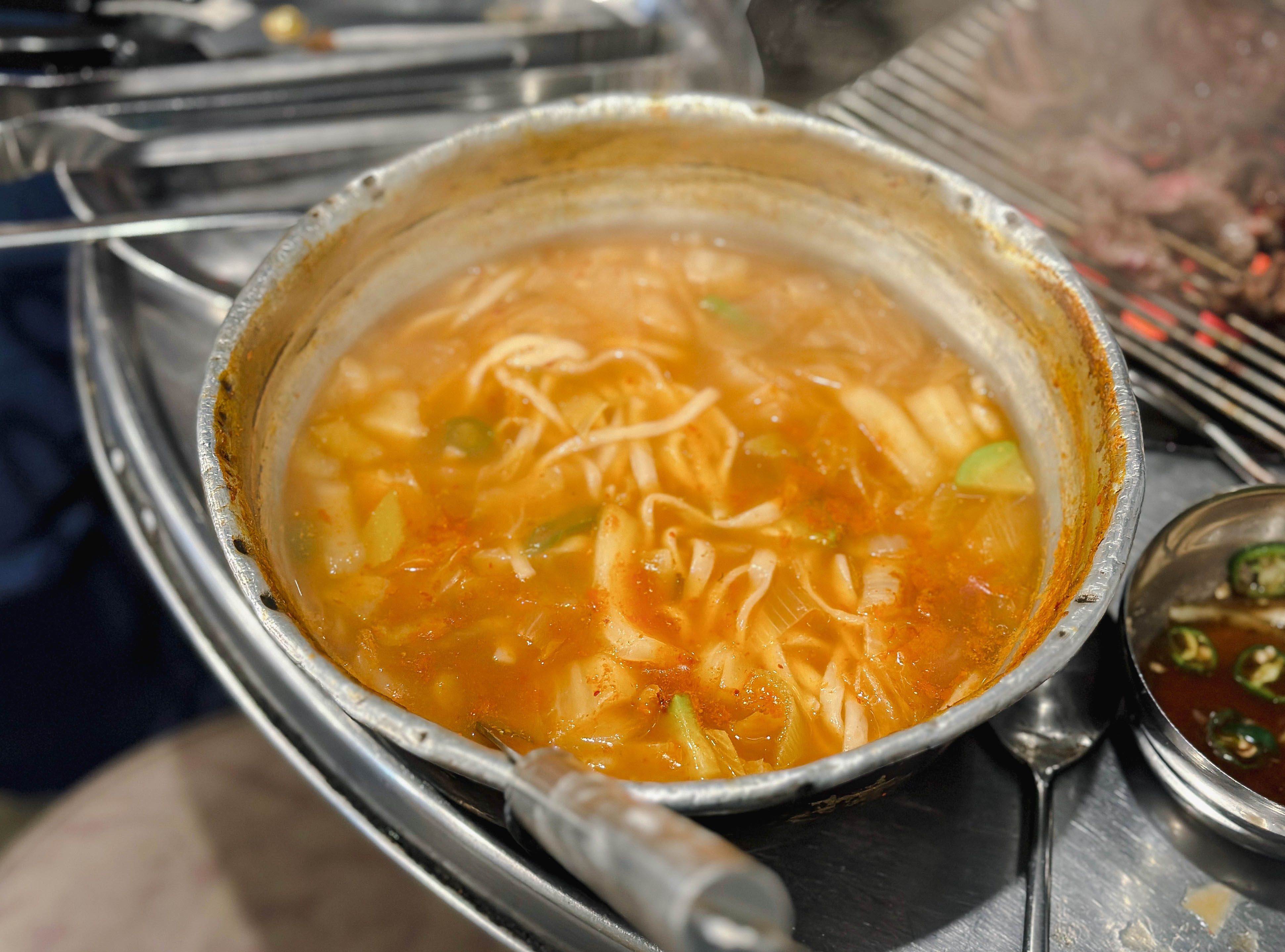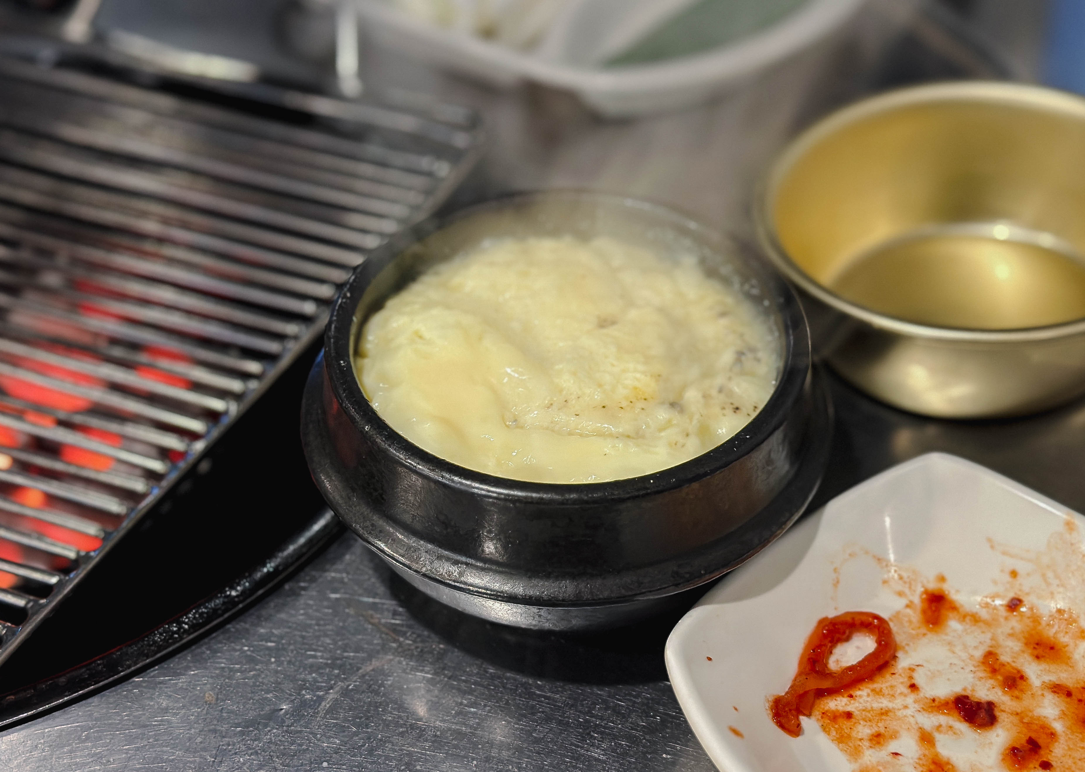 고기를 먹고 있을 때에 된장찌개와 계란찜이 나왔습니다. 계란찜은 후추를 뿌려서 그런지 독특한 향이 났는데, 향이 안 났으면 더 좋았을 텐데 조금 아쉽더라고요. 된장찌개는 그래도 먹을만했습니다. 그렇게 C 세트 2번을 먹고 나서 메뉴 중 궁금해서 먹어보려던 털랭이칼국수를 주문했습니다.