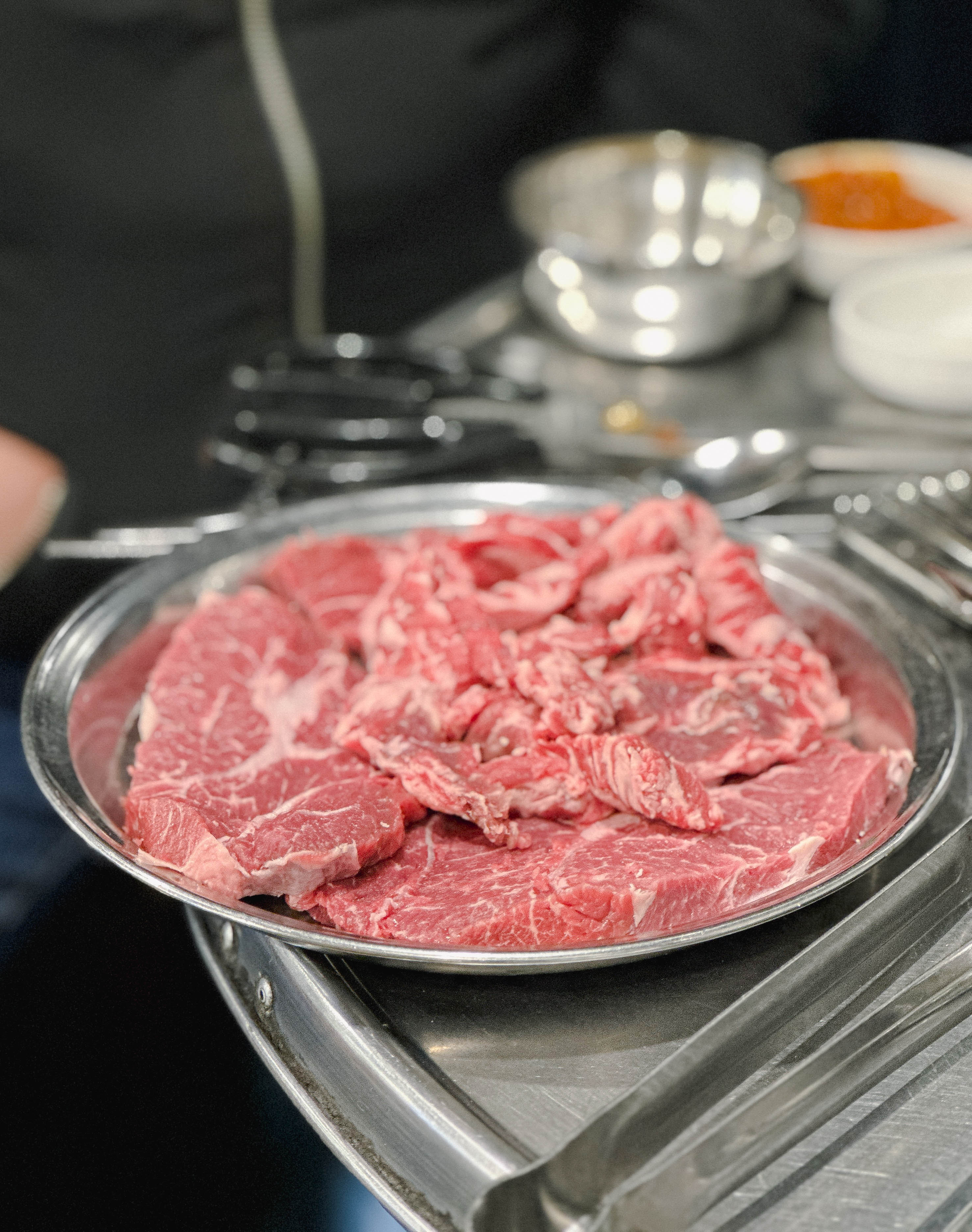 저희는 연신내기차길의 기차길 C세트를 주문했습니다. 이 세트는 소갈빗살과 부채살이 함께 나오는 메뉴였는데, 가격은 600g 35,000원으로 가격이 부담스럽지 않았습니다. 특히 서비스 메뉴로 된장찌개와 계란찜이 함께 나오니 별도의 메뉴를 주문하지 않아도 먹을 것이 많았습니다.