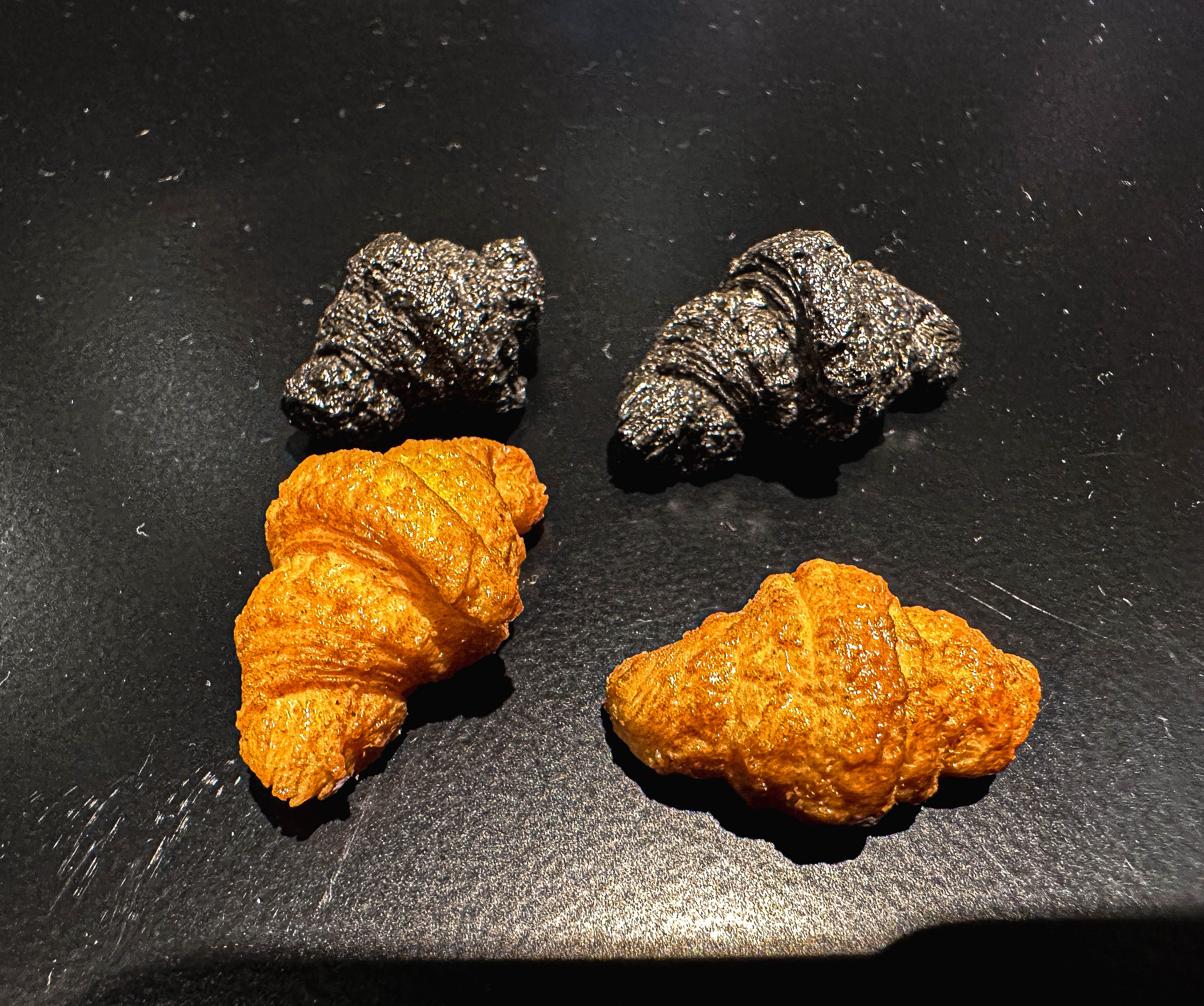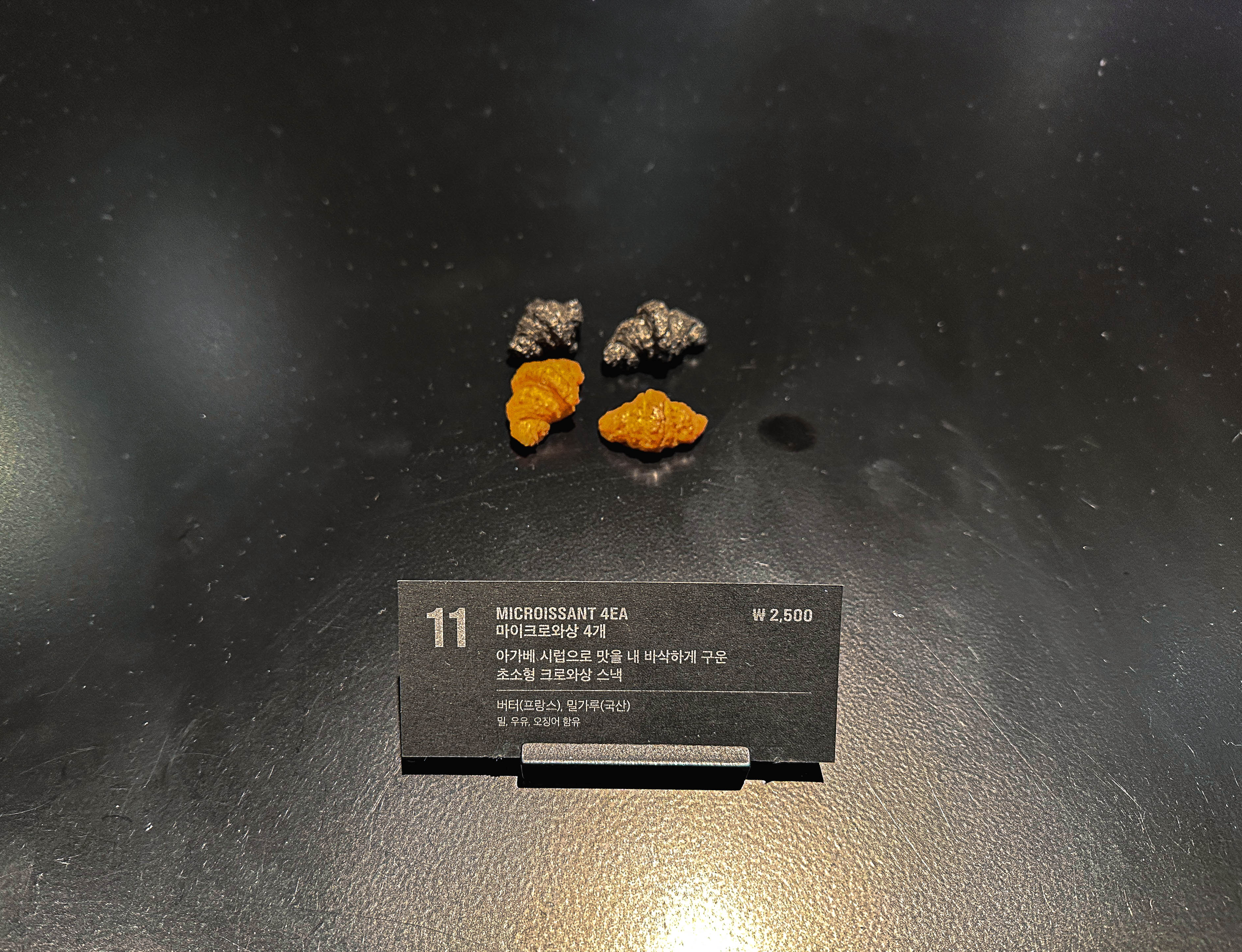 마이크로와상의 크기는 건포도 정도의 크기로, 일반적인 크로와상에 비해 현저히 작았는데, 맛은 과연 어땠을까요? 크기가 워낙 작고 글레이즈드 한 질감의 빵이다 보니, 막상 먹을 때 크로와상 특유의 겹겹이 나뉘는 층이 느껴지지 않고, 사탕 먹는 것 같더라고요.
