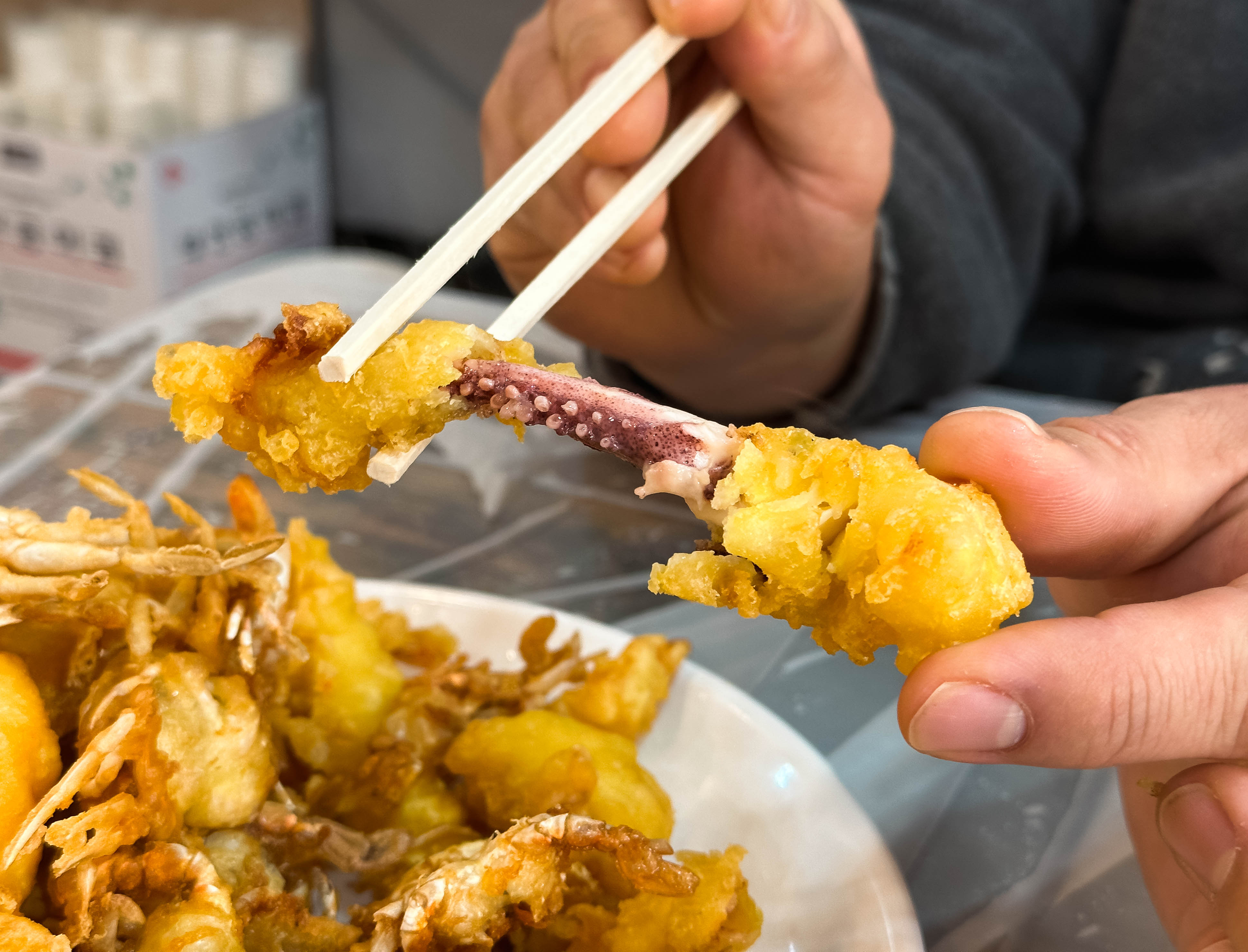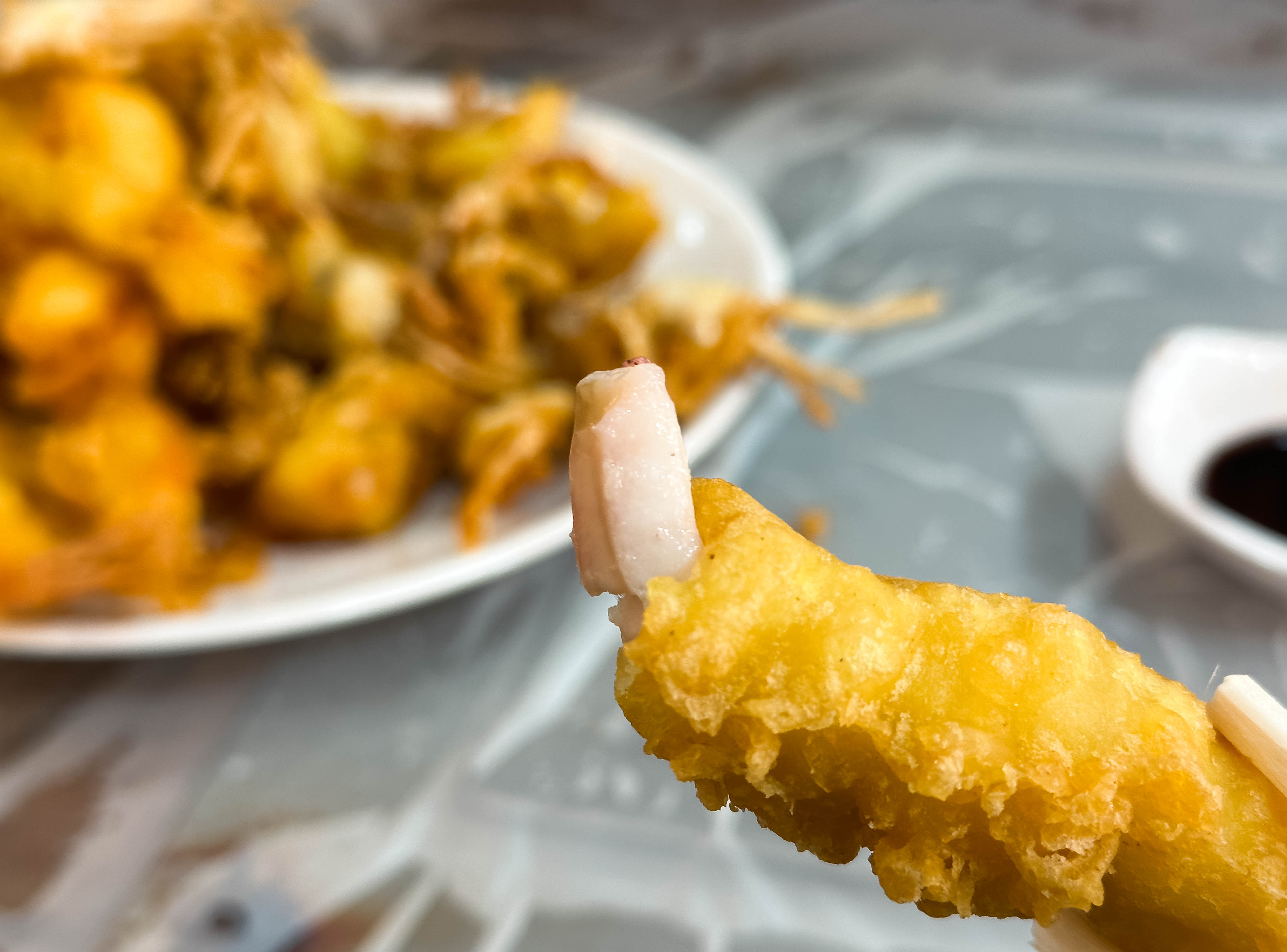 노릇노릇 바삭하게 튀겨낸 튀김들은 한 접시 가득 담겨 나왔고, 제법 양이 많았습니다. 튀김이라 기름지고 느끼할 줄 알았는데, 생각보다 느끼하지도 않고 맛있더라고요.