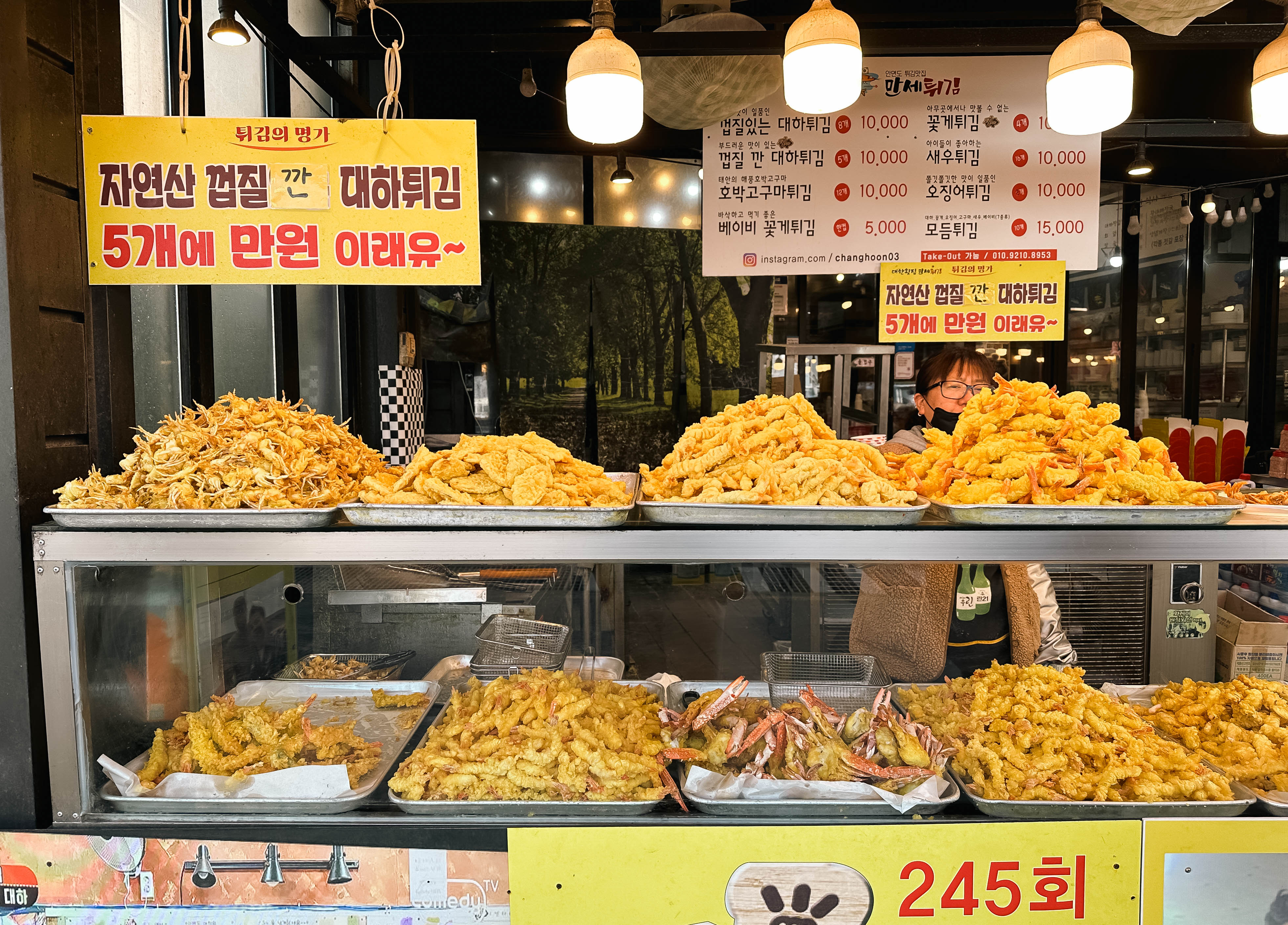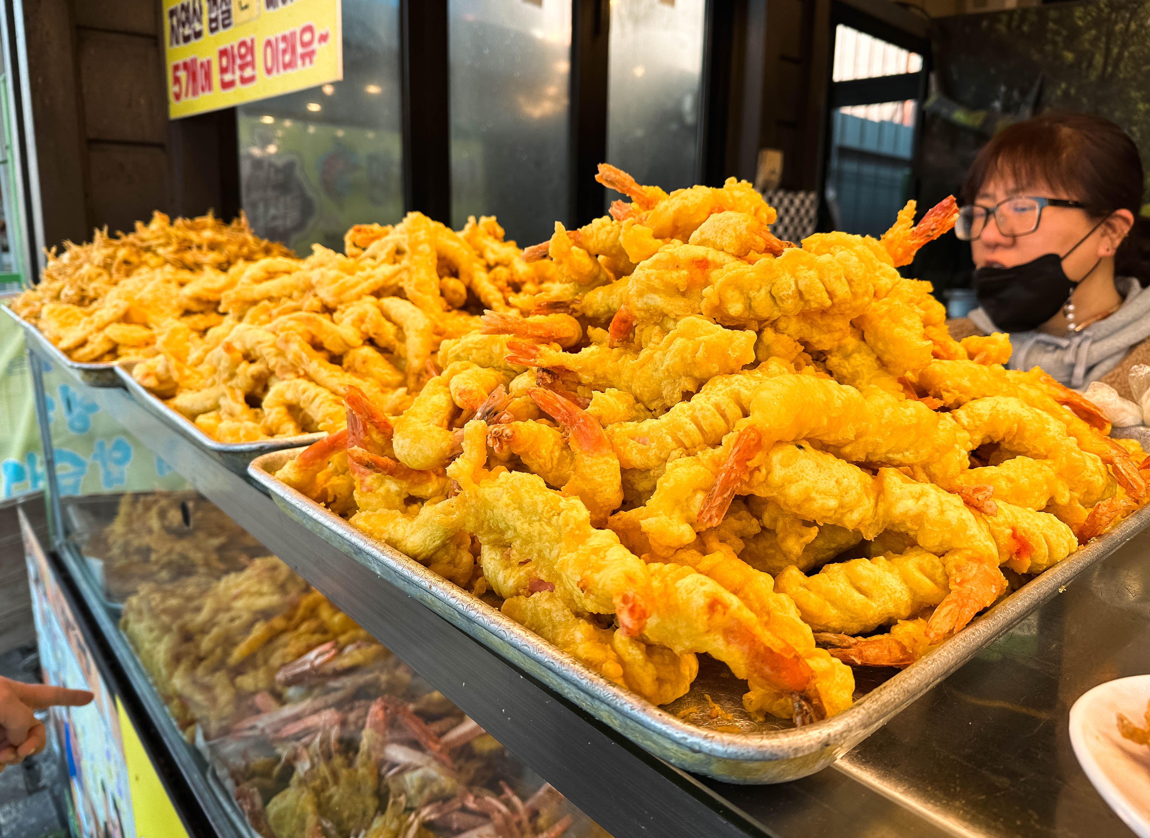 만세튀김의 새우튀김이랑 베이비 꽃게튀김, 꽃게튀김, 호박고구마튀김, 오징어튀김의 모습입니다. 노란 빛깔의 튀김옷이 적당한 두께로 입혀져 있었고, 튀김들은 기름냄새가 나지 않아 맛이 좋았습니다. 특히 꽃게나, 새우같이 갑각류 튀김은 자체적으로 껍데기가 있어 더 바삭한 느낌이 강했습니다.