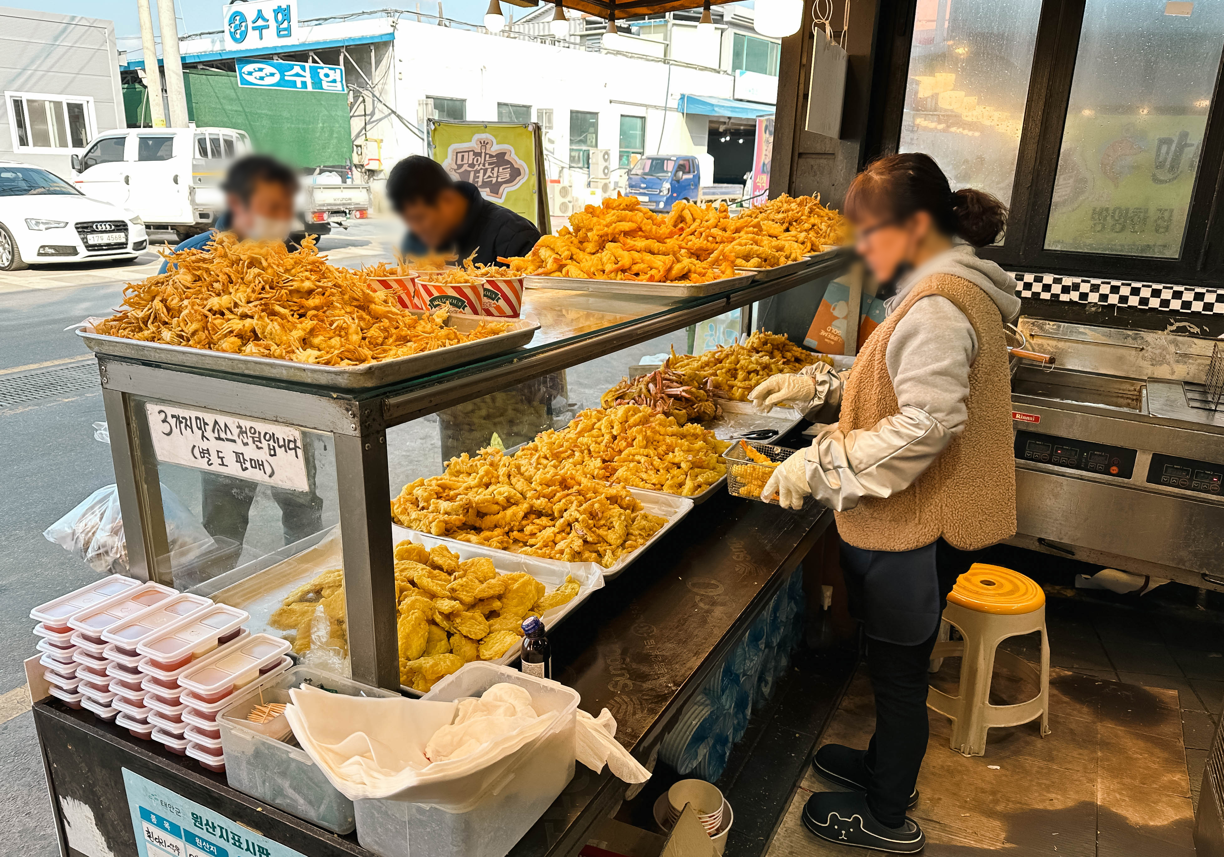 태안 만세튀김의 위치는 충남 태안군 안면읍 창기리 1269-96 에 위치해 있으며, 월~금요일 09:00~21:00 까지 운영하는 가게였습니다. 앞서 소개해드린 것처럼 백사장 어촌계 수산시장과 가까이 위치해 있어 수산물을 사면서 간식으로 먹기에 좋았습니다.