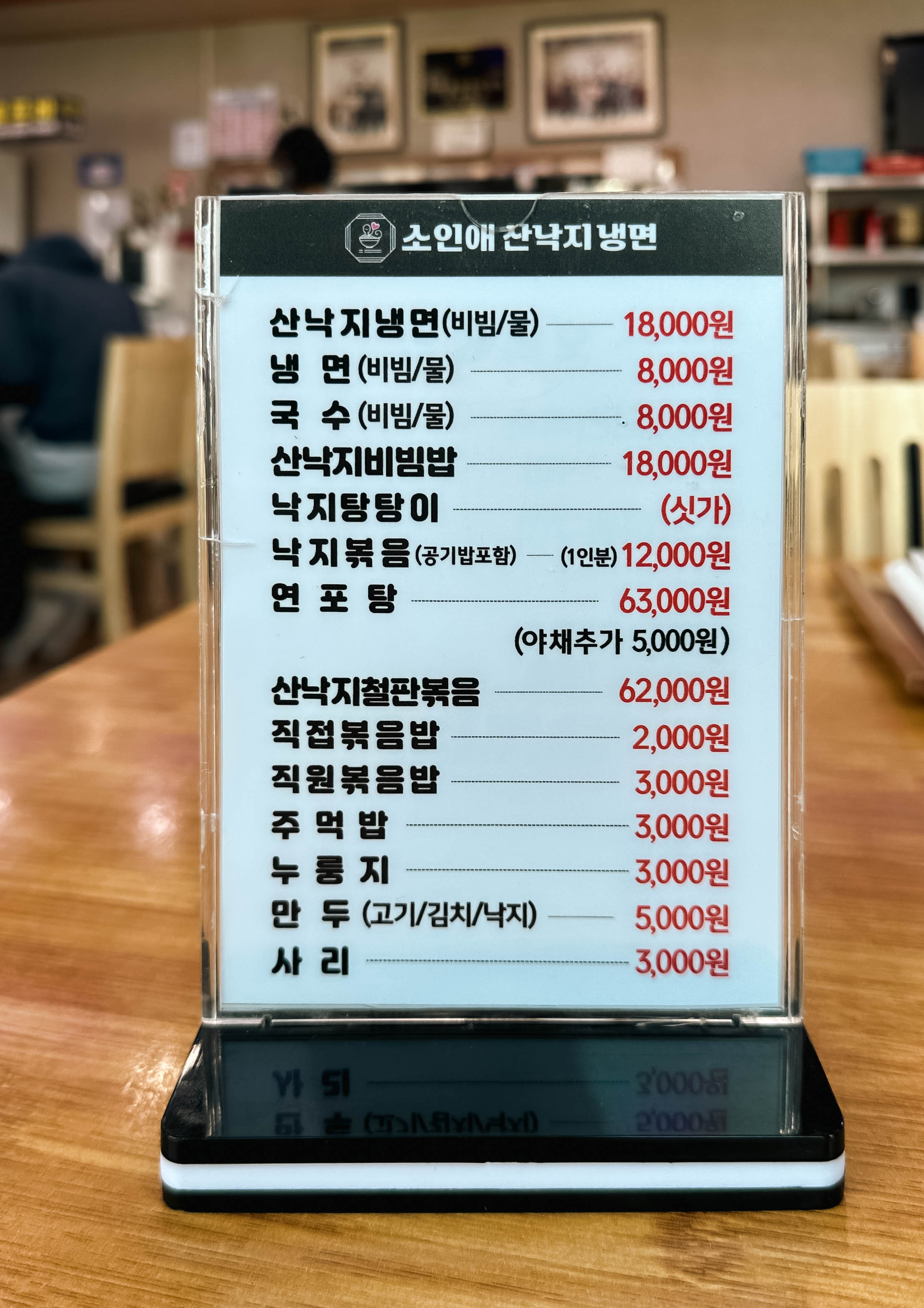소인애 산낙지냉면은 우연한 계기로 방문하게 되었는데, 냉면 속에 꿈틀대는 산낙지의 충격적인 비주얼에 저는 신기했지만, 어떤 분들은 산낙지의 꿈틀대는 모습에 충격을 받지 않으실까 걱정되기도 하는 메뉴였습니다.