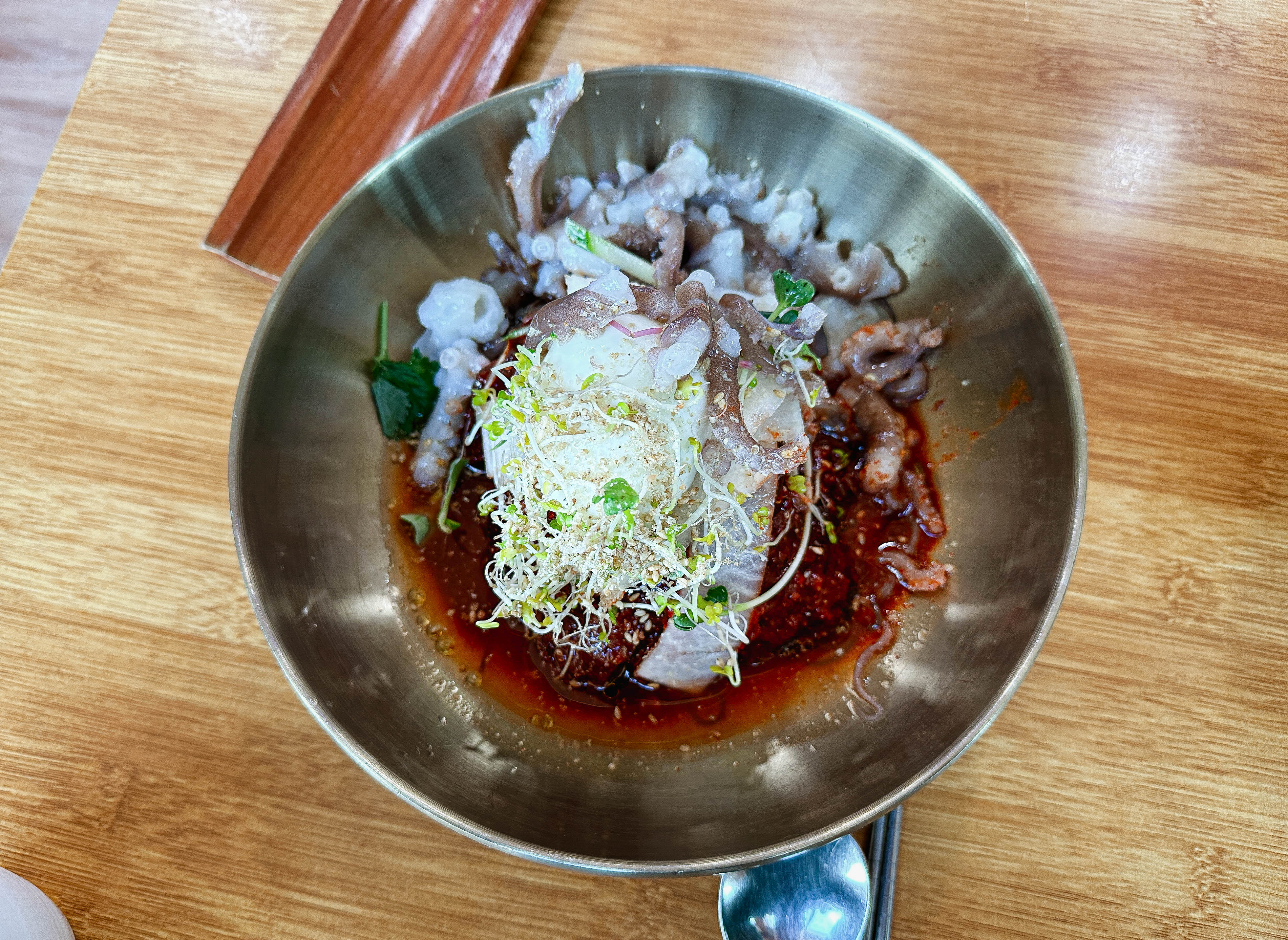 소인애 산낙지냉면은 우연한 계기로 방문하게 되었는데, 냉면 속에 꿈틀대는 산낙지의 충격적인 비주얼에 저는 신기했지만, 어떤 분들은 산낙지의 꿈틀대는 모습에 충격을 받지 않으실까 걱정되기도 하는 메뉴였습니다.