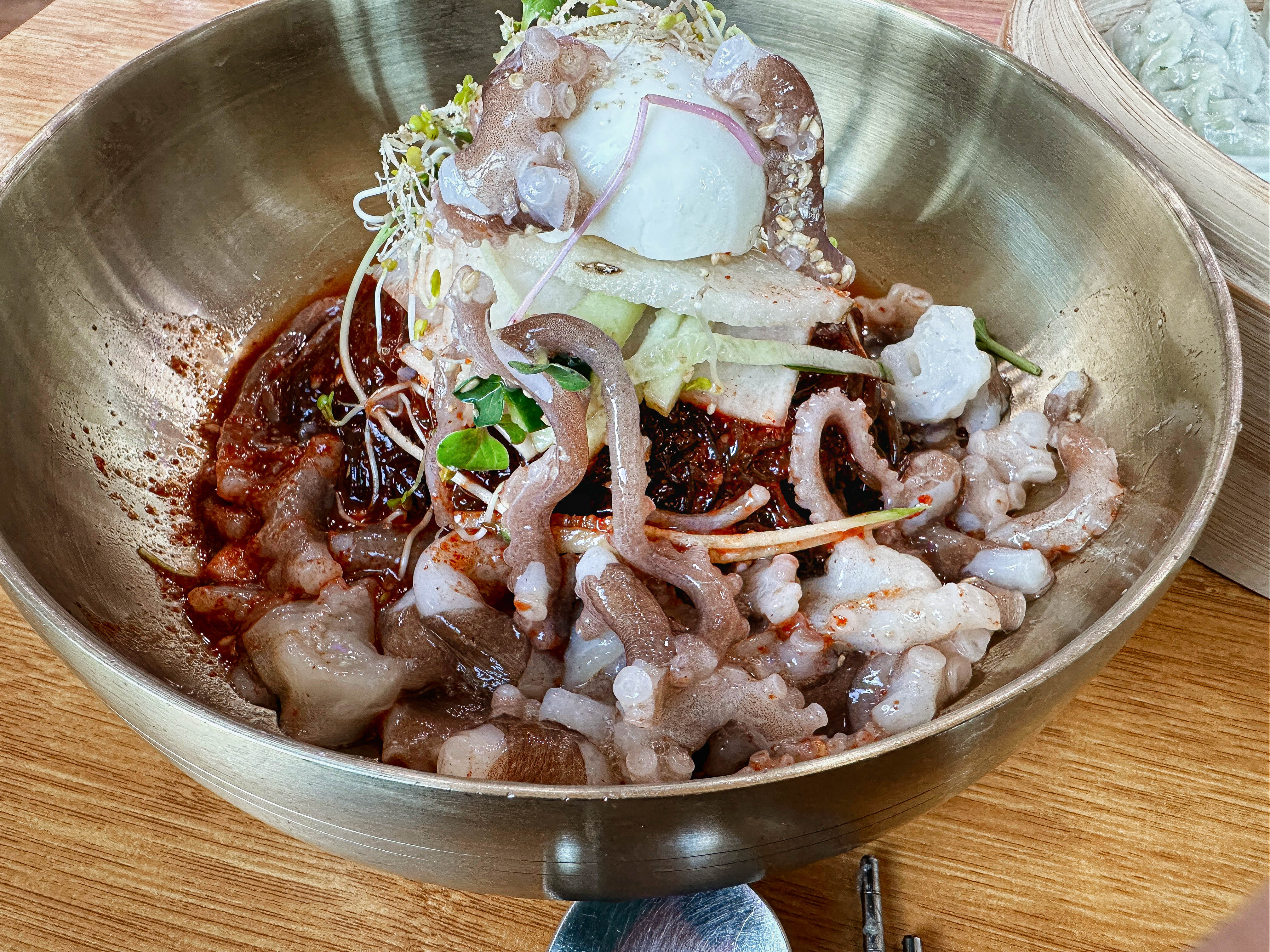 소인애 낙지냉면의 낙지가 들어간 만두는 위와 같이 나왔습니다. 만두소는 꽉 차서 좋았고, 혼자서 먹기엔 양도 제법 많았습니다. 원래는 김치만두를 더 좋아하는데, 김치만두로 주문했어도 좋았을 것 같다는 생각이 들더라고요.