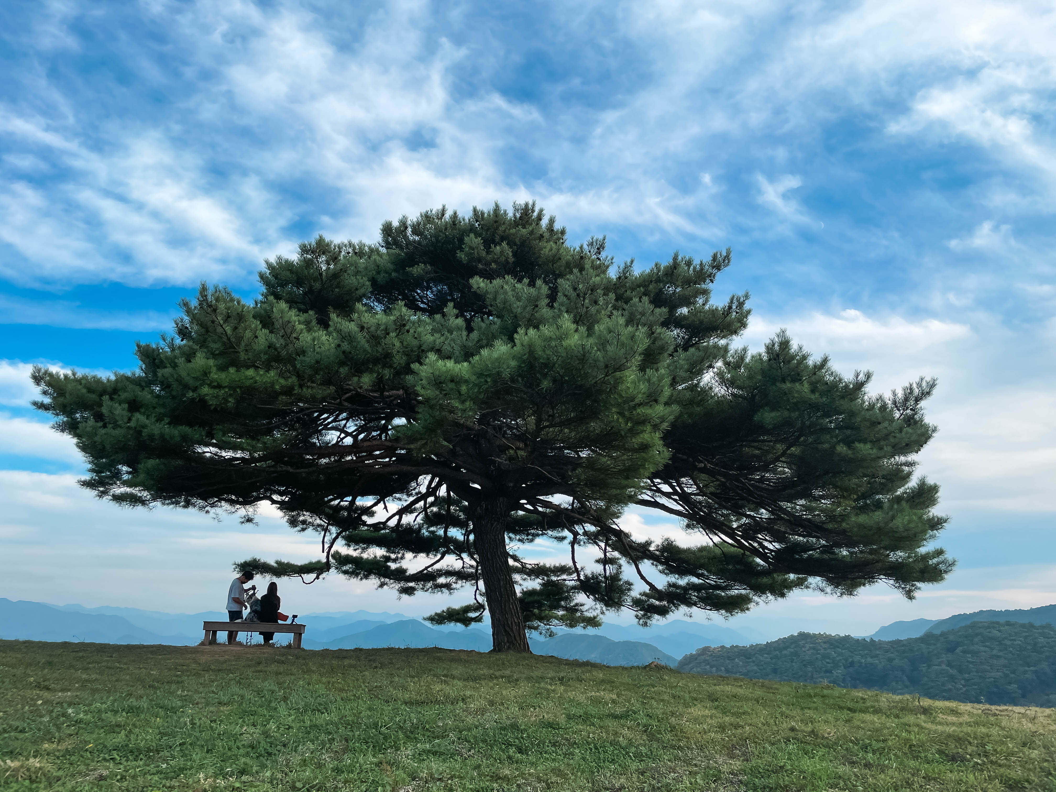 육십마지기에 오르면 위와 같이 나무로 된 데크와 산너미목장의 양달 소나무를 만날 수 있었습니다. 일단 탁 트인 경치가 너무 좋았고, 조용한 분위기여서 좋은 경치 바라보면서 잠시 쉬었다 가기 좋은 장소였습니다.