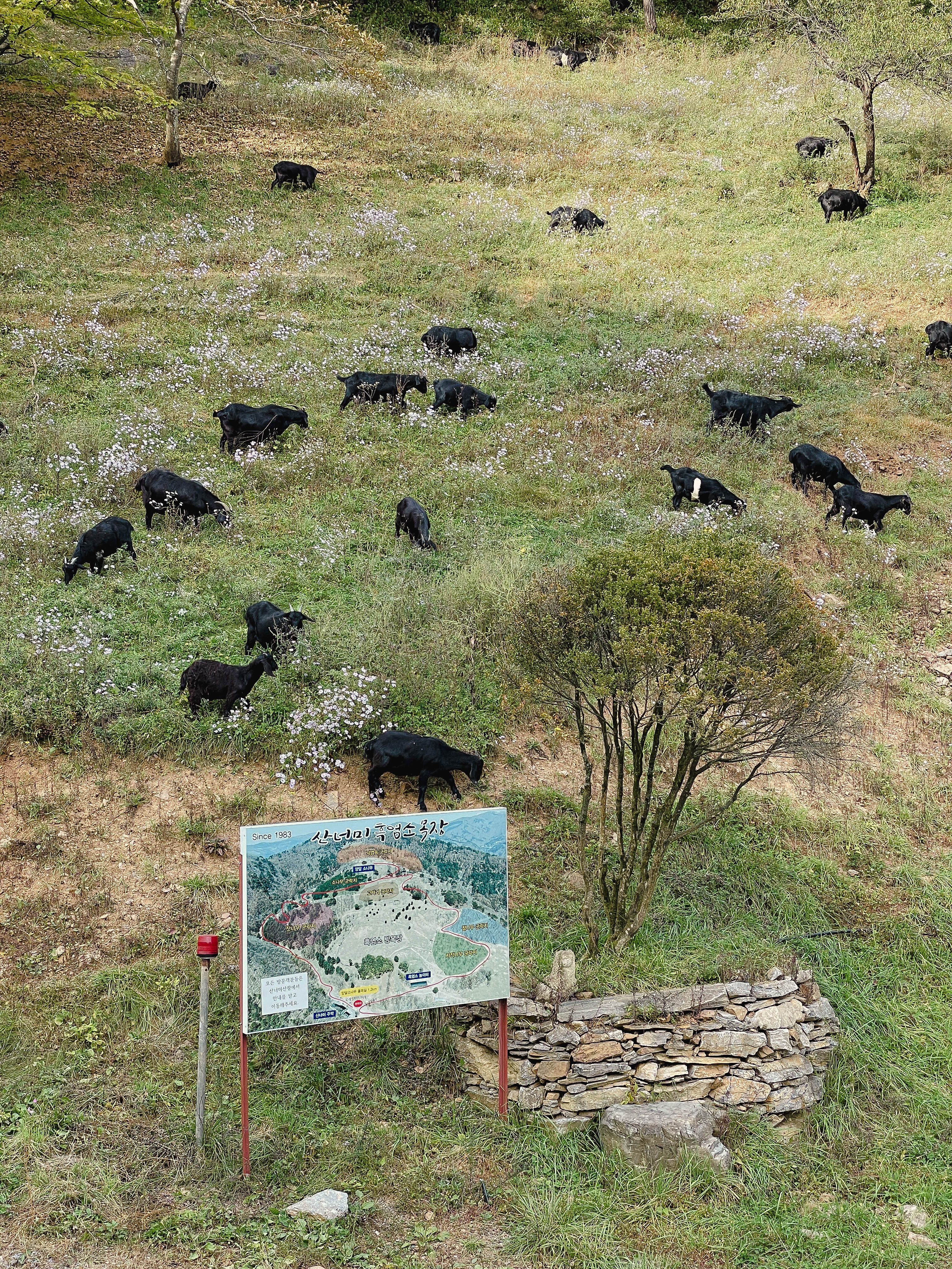 산너미목장은 강원 평창군 미탄면 회동리 803 에 위치해 있습니다. 이곳은 캠핑장과 흑염소 목장을 운영하는 곳이었습니다. 육십마지기는 이 산너미목장을 지나 올라가야 하는데, 확실히 산속 깊은 곳에 있어서 그런지 분위기가 정말 좋았습니다.