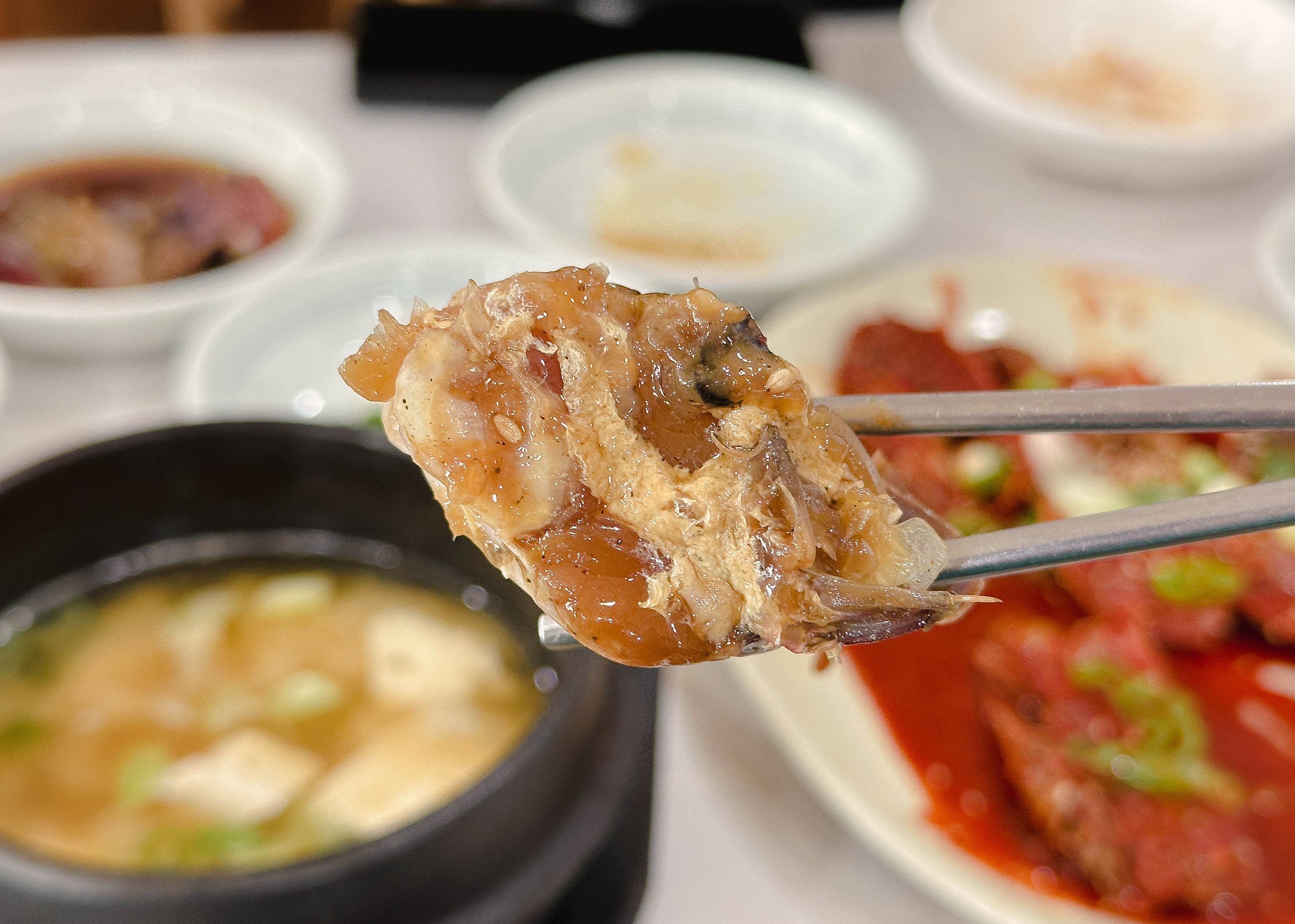게장은 위와같이 나왔는데, 특이한 게 보통 양념게장은 시원한 맛이 있는데, 그런 맛은 아니었고, 짭짤하면서도 감칠맛 있는 맛이었습니다. 새우장은 새우살이 탱글탱글 씹히는 게 참 맛있더라고요.