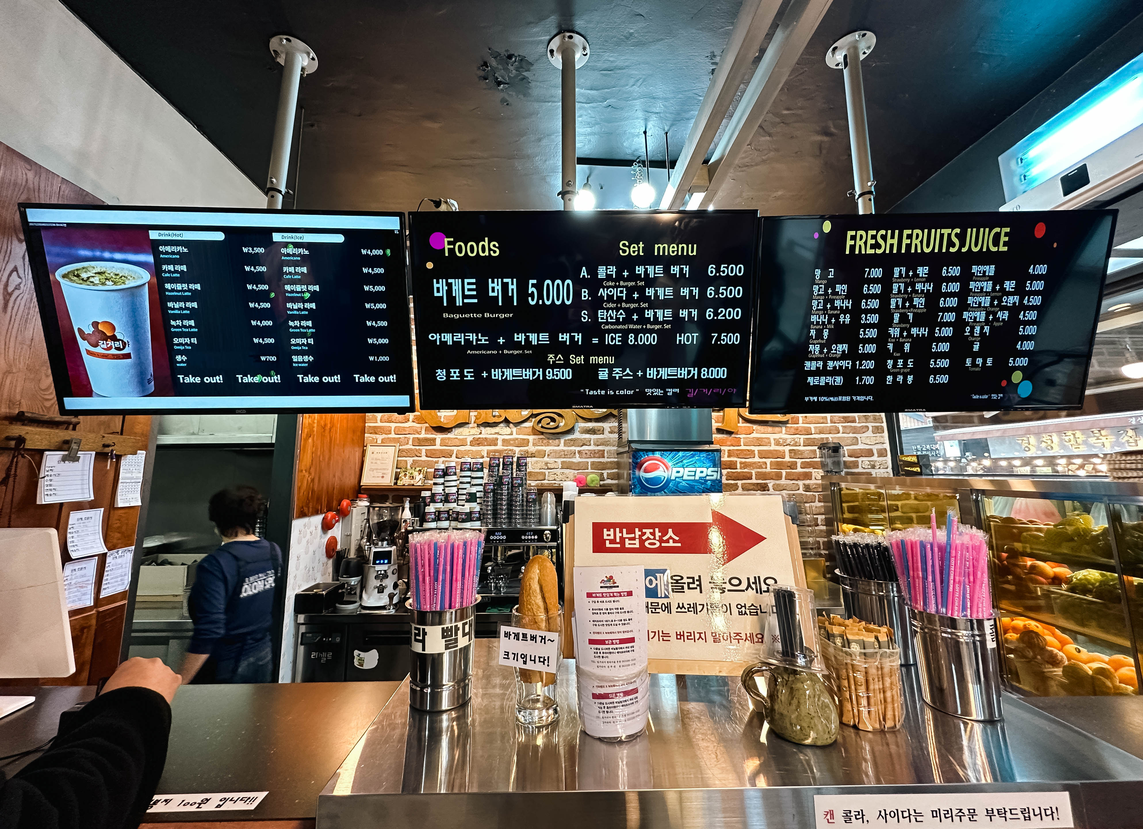 길거리야 바게트버거는 미리 만들어 두는지, 주문과 동시에 나오더라고요.