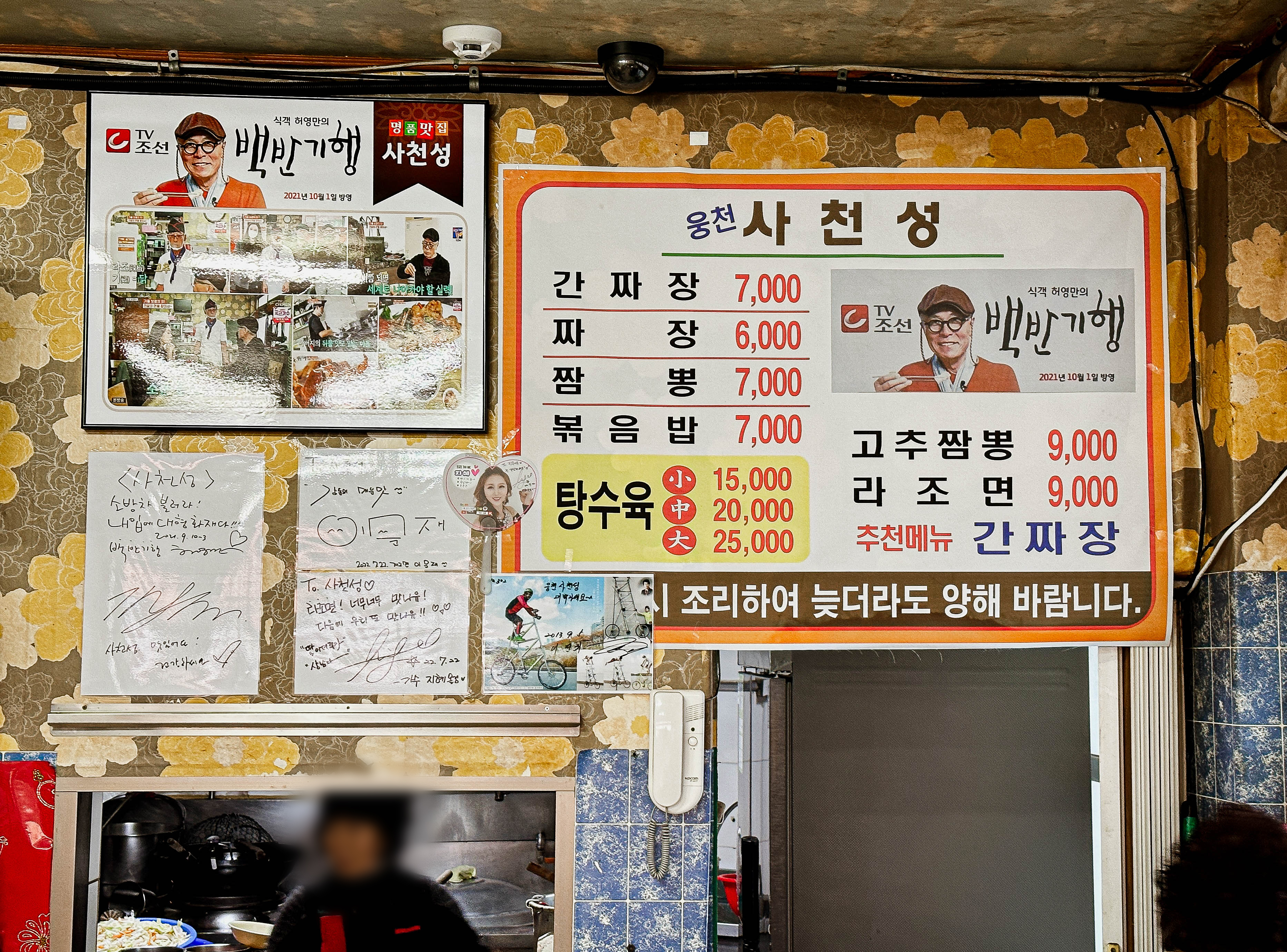보령 웅천사천성 가게에 들어가면 TV조선⎡식객 허영만의 백반기행⎦에 출연했던 메뉴소개가 되어있었고, 이 가게의 대표메뉴들을 확인할 수 있었습니다. 웅천사천성의 대표메뉴는 간짜장, 짜장, 짬뽕, 볶음밥, 고추짬뽕, 탕수육 그리고 제가 주문한 라조면이 있었습니다. 그밖에 일반 중식당처럼 다양한 종류의 요리들이 메뉴에 있었습니다.