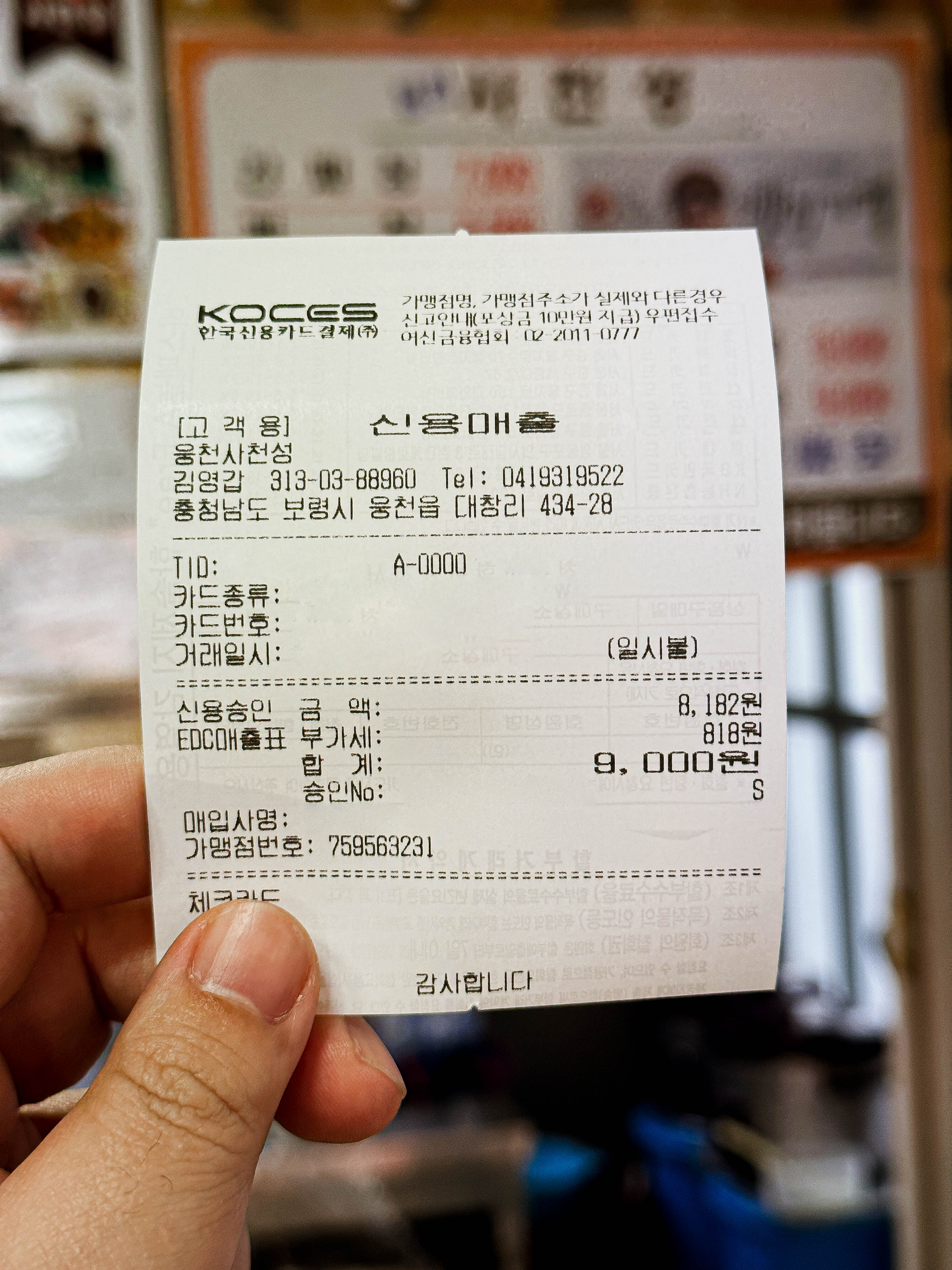 웅천사천성은 충남 보령시 웅천읍 대창리 434-28 에 위치해 있습니다. 웅천사천성의 영업시간은 10:00~17:00 까지이며, 휴무일은 3・13・23일인데, 만약 해당 날짜가 주말에 껴 있다면 다음날 월요일 휴무라고 합니다. 가게는 시장 안쪽에 있었는데, 대부분 손님들이 차량을 시장 안쪽까지 가져와 주차하시는 것 같더라고요.