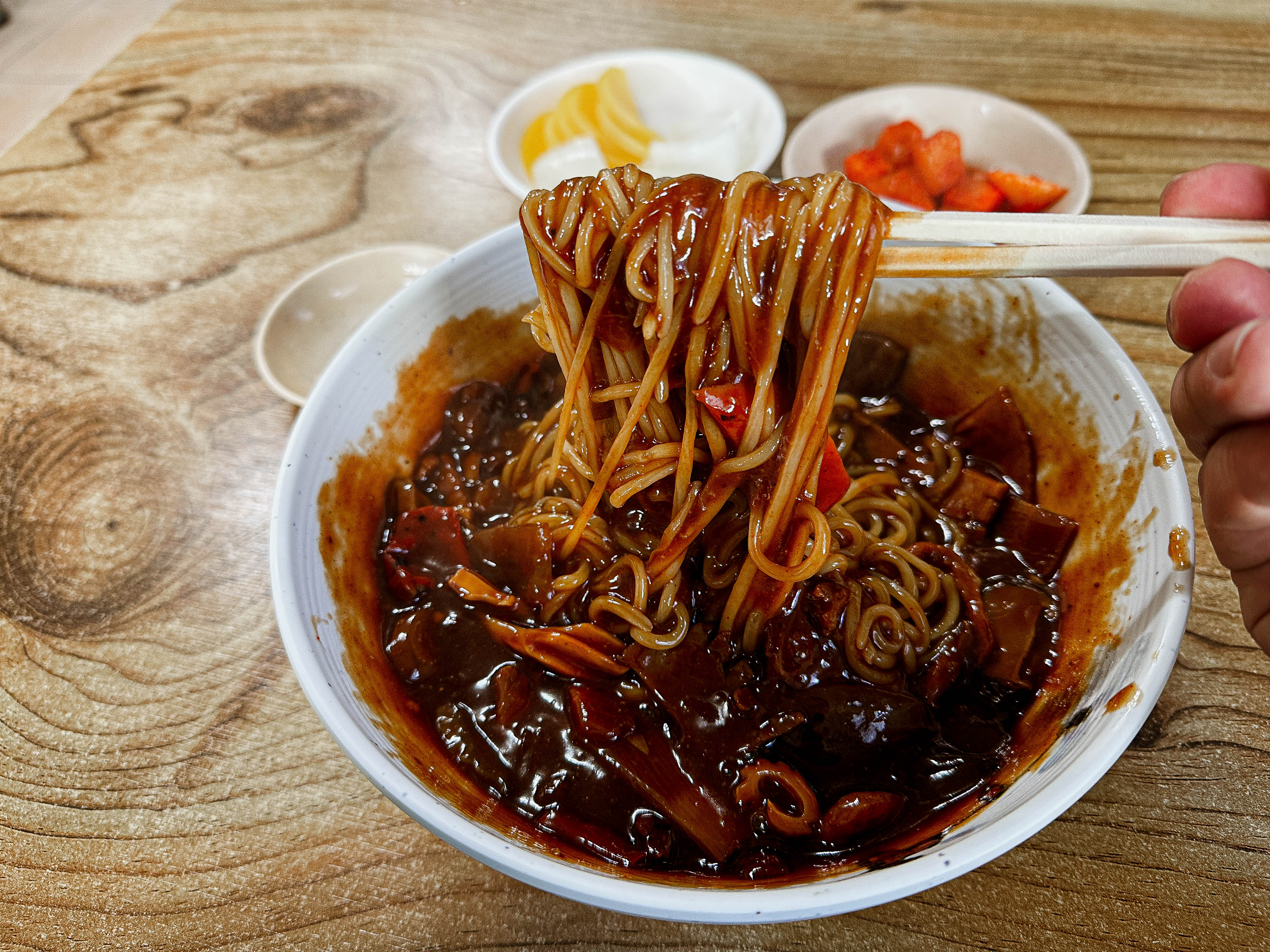 라조면은 겉보기엔 짜장면과 생김새가 비슷하게 생겼는데, 약간 국물이 더 많다는 것이 특징이었습니다. 실제로 맛을 보면 우리가 흔히 아는 짜장면과는 전혀 다른 맛이었는데요. 해산물과 채소가 들어가 특유의 감칠맛이 있는 메뉴였습니다. 맵다고 해서 과연 얼마나 매울까 궁금했는데, 생각보다 하나도 맵지 않고 적당히 매콤한 정도였습니다.