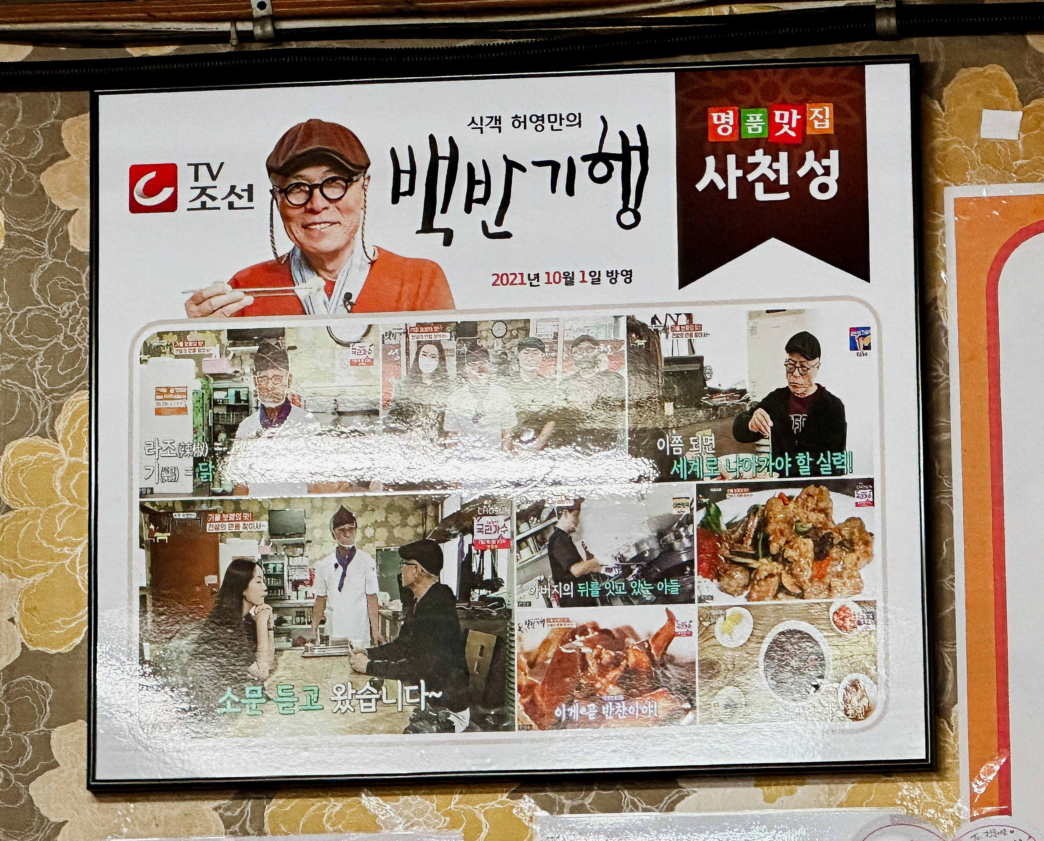 보령 웅천사천성 가게에 들어가면 TV조선⎡식객 허영만의 백반기행⎦에 출연했던 메뉴소개가 되어있었고, 이 가게의 대표메뉴들을 확인할 수 있었습니다. 웅천사천성의 대표메뉴는 간짜장, 짜장, 짬뽕, 볶음밥, 고추짬뽕, 탕수육 그리고 제가 주문한 라조면이 있었습니다. 그밖에 일반 중식당처럼 다양한 종류의 요리들이 메뉴에 있었습니다.