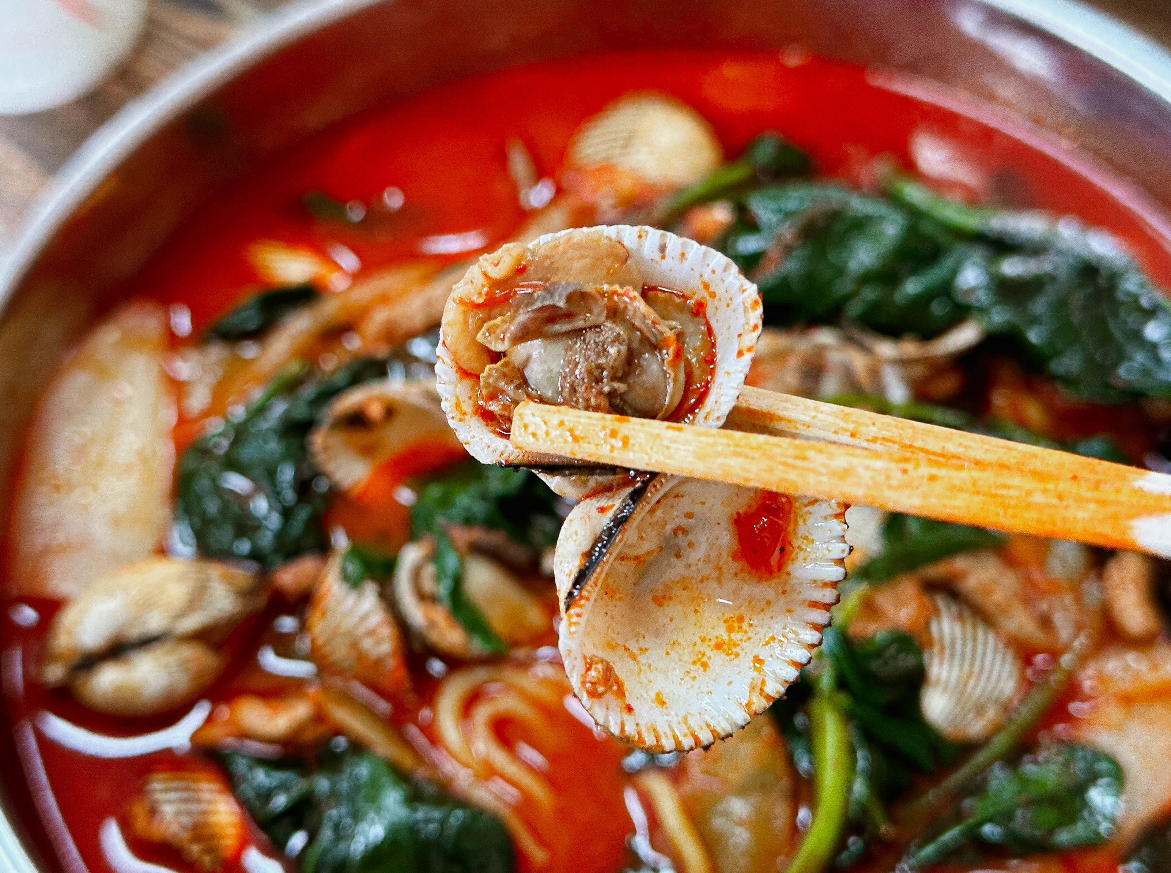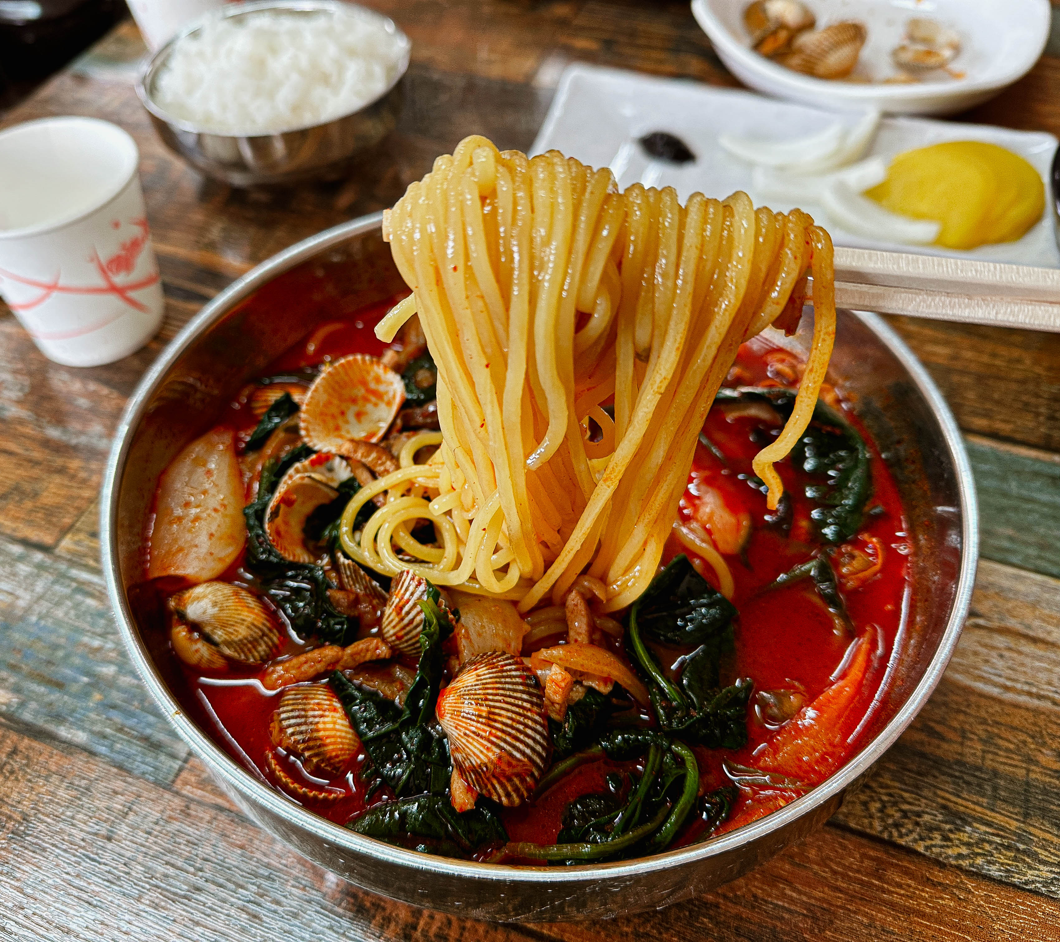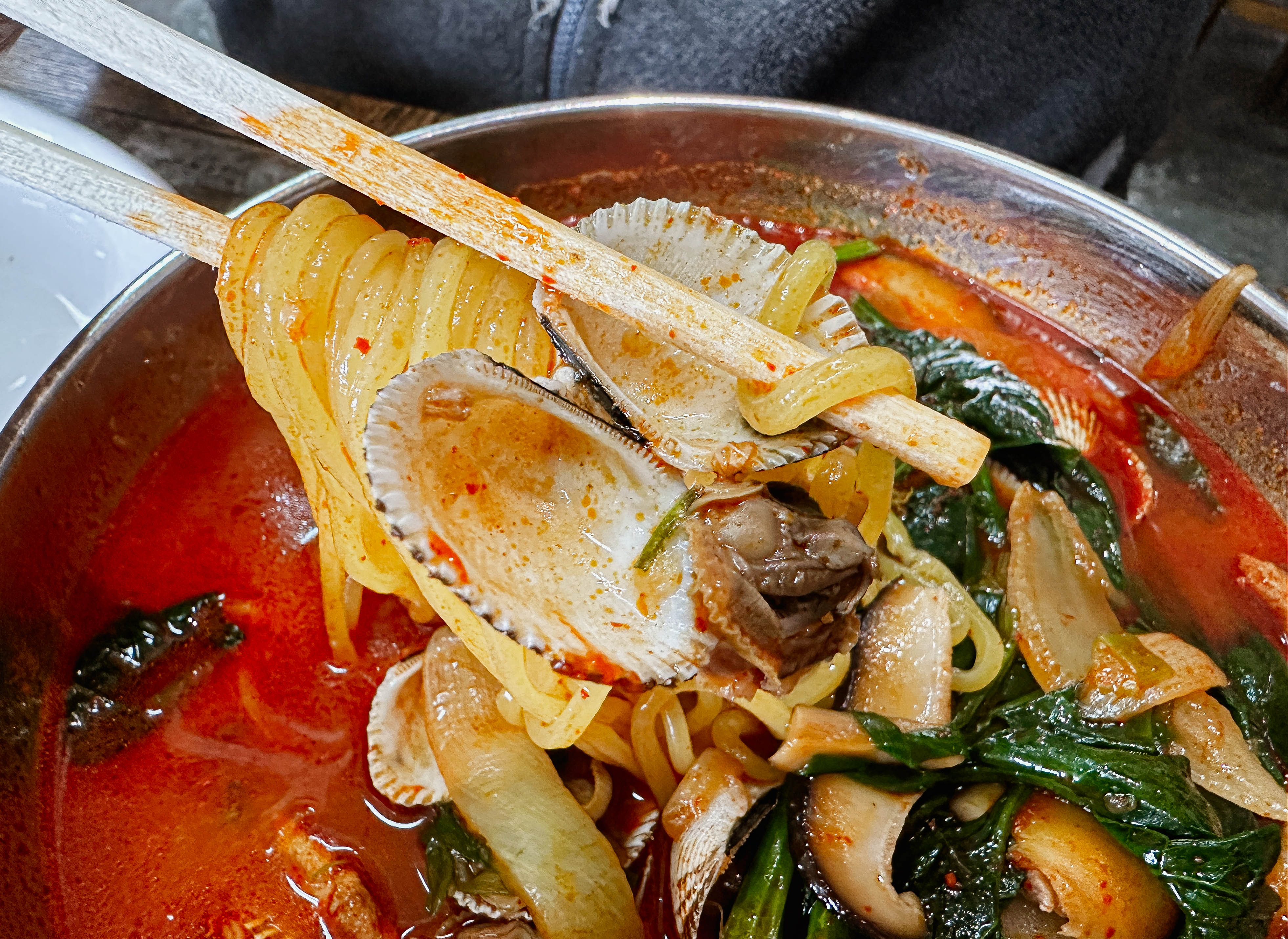 꼬막짬뽕의 모습은 일반적인 짬뽕과는 확실히 다른 모습을 보여줍니다. 보통은 중국집에서 짬뽕을 주문하면 청경채 같은 채소가 들어가는데, 이곳의 꼬막짬뽕은 독특하게 시금치가 들어가더라고요. 홍합과 다르게 꼬막 특유의 쫄깃한 식감과 향이 괜찮았고, 원래 먹어왔던 메뉴처럼 큰 이질감 없는 맛이었습니다.