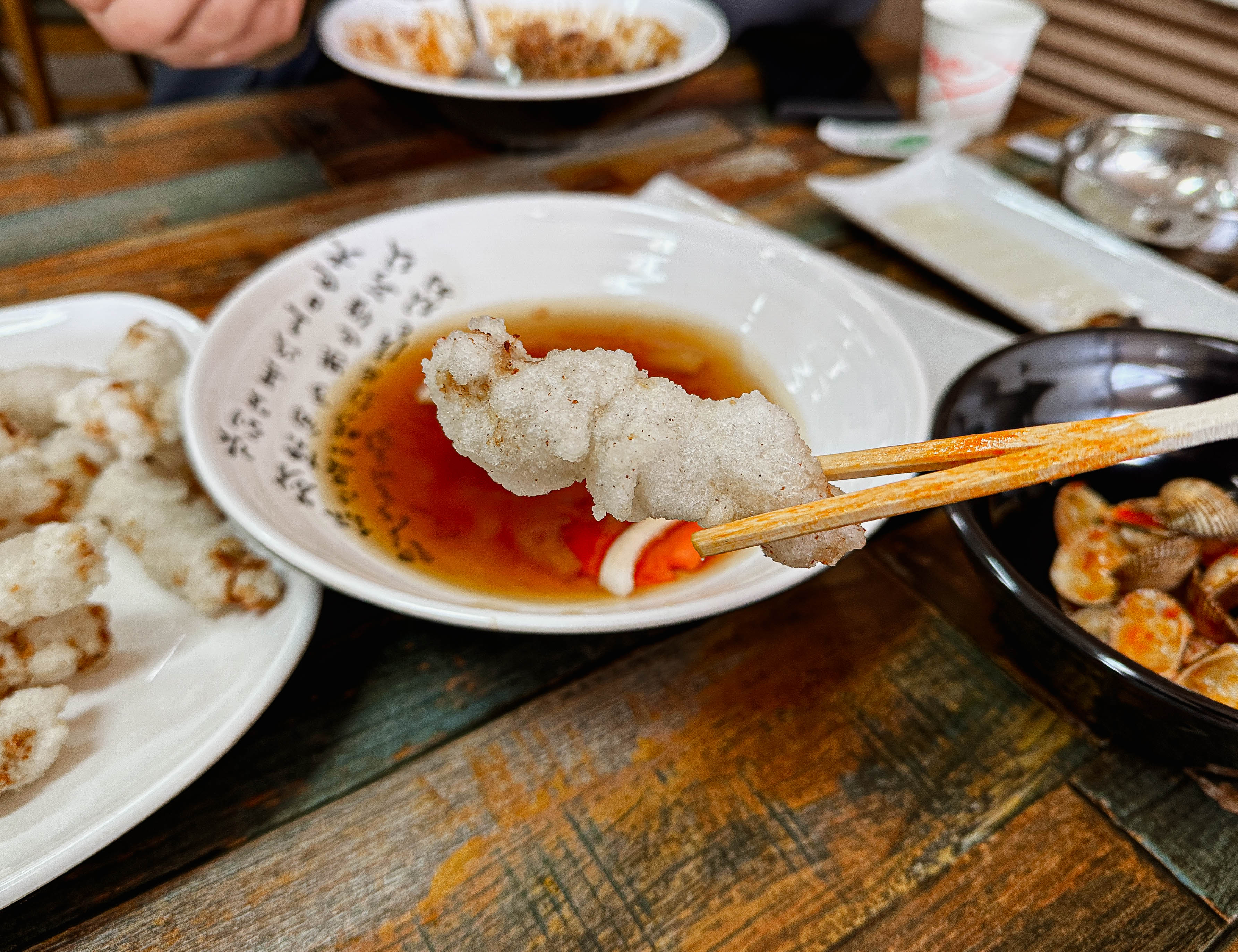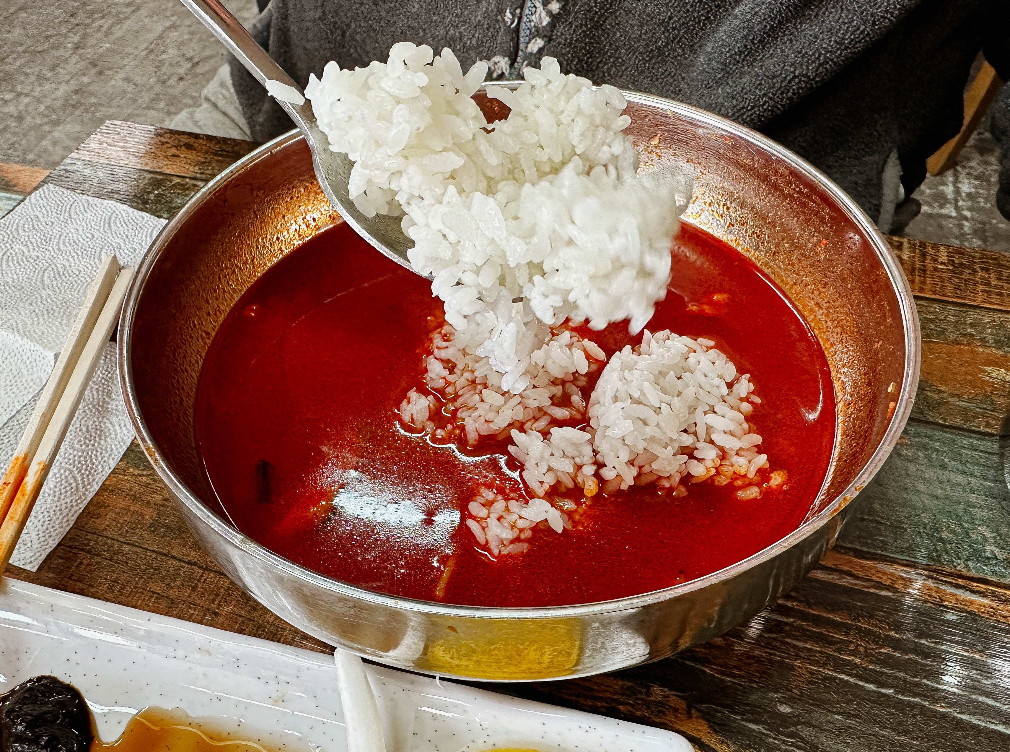 꼬막짬뽕의 껍질을 다 발라내고 면을 어느 정도 먹었다면, 국물에 밥을 말아서 먹는 것도 추천드리고 싶습니다. 국물이 제가 즐겨 먹는 짬뽕지존의 국물과 비슷한 느낌인데, 밥과 정말 잘 어울렸거든요. 그리고 탕수육은 바삭했습니다.