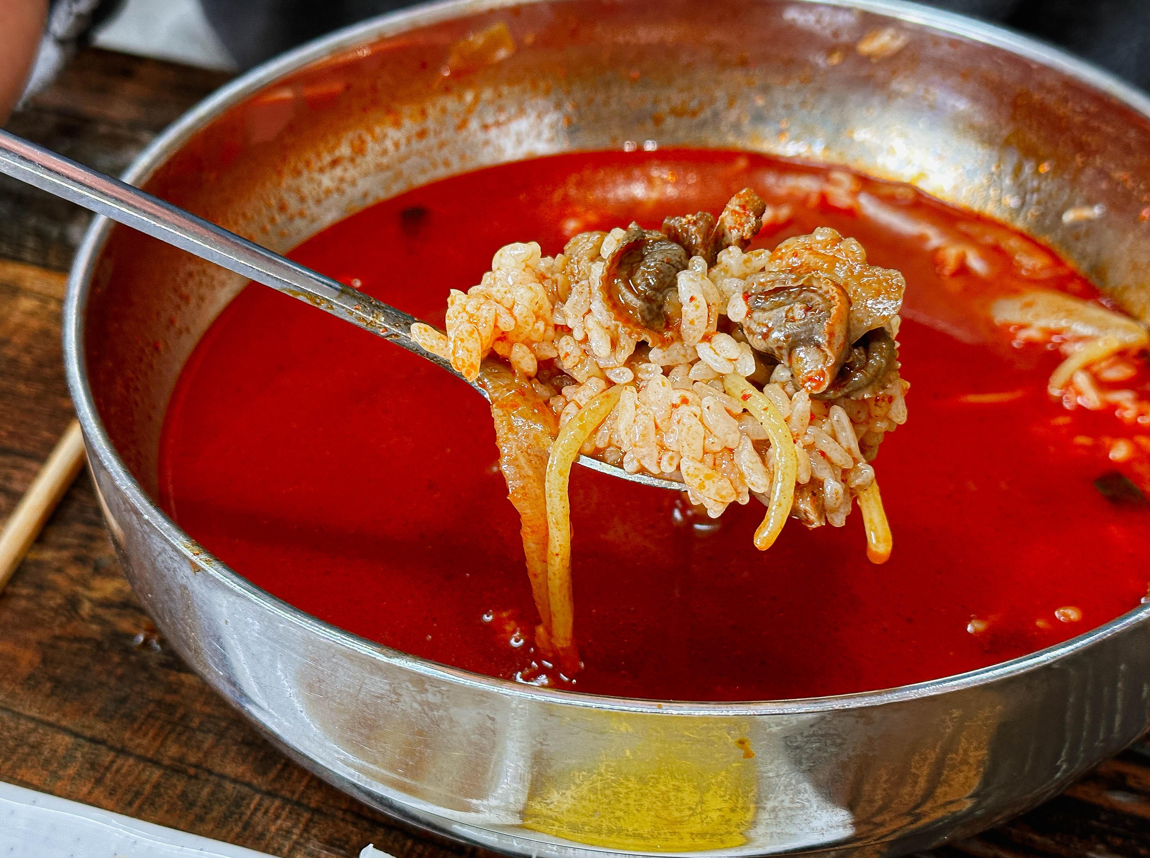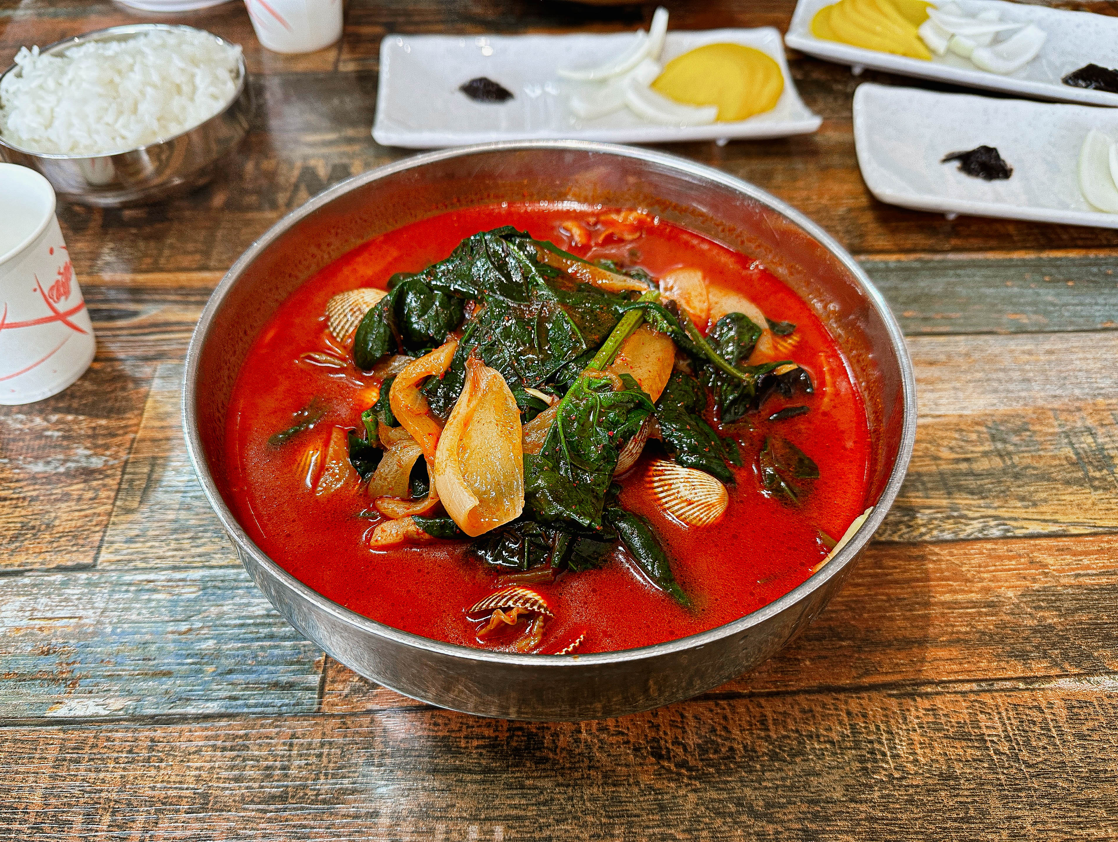 꼬막짬뽕의 모습은 일반적인 짬뽕과는 확실히 다른 모습을 보여줍니다. 보통은 중국집에서 짬뽕을 주문하면 청경채 같은 채소가 들어가는데, 이곳의 꼬막짬뽕은 독특하게 시금치가 들어가더라고요. 홍합과 다르게 꼬막 특유의 쫄깃한 식감과 향이 괜찮았고, 원래 먹어왔던 메뉴처럼 큰 이질감 없는 맛이었습니다.