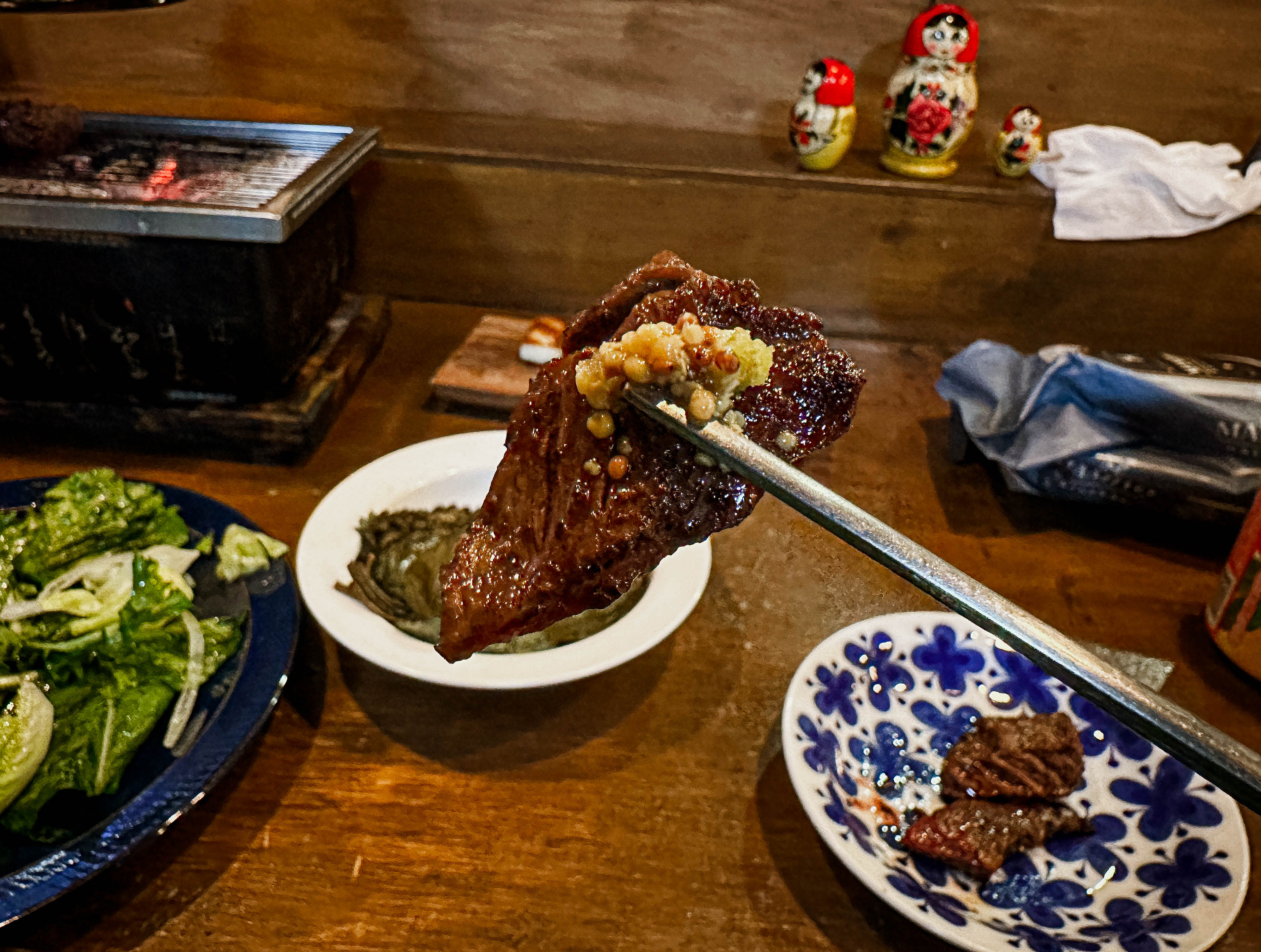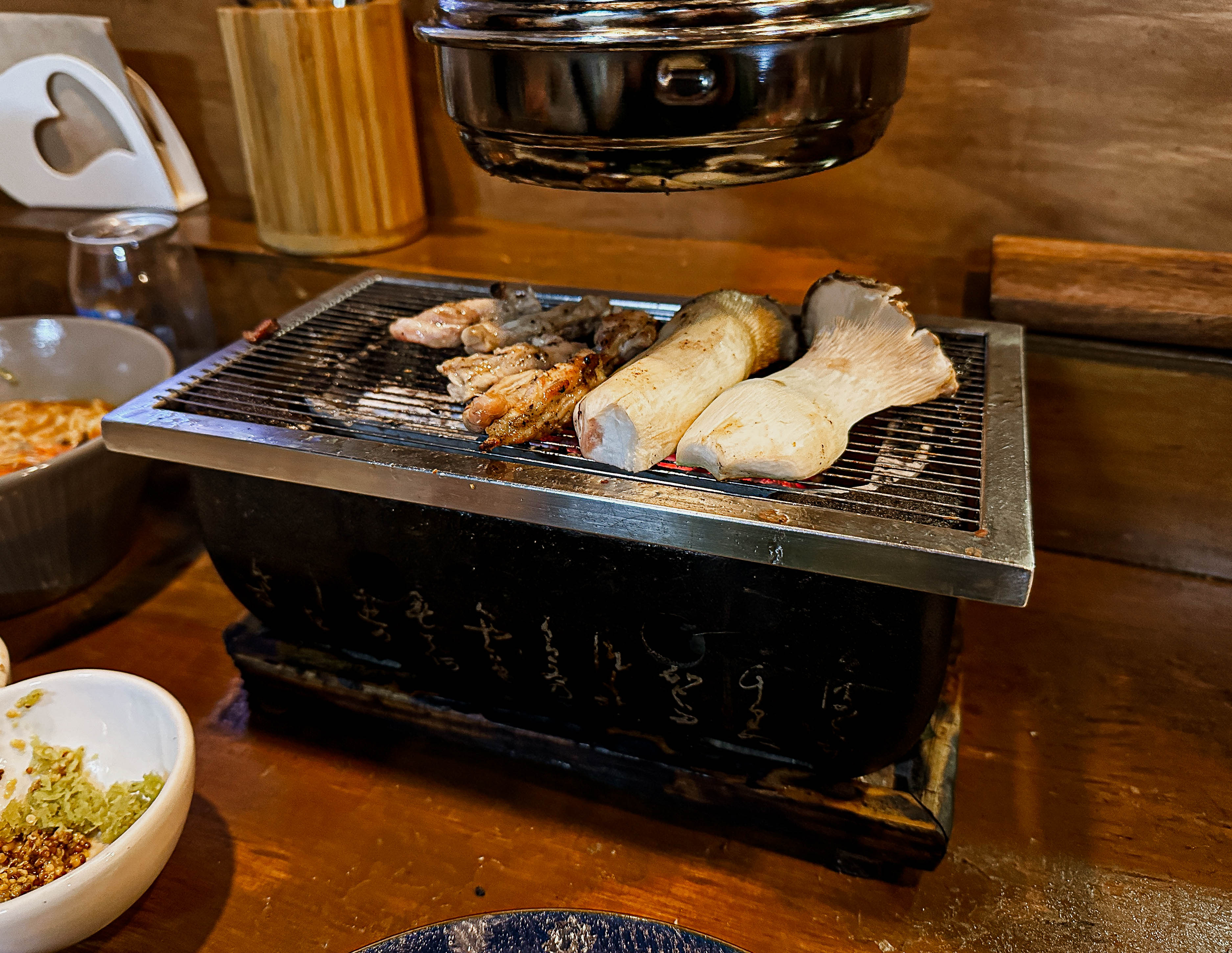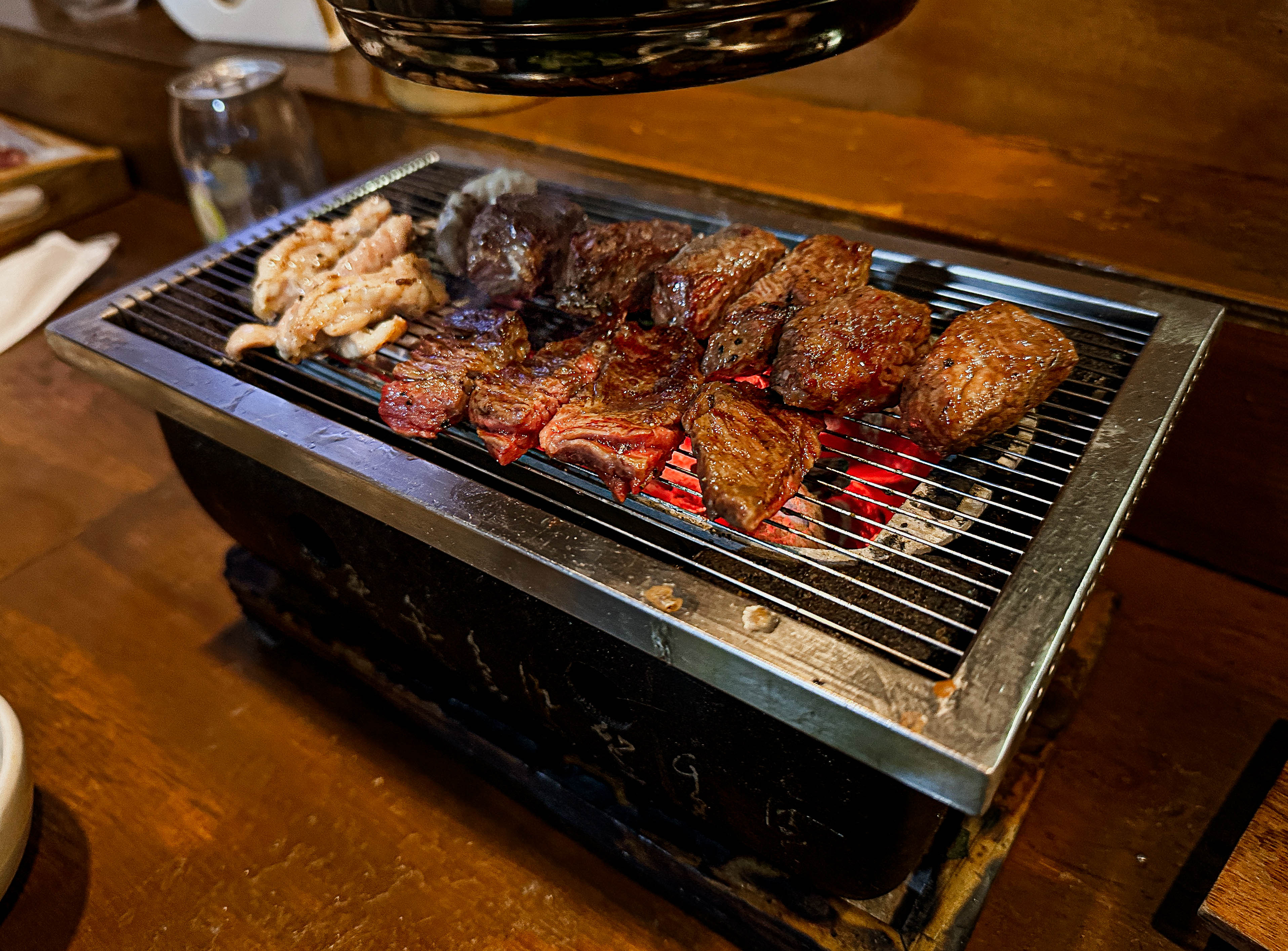 해방촌 혼고는 지인의 소개로 방문한 가게입니다. 혼고는 조그만 화로에 고기를 구워 먹는 '1인 화로구이' 가게라고 하더라고요. 예전에 일본에 갔을 때 혼자서 구워 먹었던 야키니쿠가 생각나서 더 만족스럽게 이용한 가게입니다.