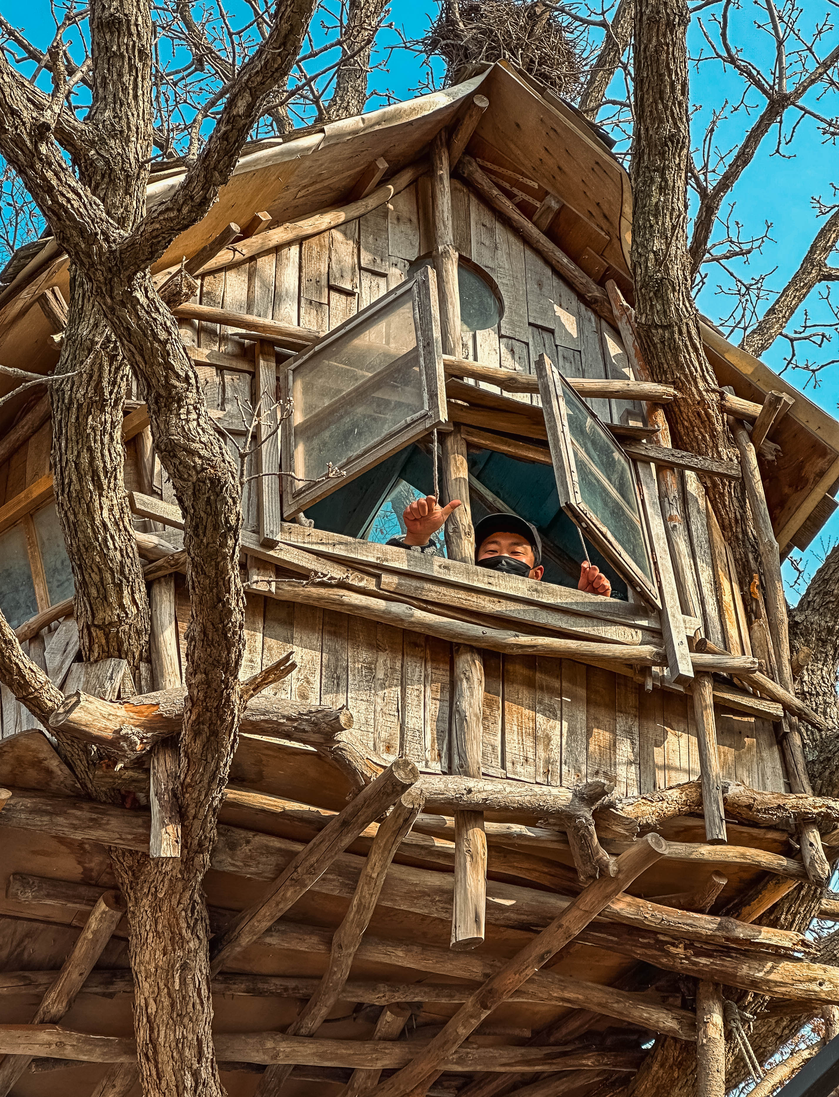 나무 위의 집은 실제로 새의 둥지 같은 느낌으로 아늑했고, 나무 위에 지어진 구조물이다 보니 삐걱대는 소리가 조금씩 났지만, 저의 몸무게를 버티는 것을 보니 허술해 보여도 튼튼하더라고요.