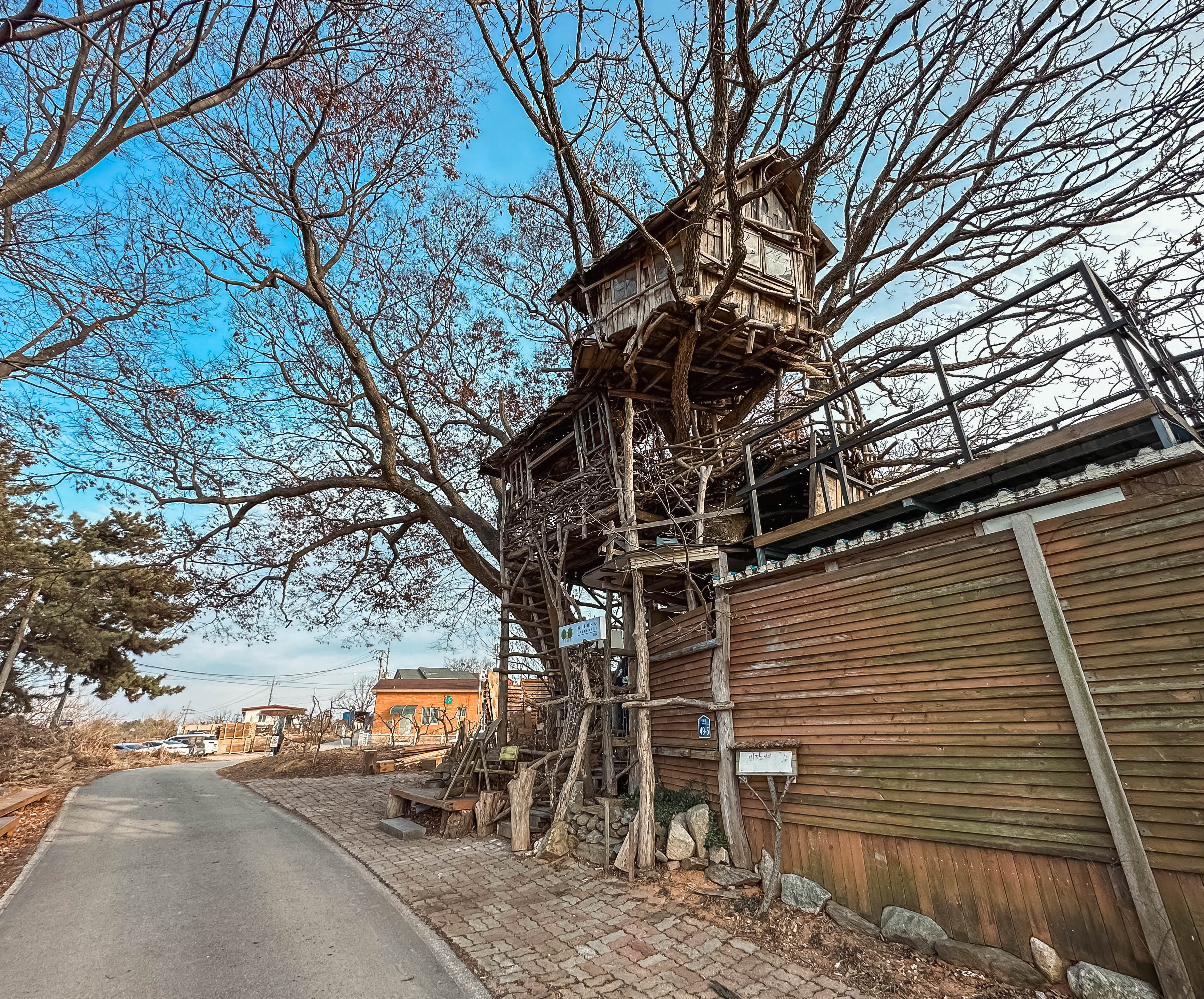 미즈노씨네 트리하우스는 전북 김제시 만경읍 대동리 656 에 위치한 카페입니다. 말 그대로 나무집을 가지고 있는 카페인데, 얼기설기 얽혀있는 나뭇가지들이 사실 튼튼하지 않을 것 같아서 불안했는데, 생각보다 잘 버텨서 놀랐습니다.