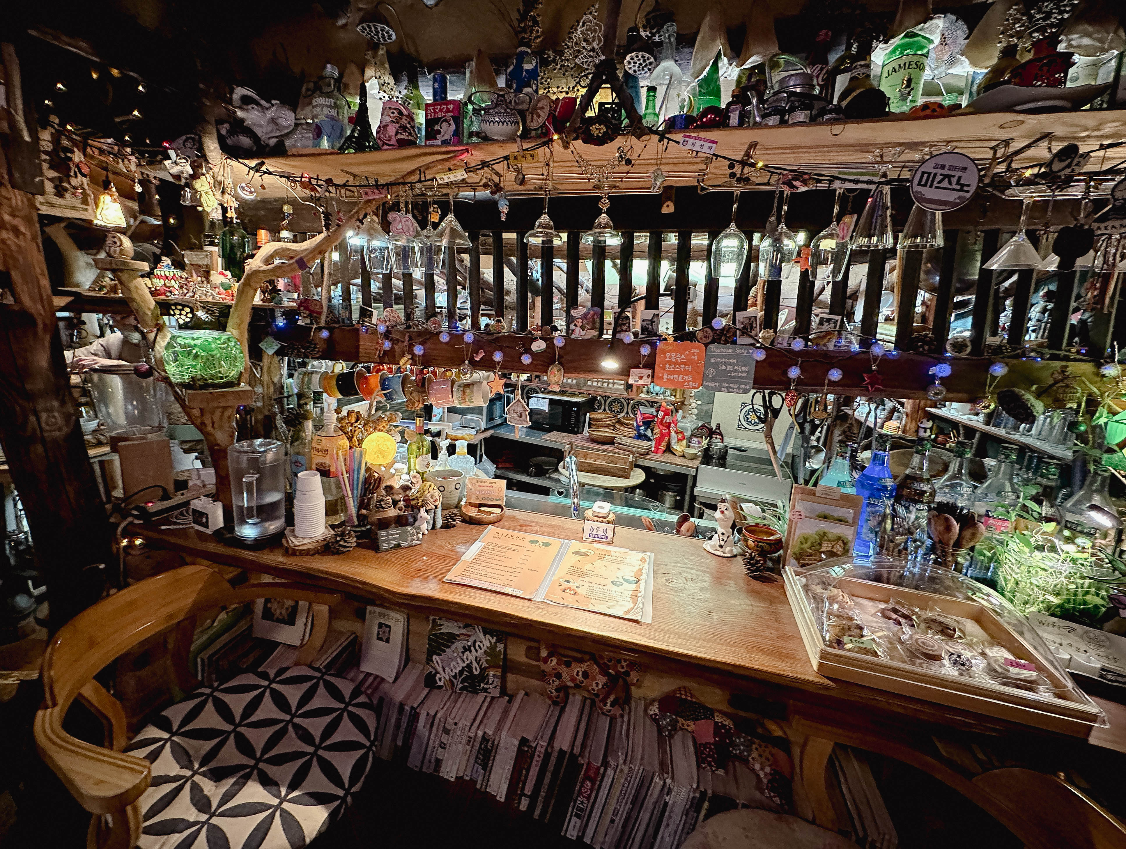 저는 가게 곳곳을 다니며 사진을 찍어보았습니다. 가게에는 구석구석 다락방 같은 공간도 있어서 왠지 어릴 적 동심으로 돌아간 것 같은 느낌이 들었습니다. 직접 나무를 잘라서 꾸민 공간들이 아기자기하고 좋았습니다.