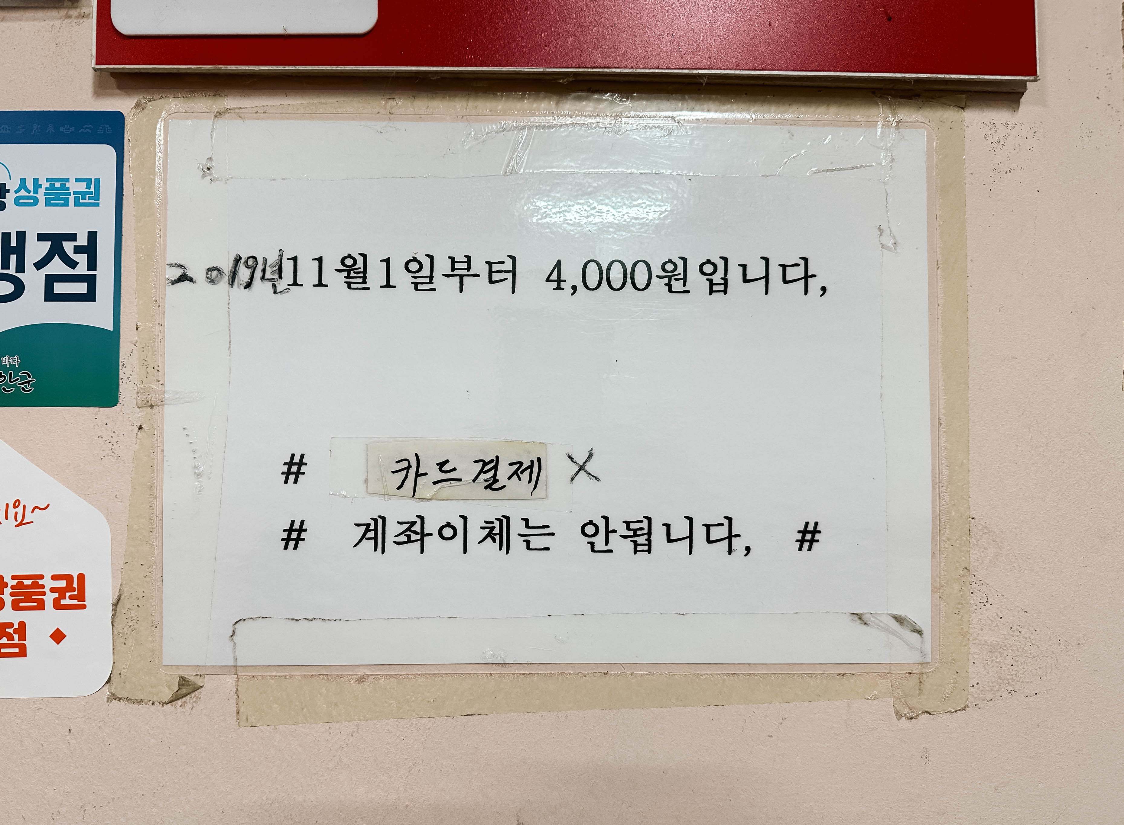 ※ 카드결제와 계좌이체 둘 다 안된다고 하니 이용에 참고하시기 바랍니다.