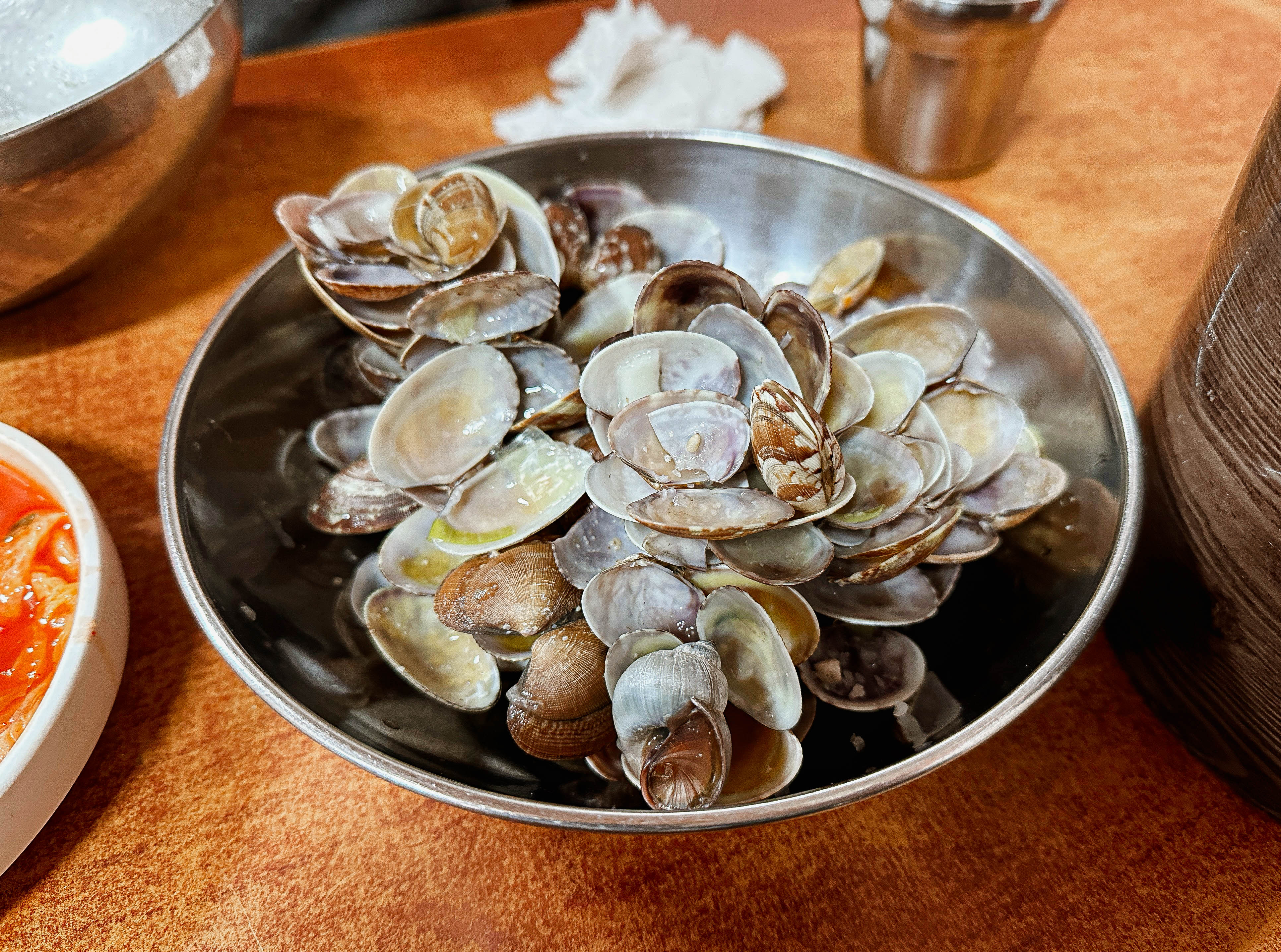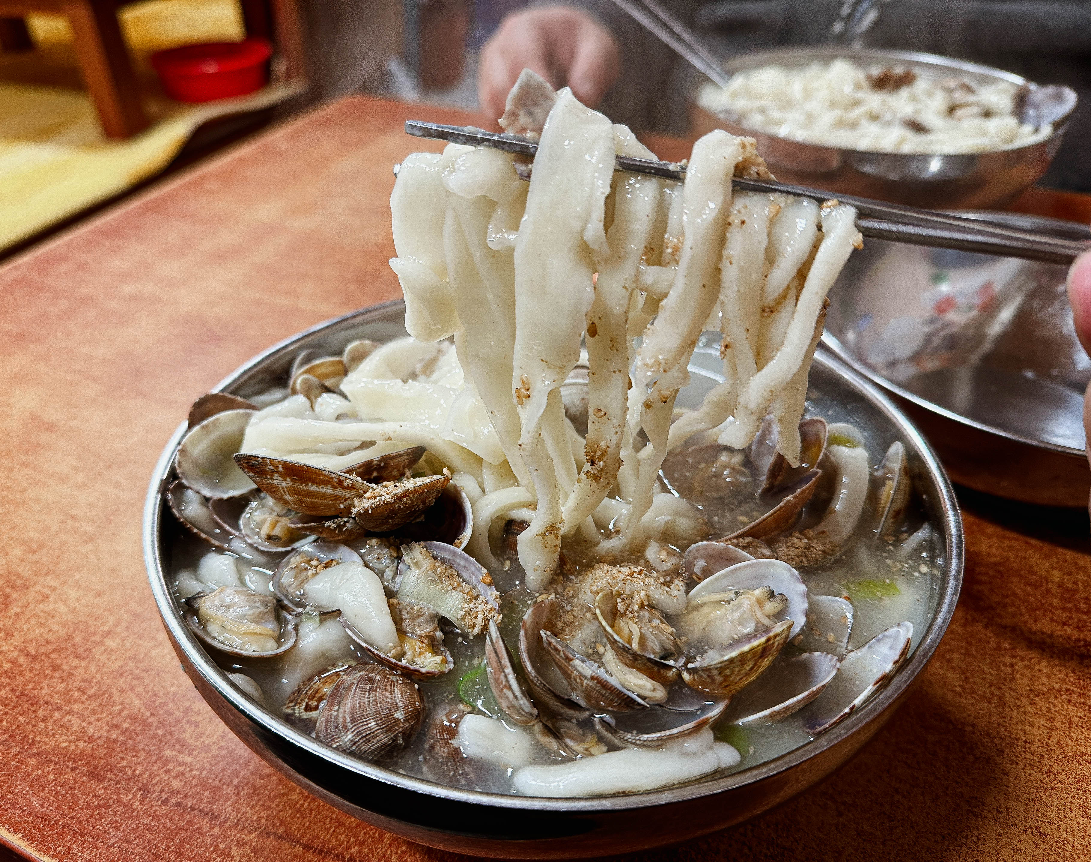 칼국수의 맛은 전체적으로 심심한 느낌이었는데, 어르신들은 좋아하시는 것 같았고. 같이 있었던 젊은 사람들은 밋밋한 맛에 썩 마음에 들지 않은 듯 남기고 가시는 분도 계시더라고요. 솔직히 저도 입맛에 착착 감기는 듯한 감칠맛이 안 느껴져서 좀 아쉬웠고, 바지락은 해감이 덜 되었는지 씹히는 이물감이 많이 남아서 솔직히 기대했던 것에 못 미쳐 실망했습니다.