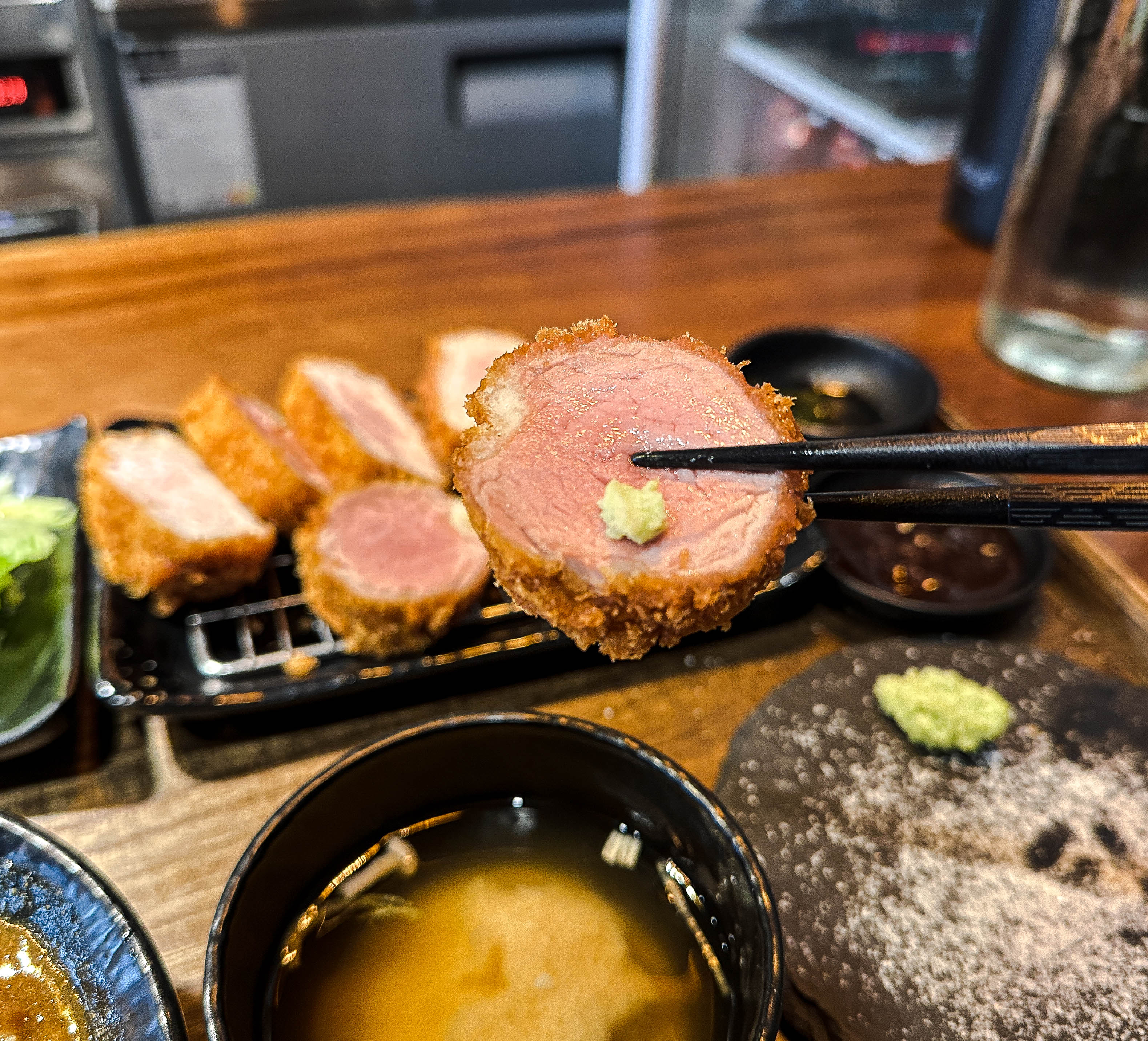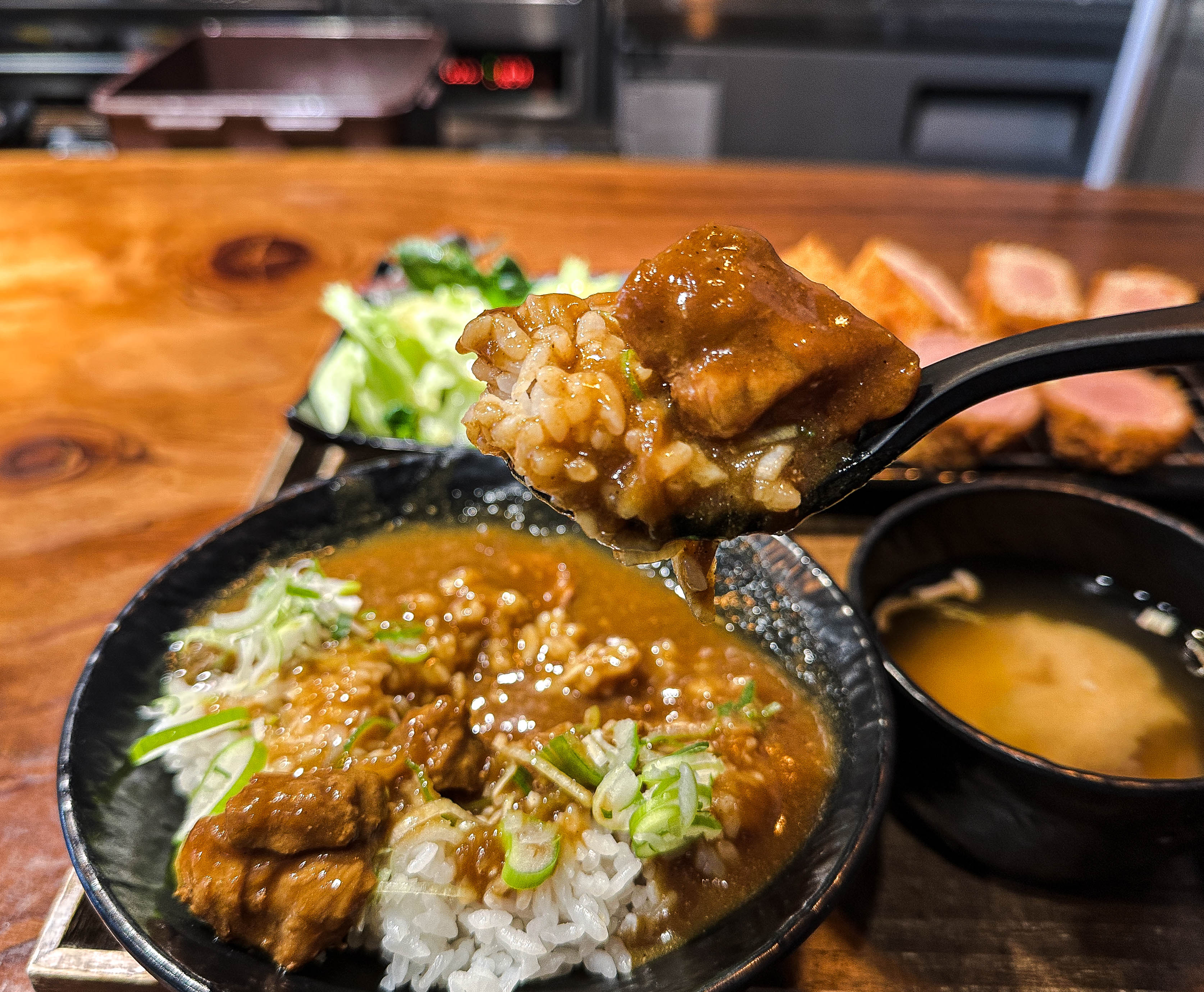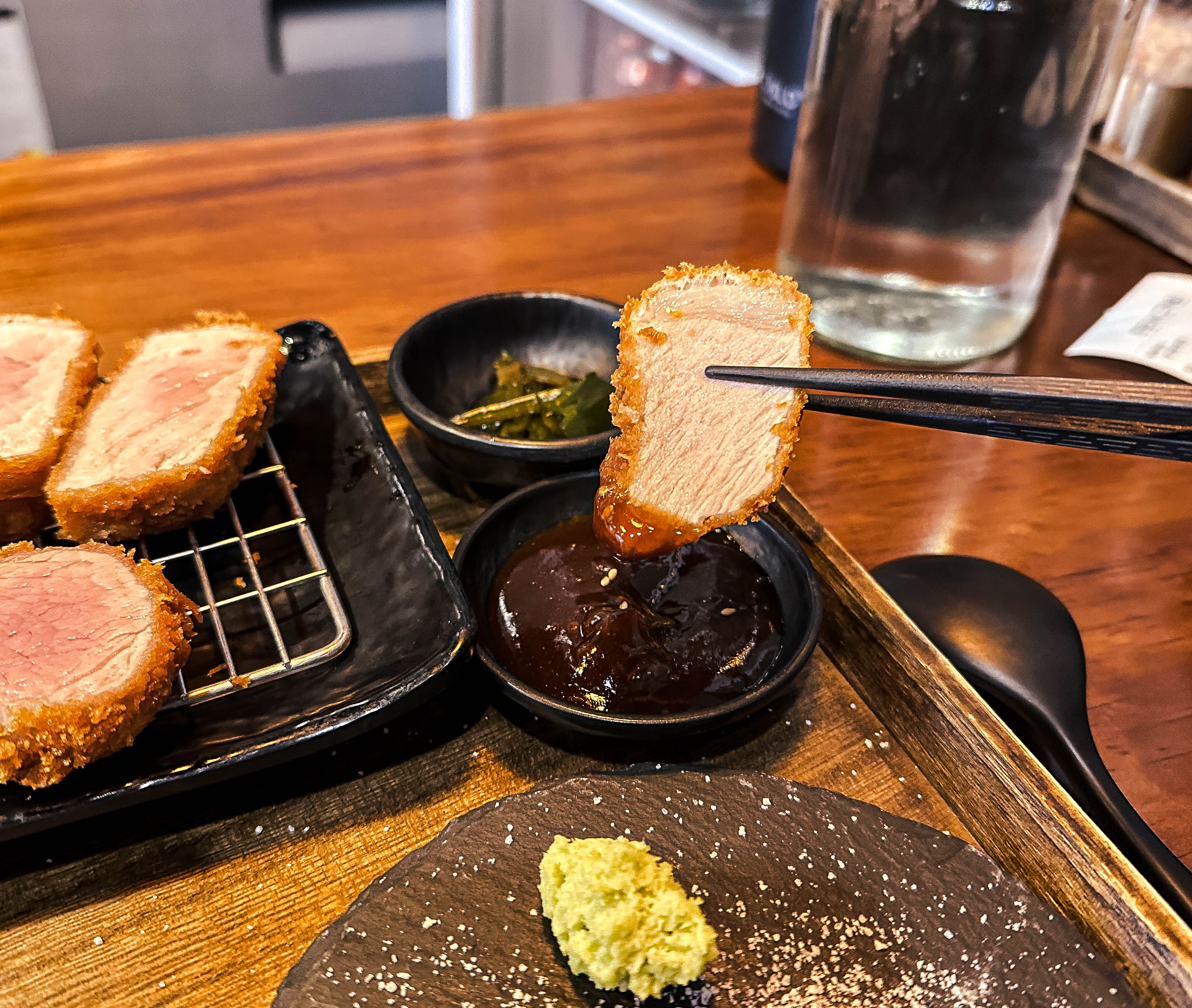 돈까스는 위와 같이 등심카츠와 안심카츠 두 가지가 동시에 나왔습니다. 카츠오모이의 등심카츠는 식감이 약간 질긴 느낌이 있었는데, 잡내는 안 나고 맛있었습니다. 안심카츠는 역시 기대했던 대로 부드러운 식감이 있었습니다. 등심카츠와 마찬가지로 잡내 안나고 겉은 바삭하게 잘 튀겨졌더라고요.