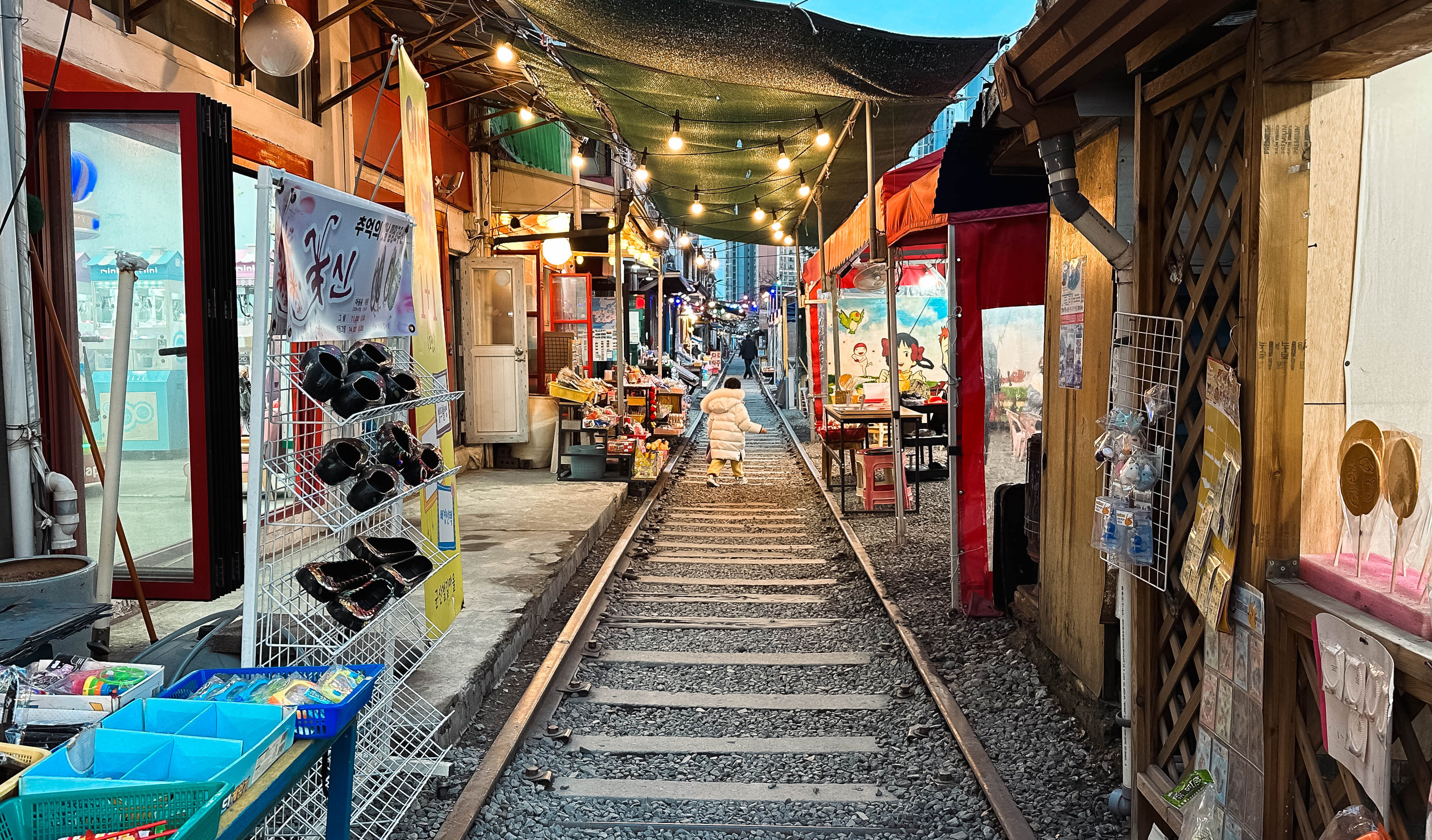 이곳은 애니메이션 '소중한 날의 꿈', 영화 '남자가 사랑할 때' 등의 배경지로 사용된 장소이기도 합니다. 조그만 기찻길 양 옆으로 아기자기한 소품을 파는 곳과 사진 촬영용 교복을 대여해 주는 상점들이 위치해 있었습니다.