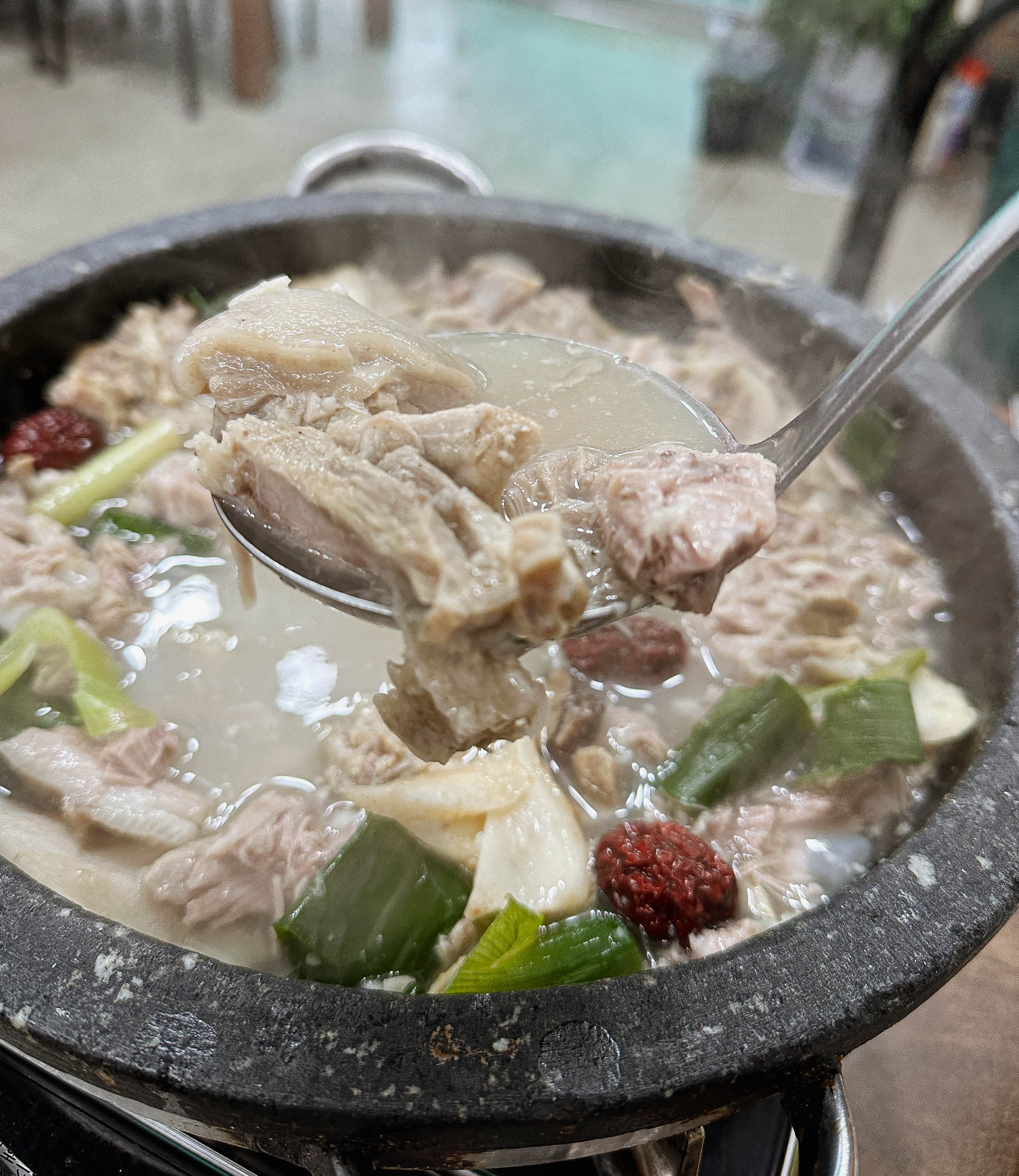 진안 진안관 애저찜은 지인의 추천으로 먹어본 메뉴입니다. 애저의 부드러운 식감과 달큰한 맛이 삼계탕과 비슷하였는데, 사실 저는 너무 흐물거리는 식감이 좀 이질감이 있었고, 가격도 좀 비싼듯한 느낌이 들었습니다. 진안 향토음식인 애저찜에 대해 궁금하신 분은 한 번 이용해 보시고, 저는 한 번 맛본 것으로 만족합니다.