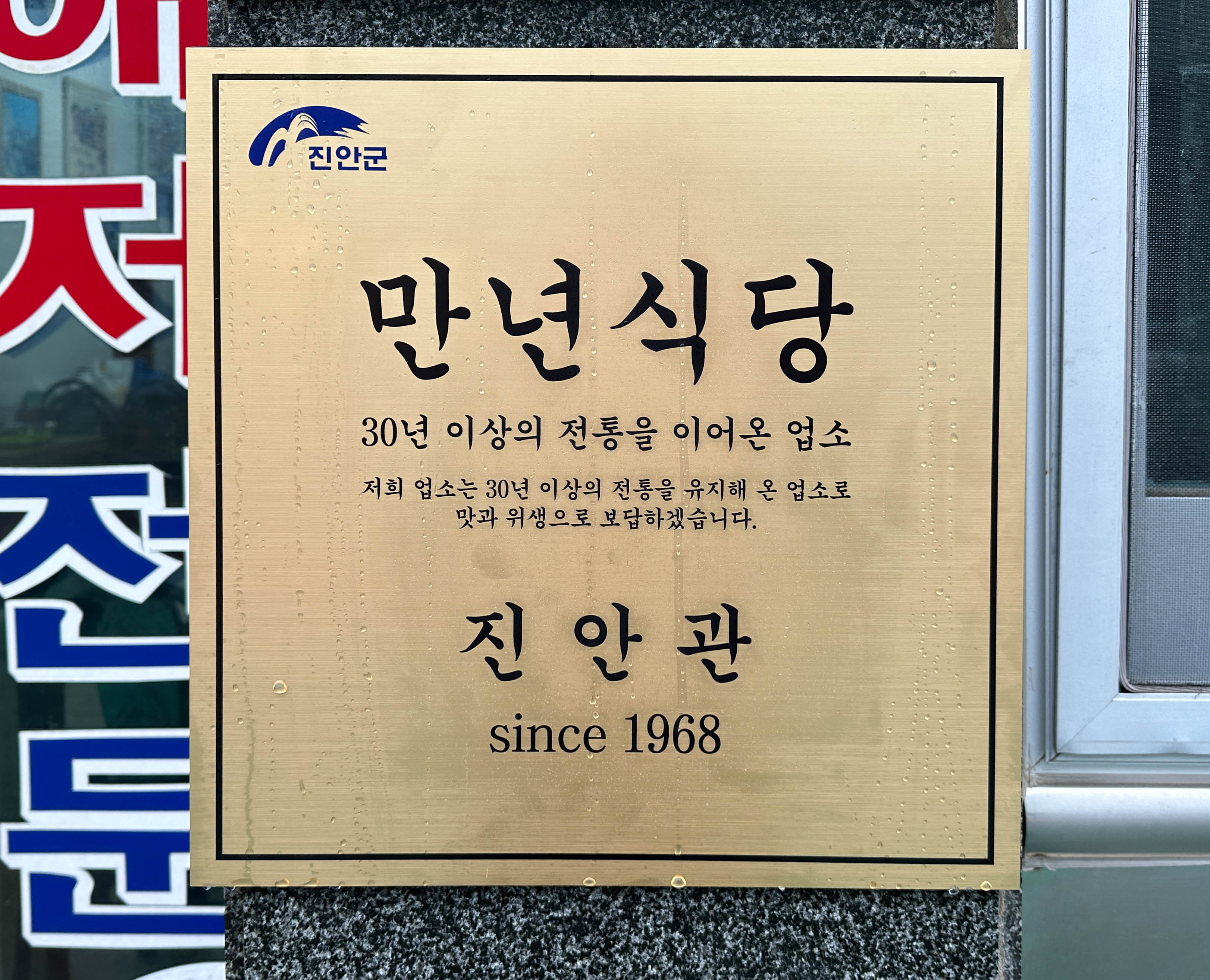 진안관의 위치는 전북 진안군 진안읍 군상리 282-5, 1층에 위치한 가게입니다. 이 가게는 1968년 개업해서 현재까지 '만년식당'으로 인정받고 있는 가게였습니다.