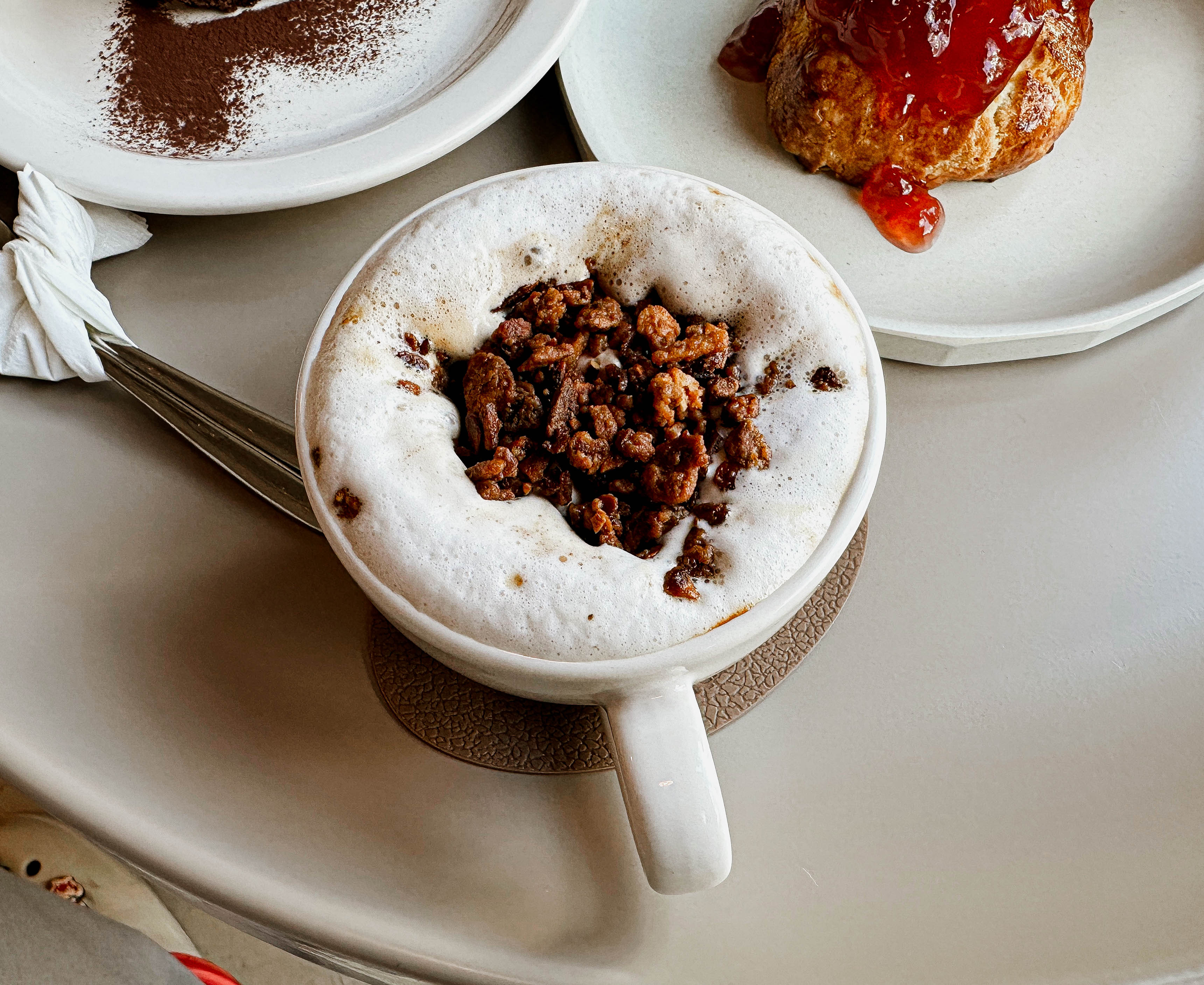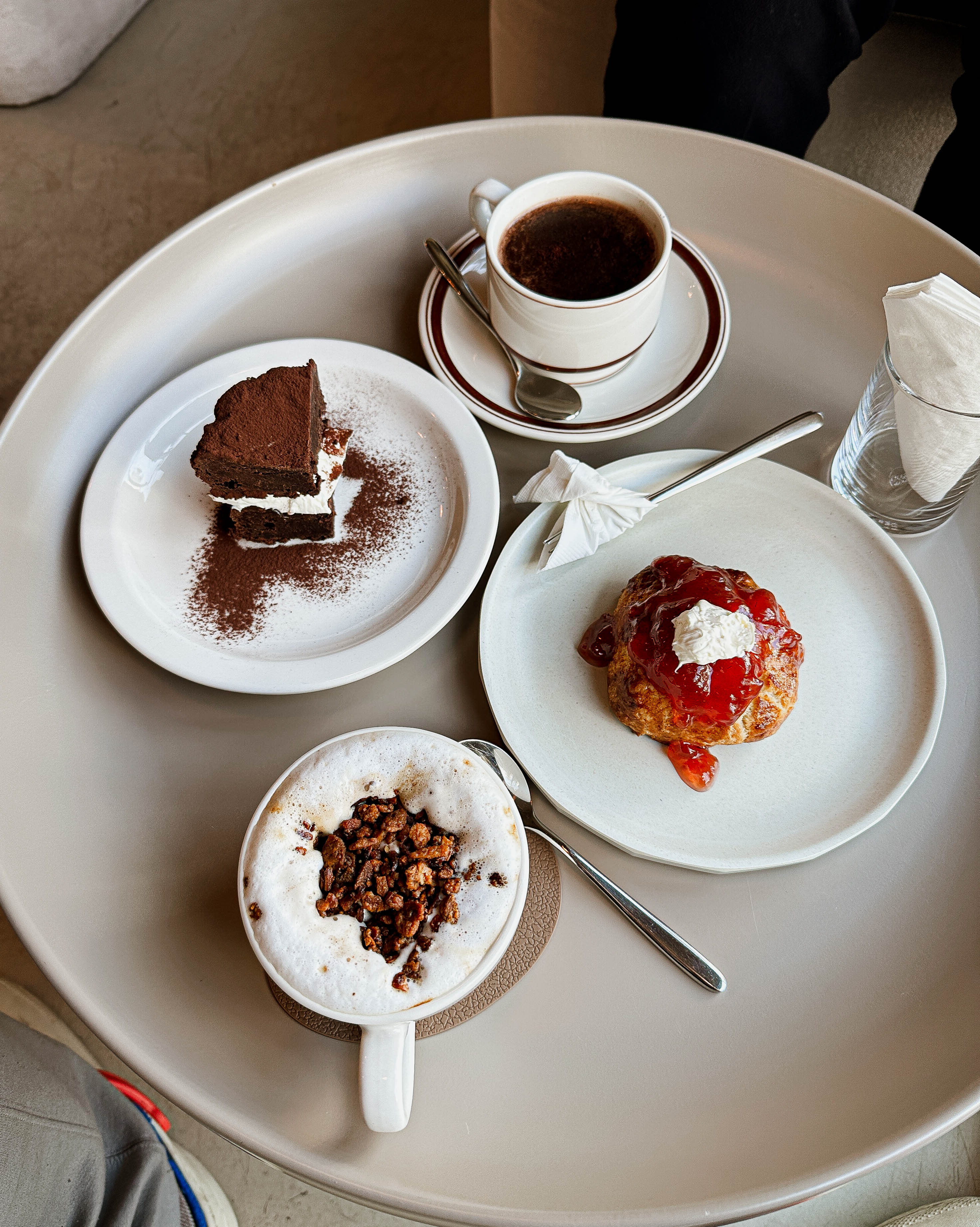 저희가 주문한 음료와 디저트가 나왔습니다. 제가 주문한 음료는 캄너티라는 메뉴였는데, 달달하면서도 고소한 메뉴였습니다. 스콘을 포함한 디저트들도 맛이 꽤 좋았습니다.