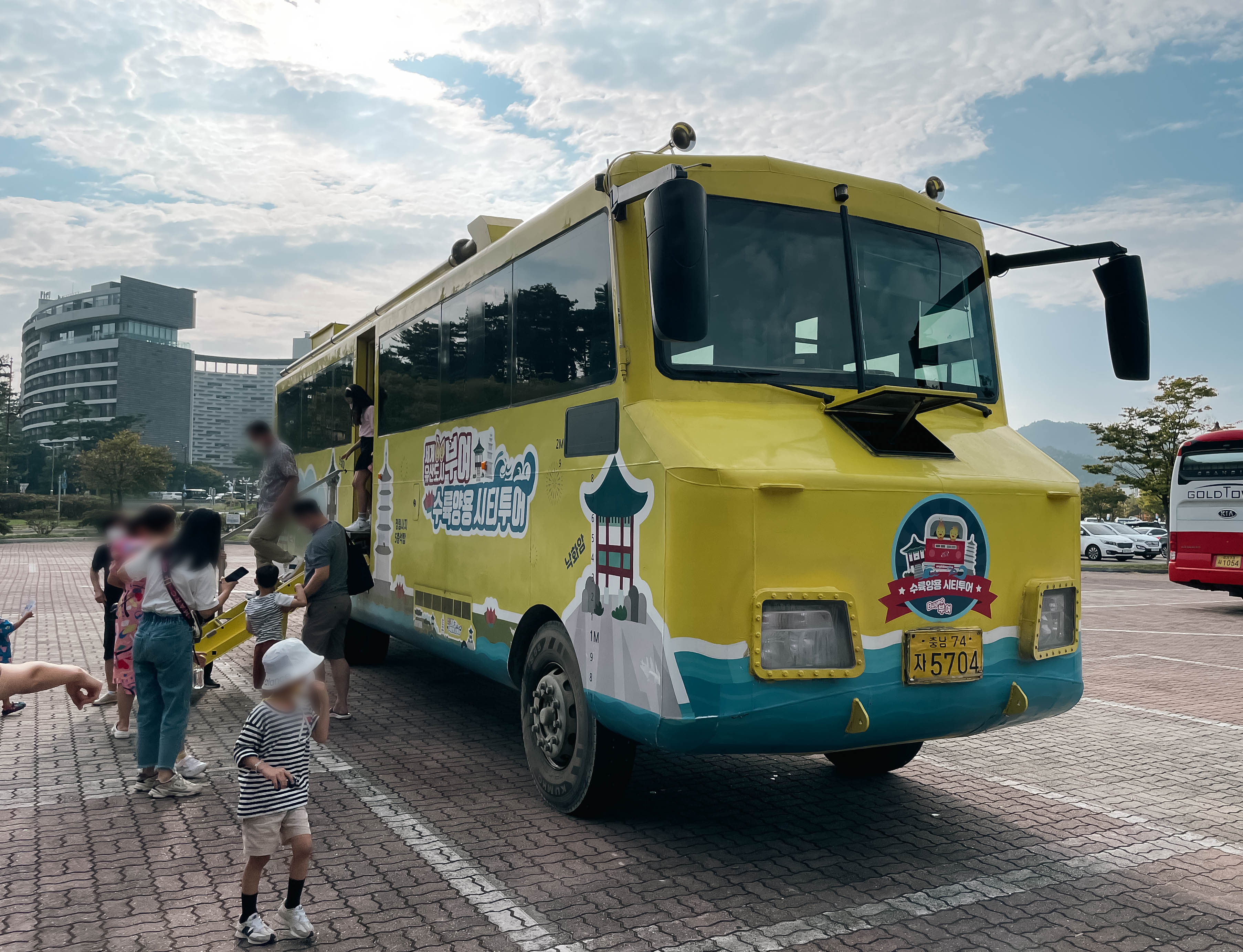 최근에 이용한 부여의 관광상품 <부여수륙양용버스투어> 인데요, 부여에서 국내 최초로 지상과 물 위를 드나드는 수륙양용 버스를 이용해 백마강(금강)의 풍경과 인근 장소를 소개하는 관광상품이었습니다.