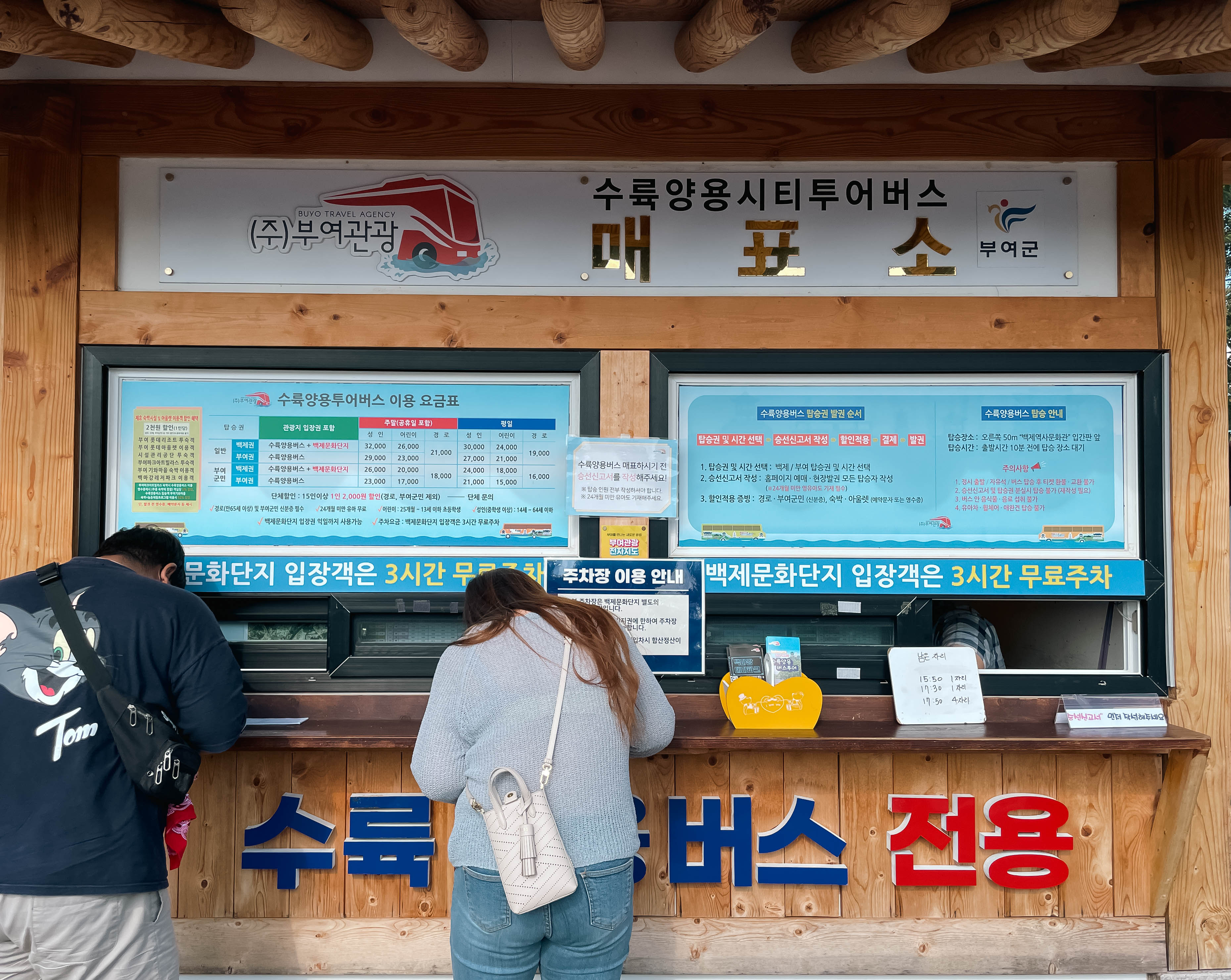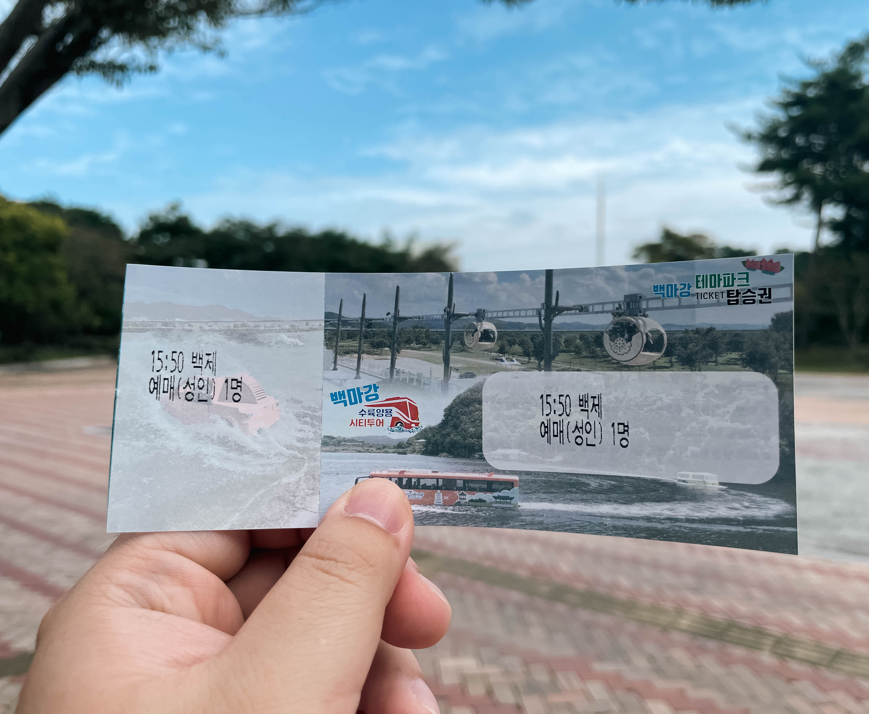 수륙양용버스투어는 위와 같이 매표소에서 직접 표를 구해도 되지만, 저는 인터넷으로 미리 예약을 하고 방문하였습니다. 수륙양용버스투어는 백제문화단지를 포함한 상품과, 수륙양용버스만 이용하는 상품 두 가지로 나뉘어 있었습니다. 운임요금은 성인기준 27,000원~ 32,000원 사이였으며, 9:30부터 17:50까지 운행하고 있었습니다.