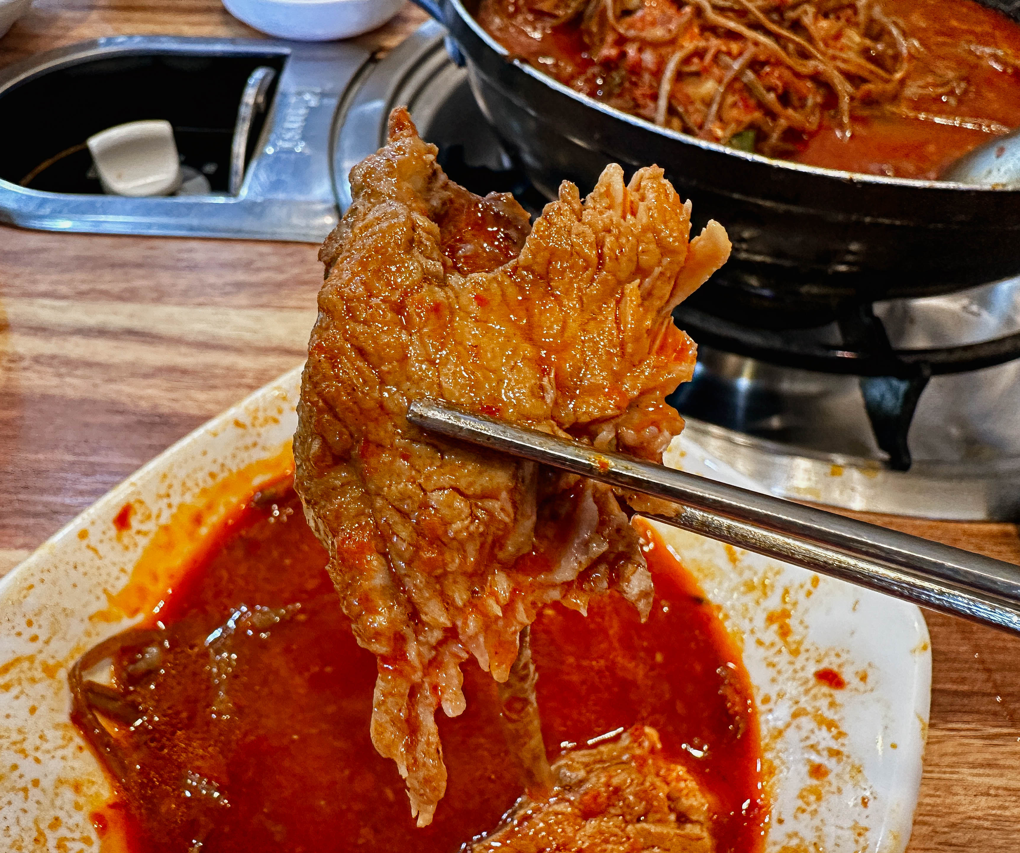 육일식당 고구마순 감자탕은 고구마순의 식감과 국내산 돈등뼈가 들어가 맛있었습니다. 국내산 돈등뼈를 쓰는 가게들은 대부분 퍽퍽한 느낌을 주는데, 전주 육일식당의 감자탕도 비슷한 느낌을 받았습니다. 그래도 먹기에 나쁘지 않았고요, 국물도 진해서 맛있게 먹을 수 있었습니다.
