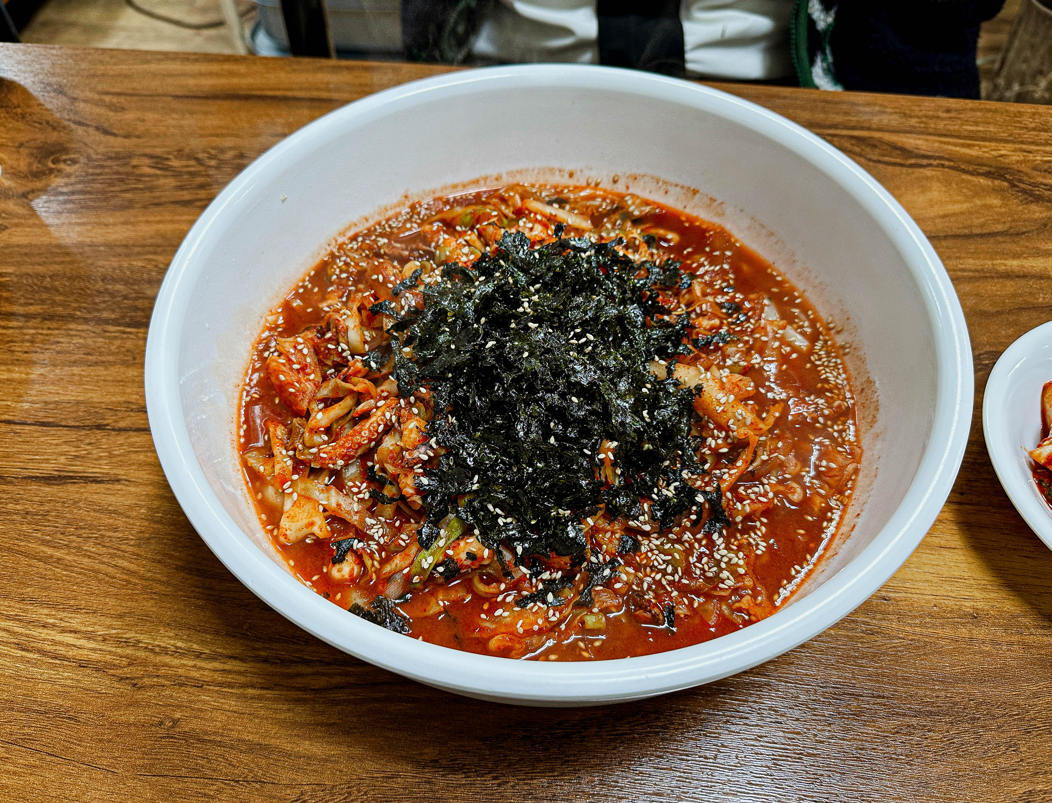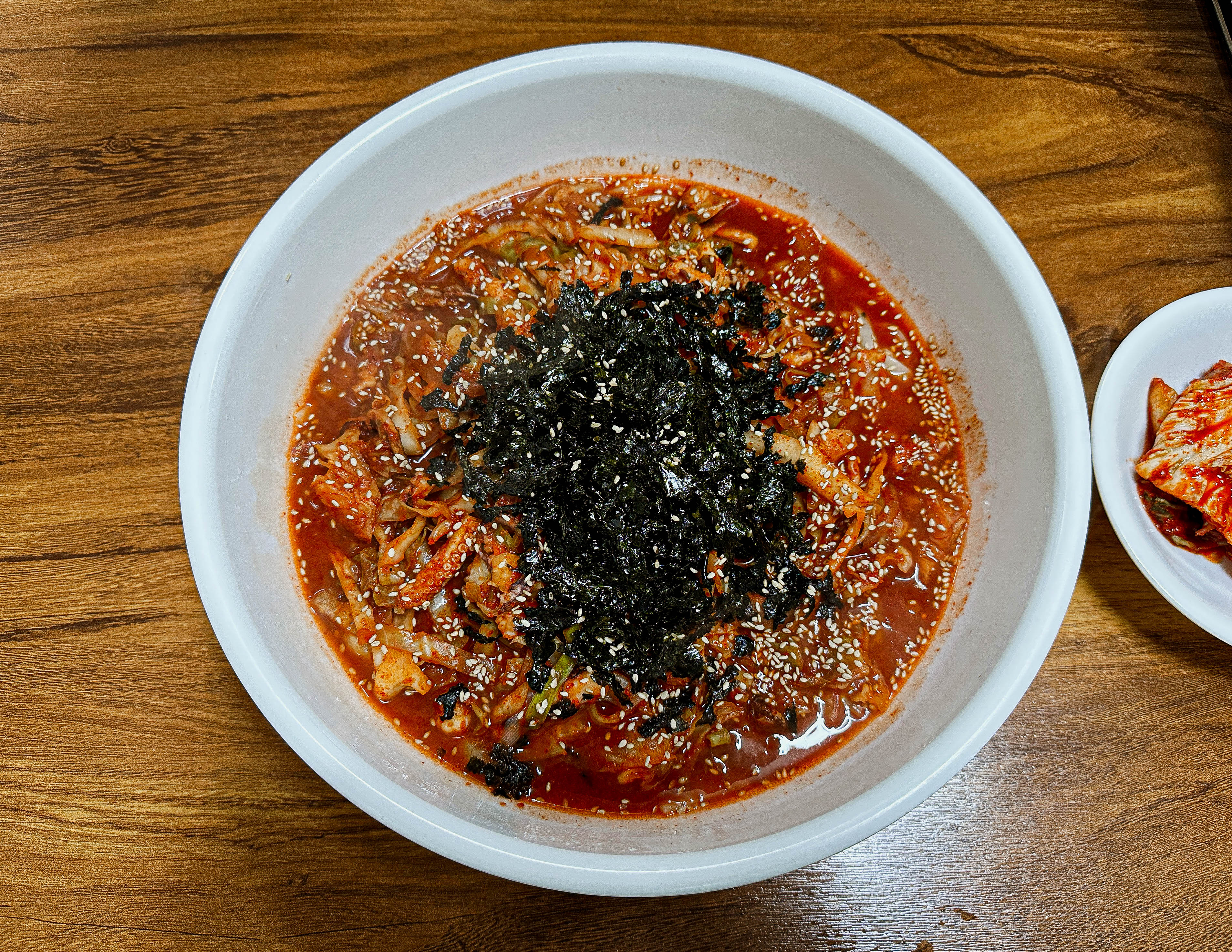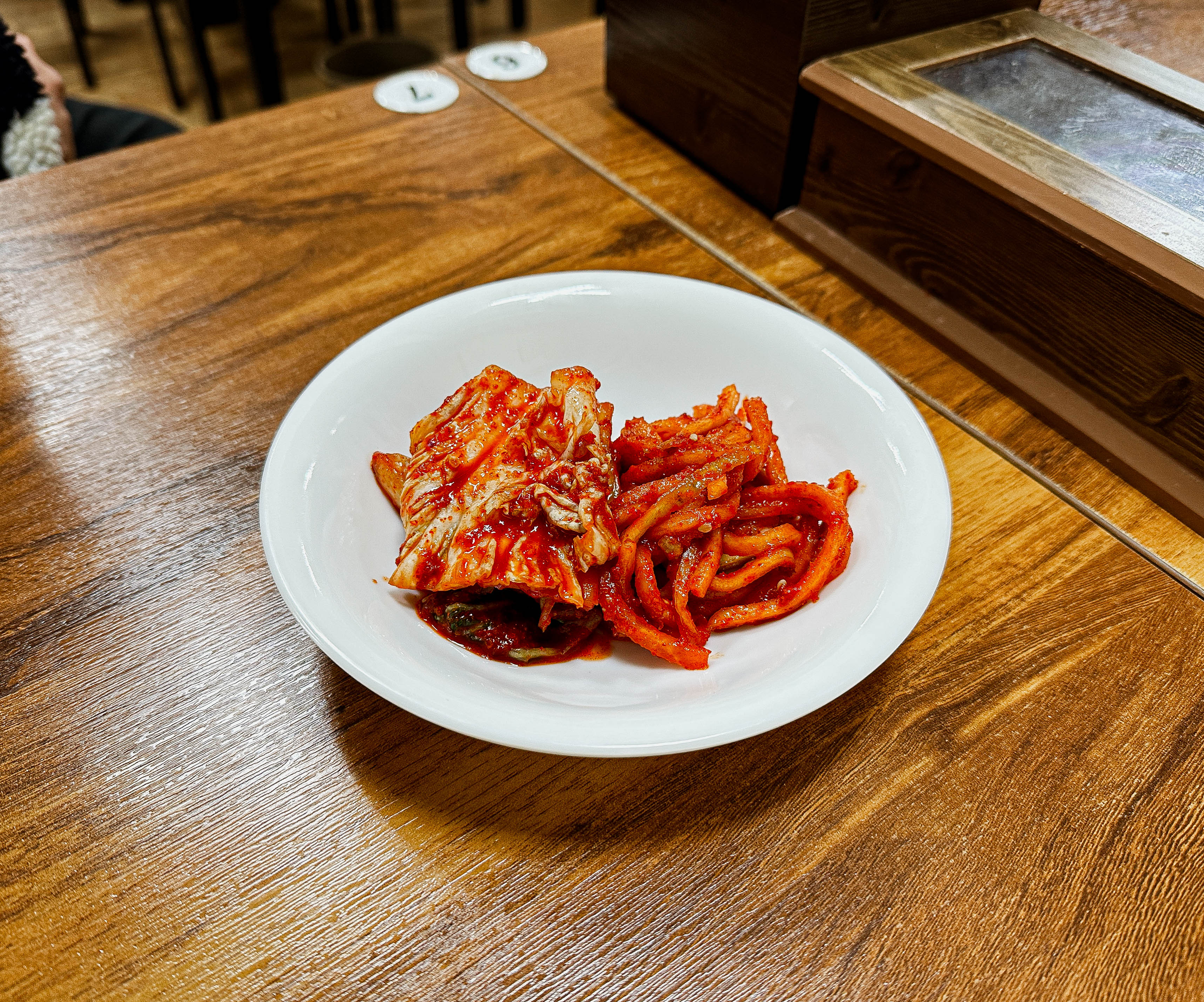 면낙지는 살짝 매콤한 형태의 낙지볶음과 칼국수의 조합이 신선했는데, 살짝 매운맛이 강한 편이었지만 얼큰하게 당기는 맛이 계속 손이 가게 만드는 것 같았습니다. 하지만 단점이 있다면 면낙지 속 낙지가 쫄깃한 식감보다는 냉동되었던 것처럼 툭툭 끊기는 식감이 있어 아쉬웠습니다.