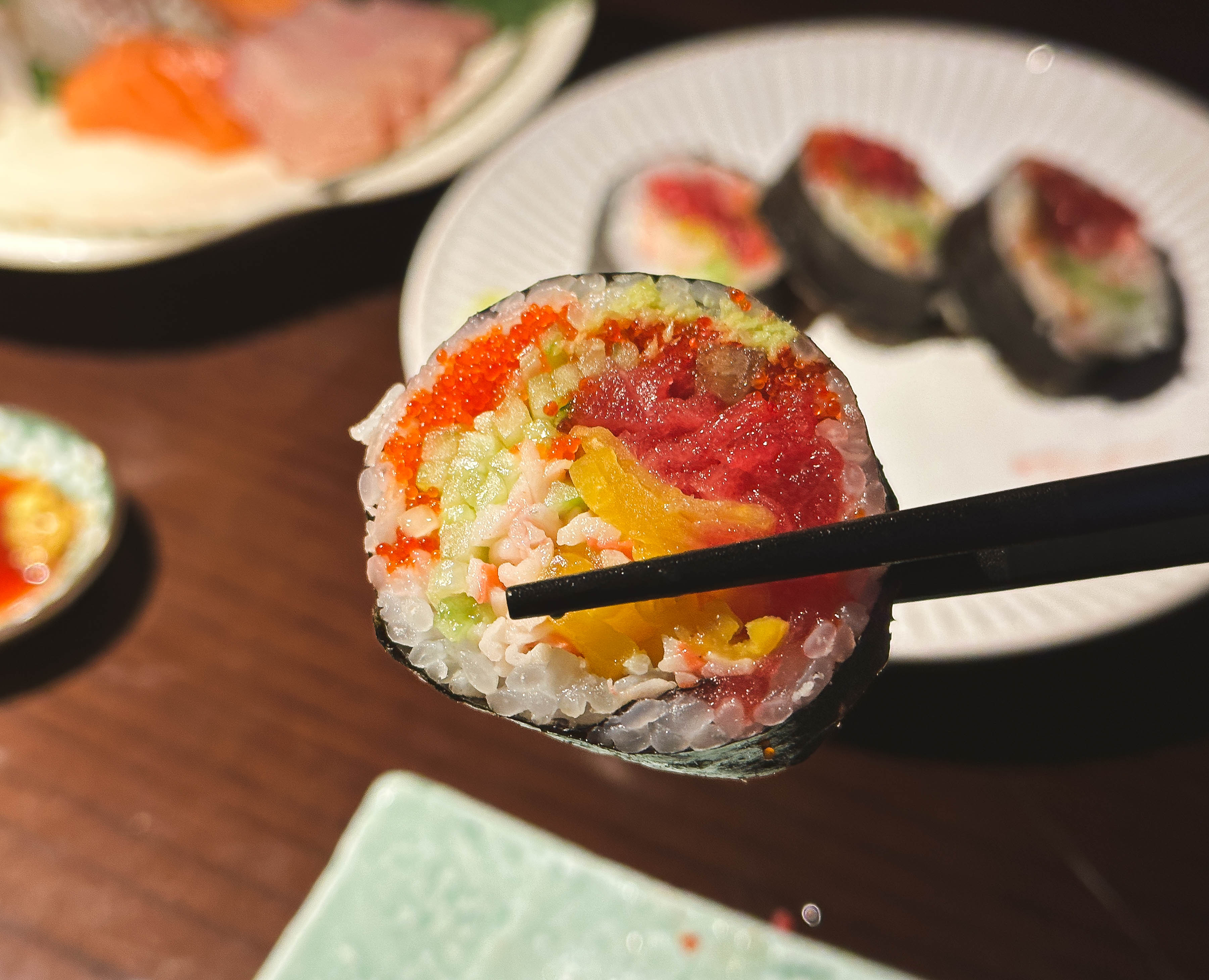 주문한 참치마키(반줄)도 나왔습니다. 솔직히 숙성회에 꽂혀서 참치마키는 별로 눈에 들어오진 않더라고요. 날치알, 오이, 맛살, 단무지 등이 들어간 참치마키는 새콤한 맛이 있는 메뉴였습니다.