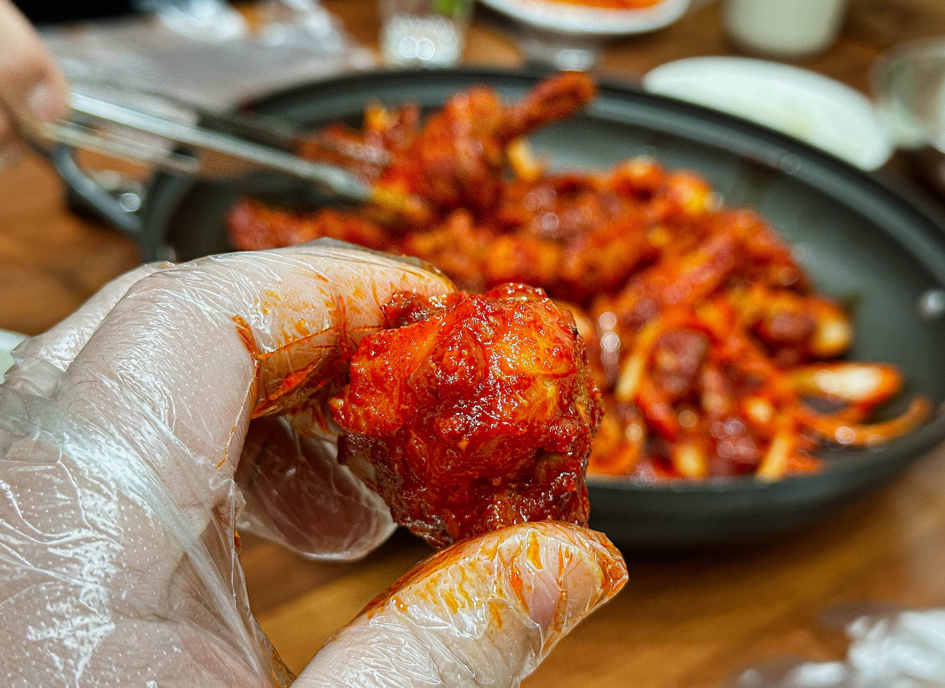 보통 우리가 흔히 먹는 치킨은 어린 닭을 사용해 부드러운 식감이 특징이라면, 폐계닭의 재료인 늙은 닭은 질기고 단단한 질감의 고기가 특징이라 할 수 있겠습니다. 솔직히 폐계닭 양념맛은 좋았지만, 닭은 상당히 질겼는데 원래 이렇게 먹는 메뉴이다 보니 씹는 식감을 즐기며 먹었습니다.