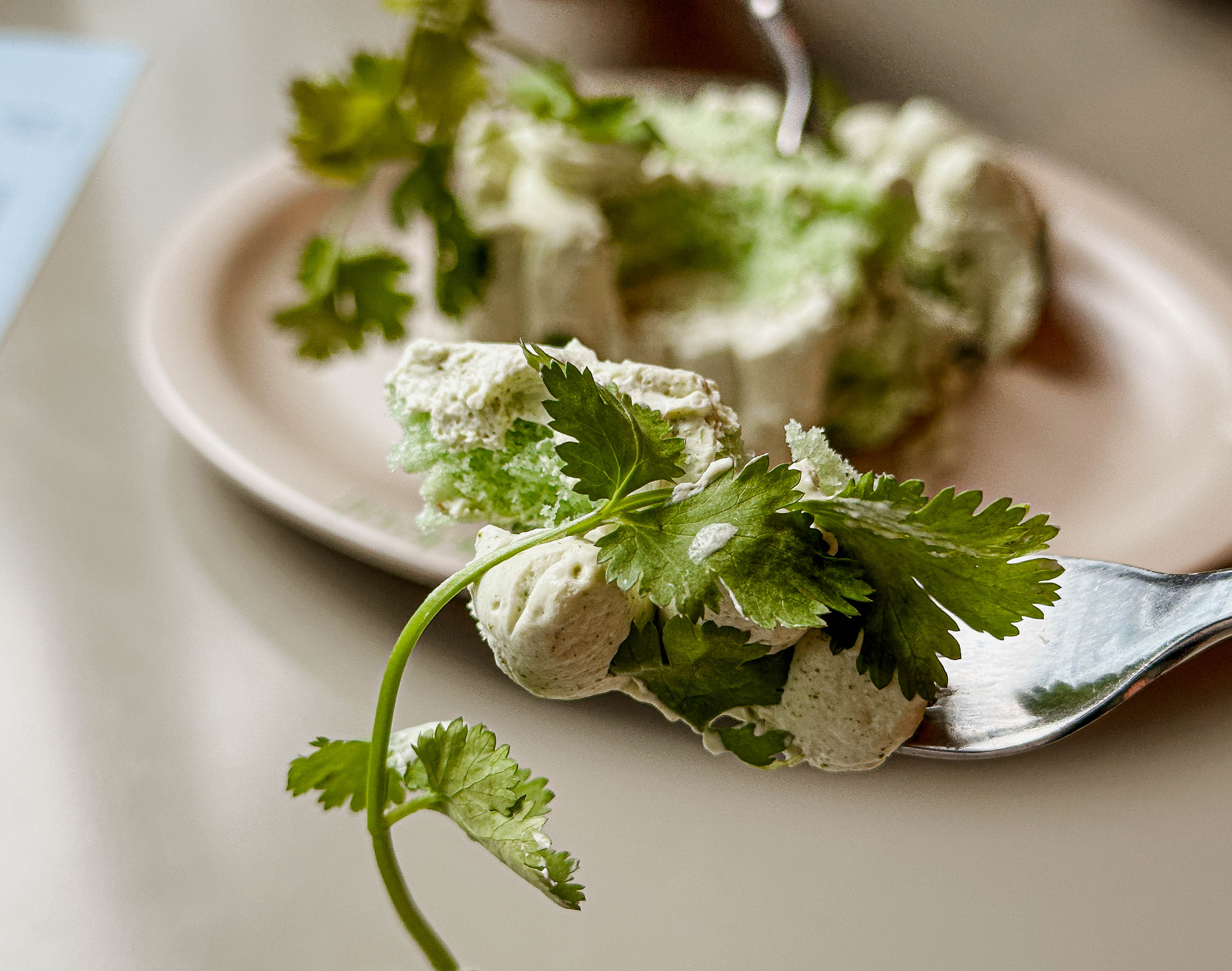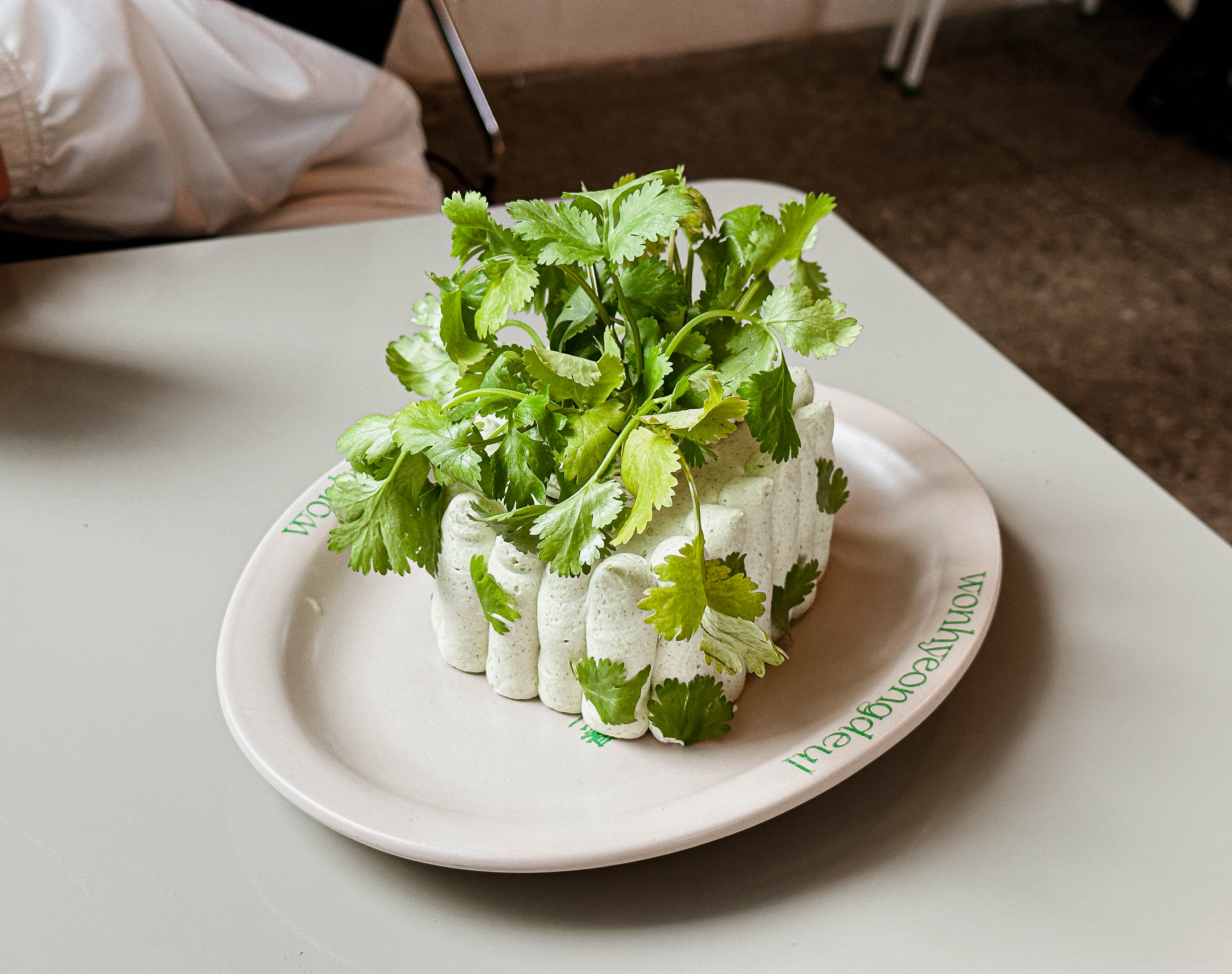 원형들의 고수케이크는 그린 제누아즈 시트와 레몬크림을 기반으로 한 케이크 위에 고수를 갈아 넣은 생크림 그리고 생 고수잎을 올려 마무리 했다고 합니다. 원형들이라는 가게 이름답게 본래의 모양 그대로를 살린 케이크를 먹을 수 있었습니다. 고수잎만 따로 먹었을 때는 비릿하면서 느끼한 고수의 맛이 거북했지만, 케이크와 크림을 같이 곁들이니 먹을만하더라고요.