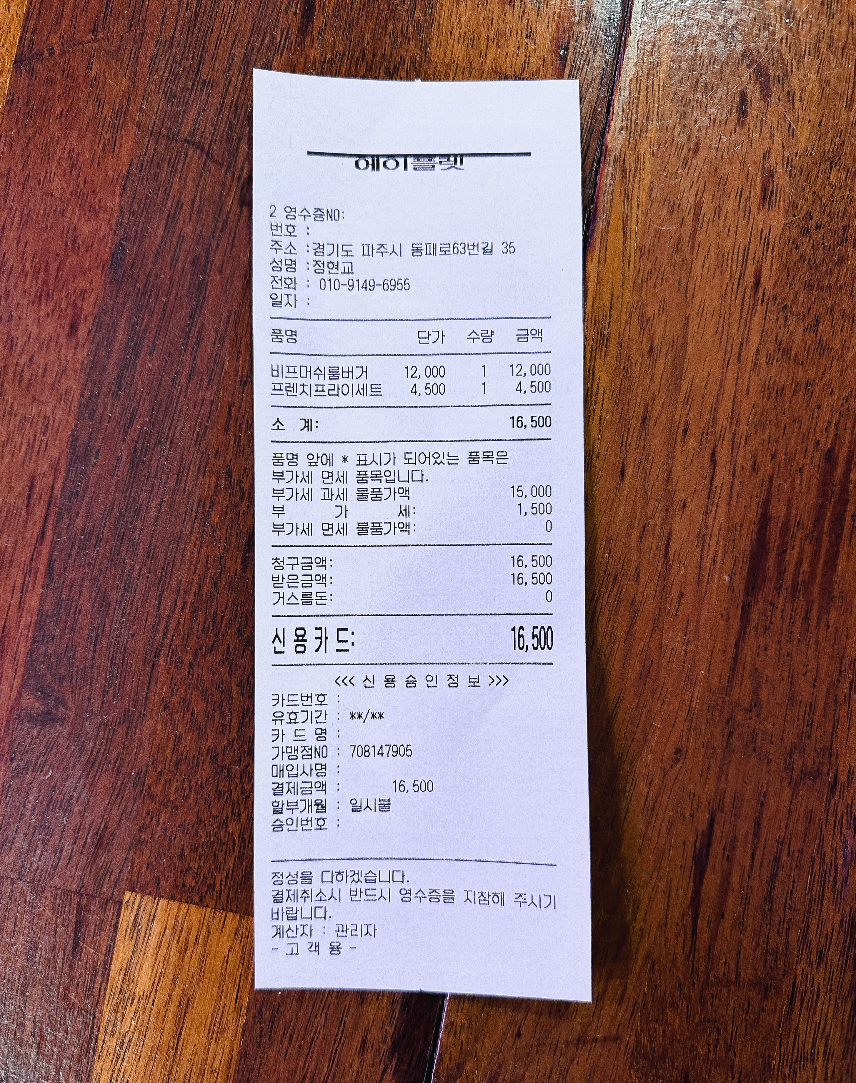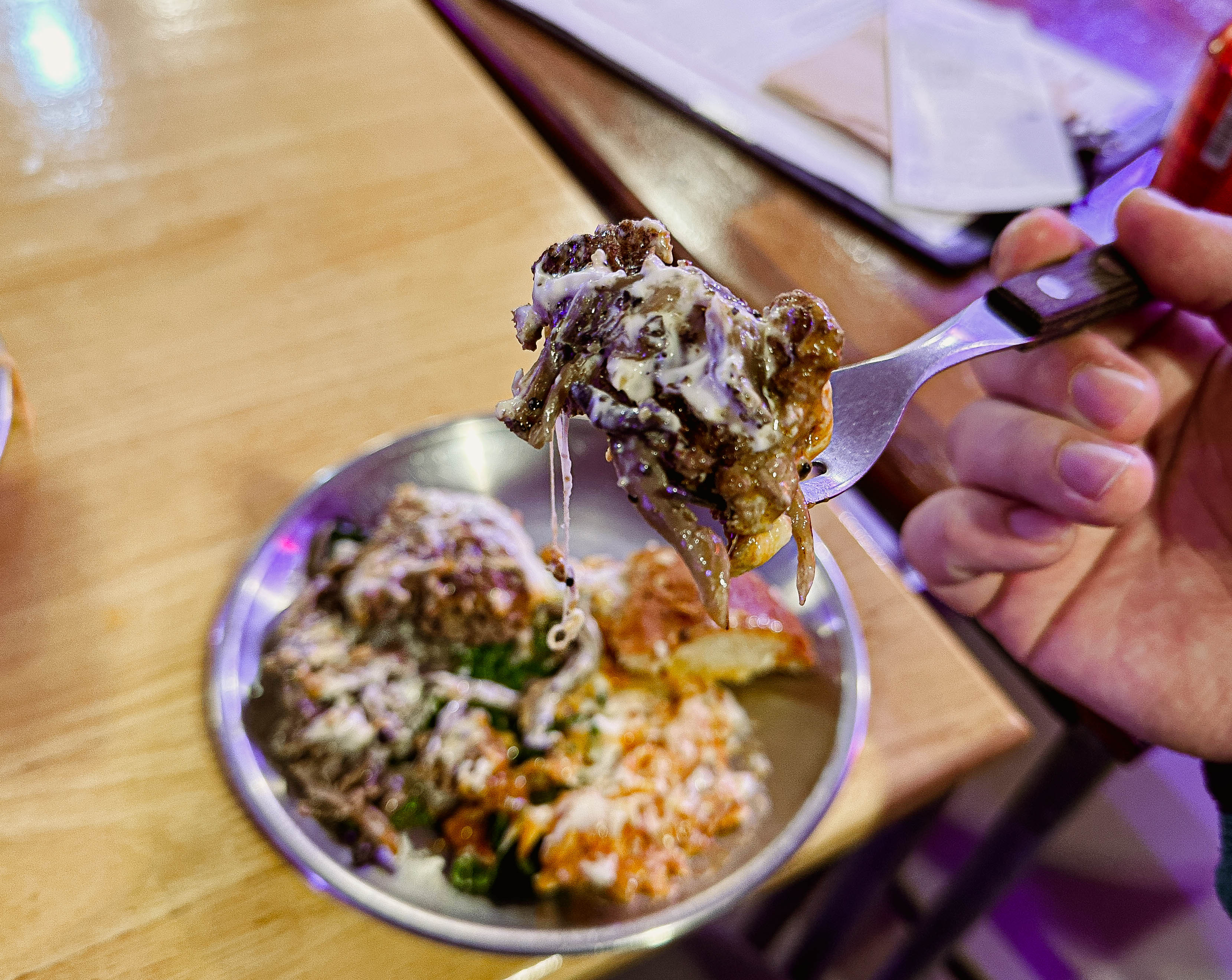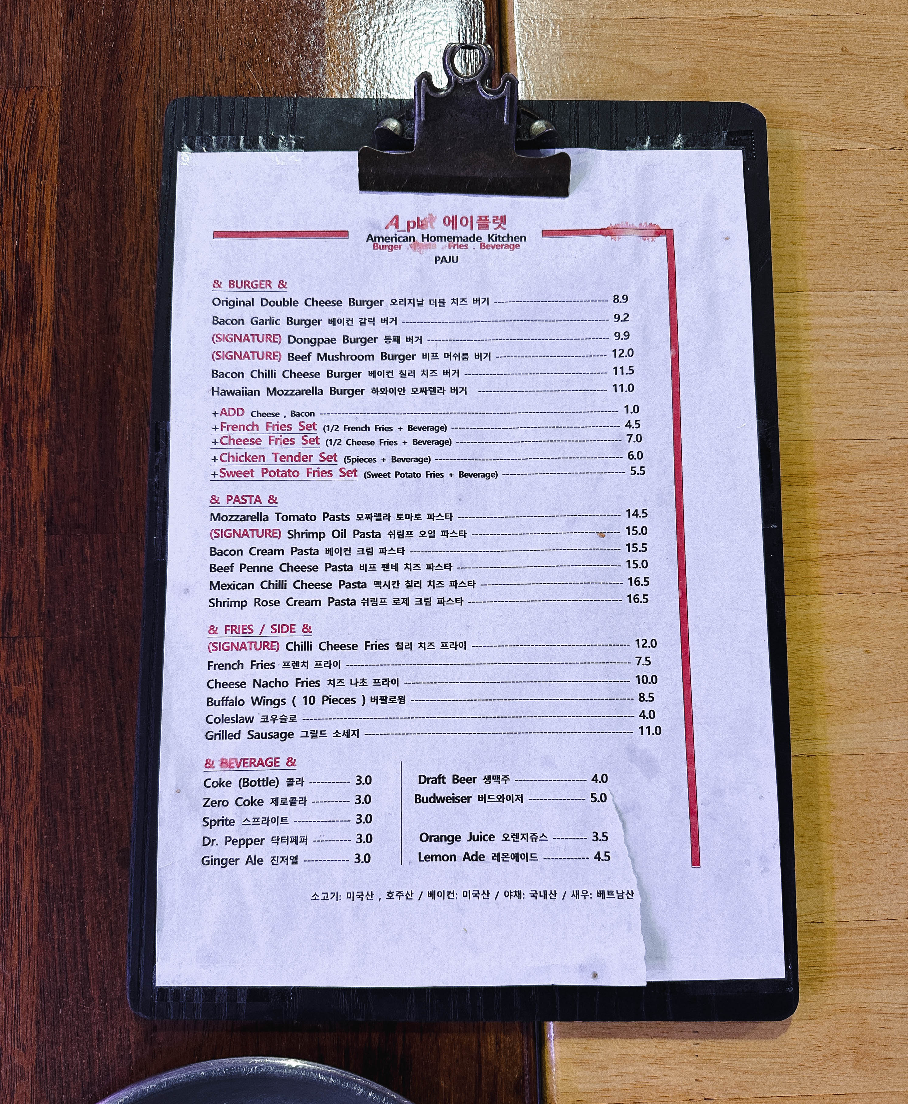 저는 개인적으로 수제버거를 먹을 땐 좀 더 짠맛이 좋던데, 제 기준에 조금 아쉬움이 있었습니다. 그리고 사진을 찍는 사람으로서 개인적인 아쉬움은 조명이 음식에 맞게 조금 더 따뜻한 색이었으면 좋겠다는 마음이 들었습니다.