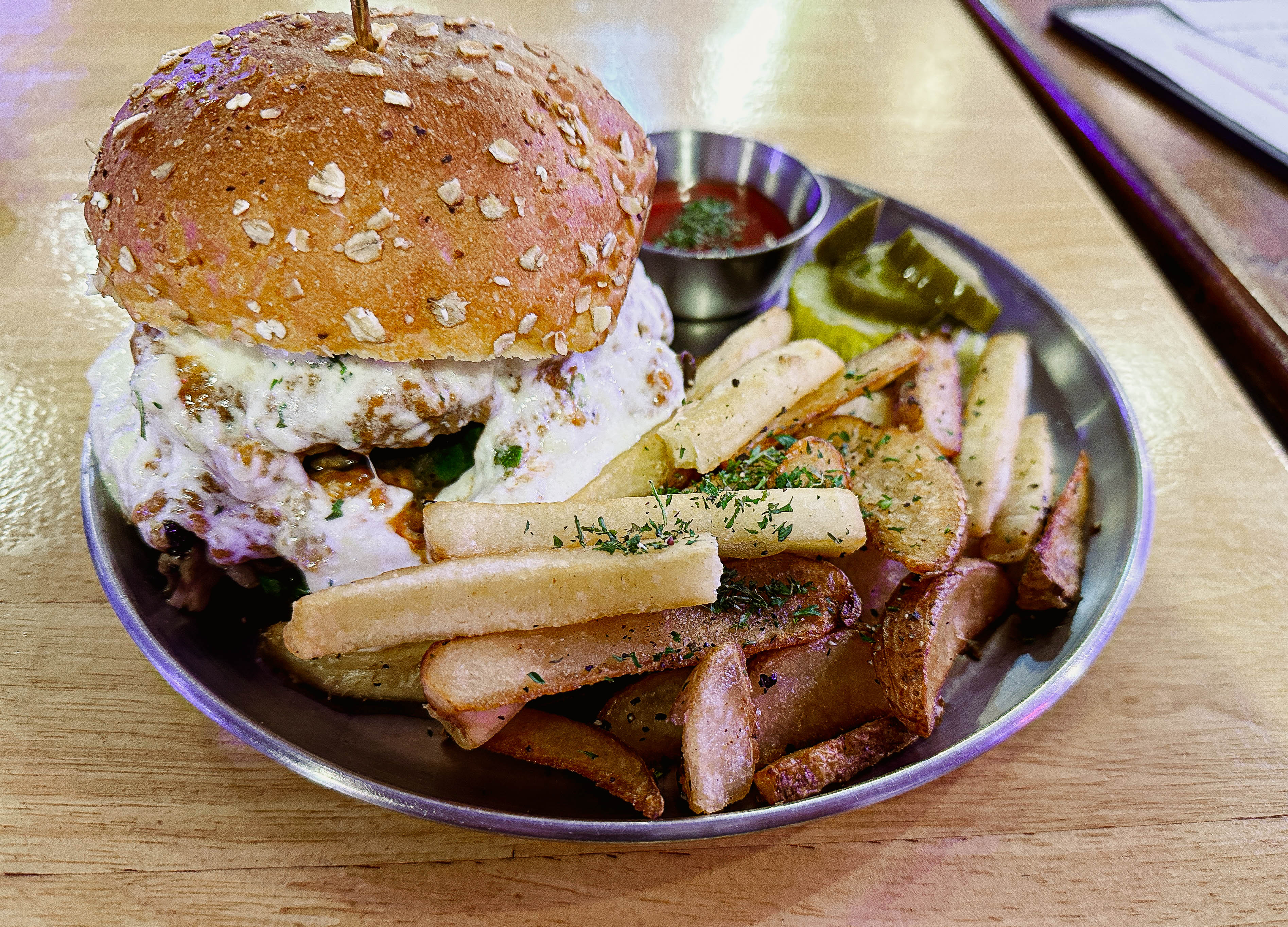 저는 개인적으로 수제버거를 먹을 땐 좀 더 짠맛이 좋던데, 제 기준에 조금 아쉬움이 있었습니다. 그리고 사진을 찍는 사람으로서 개인적인 아쉬움은 조명이 음식에 맞게 조금 더 따뜻한 색이었으면 좋겠다는 마음이 들었습니다.