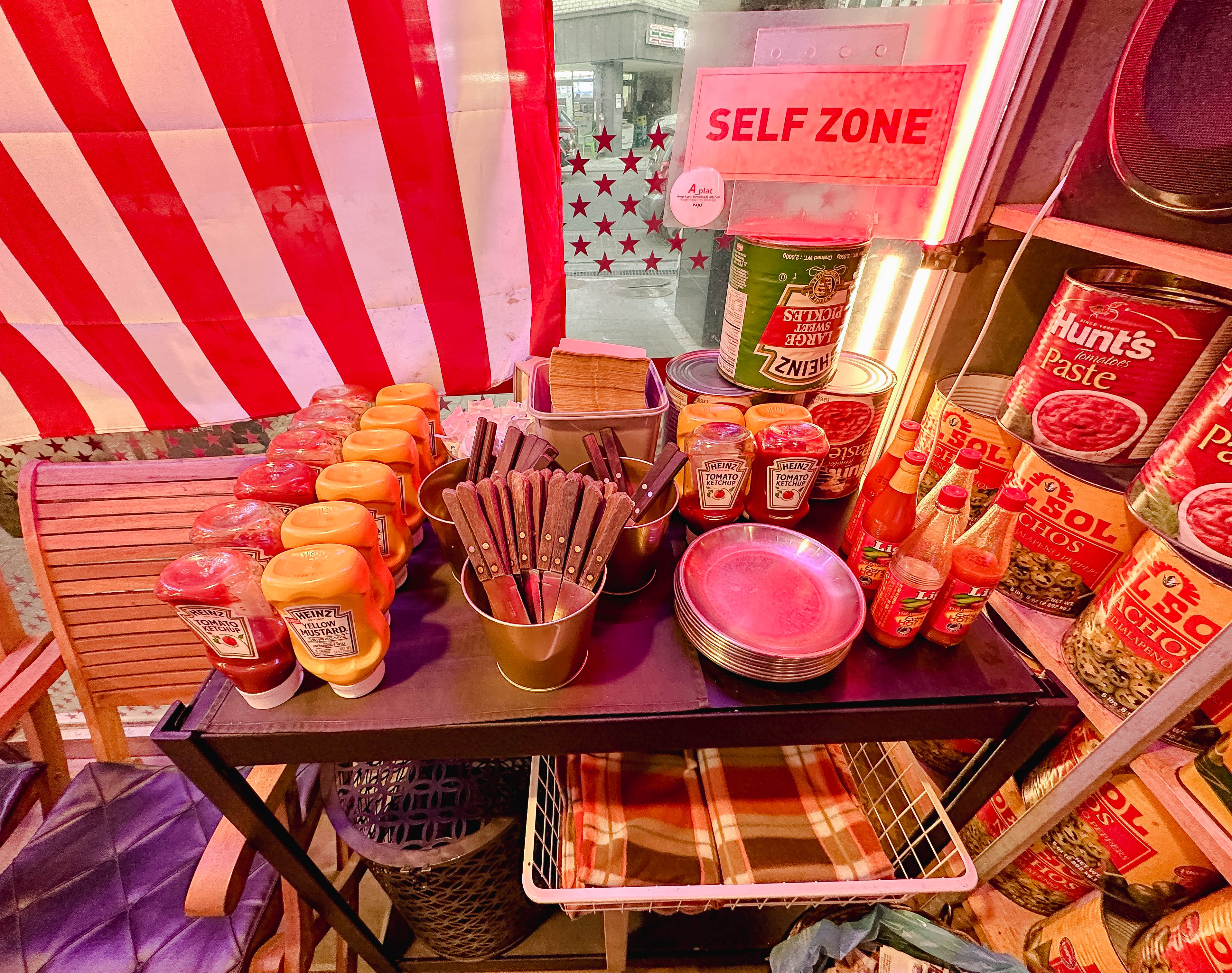 * 케첩, 머스타드, 휴지, 물휴지 등은 셀프코너에서 직접 이용할 수 있었습니다.