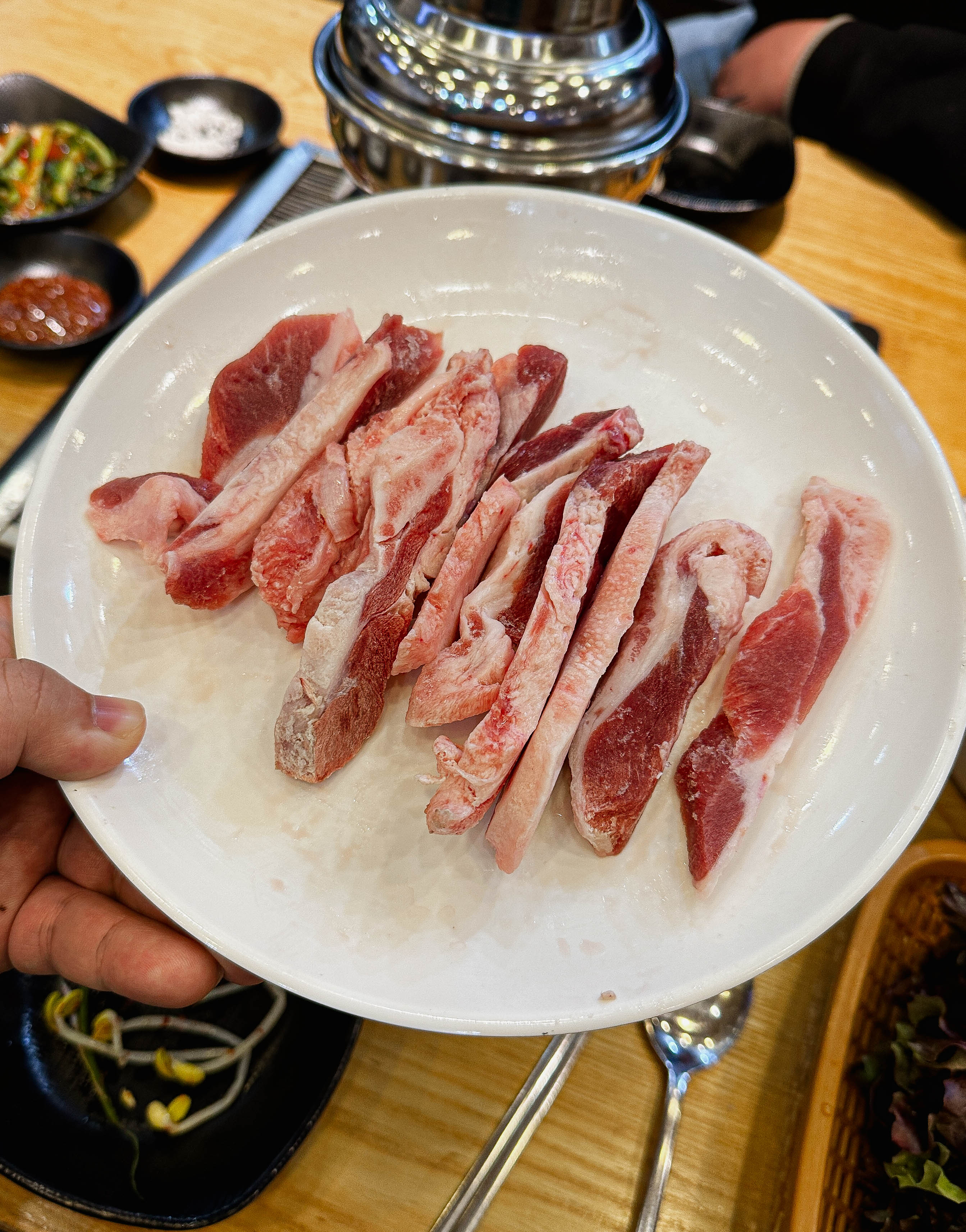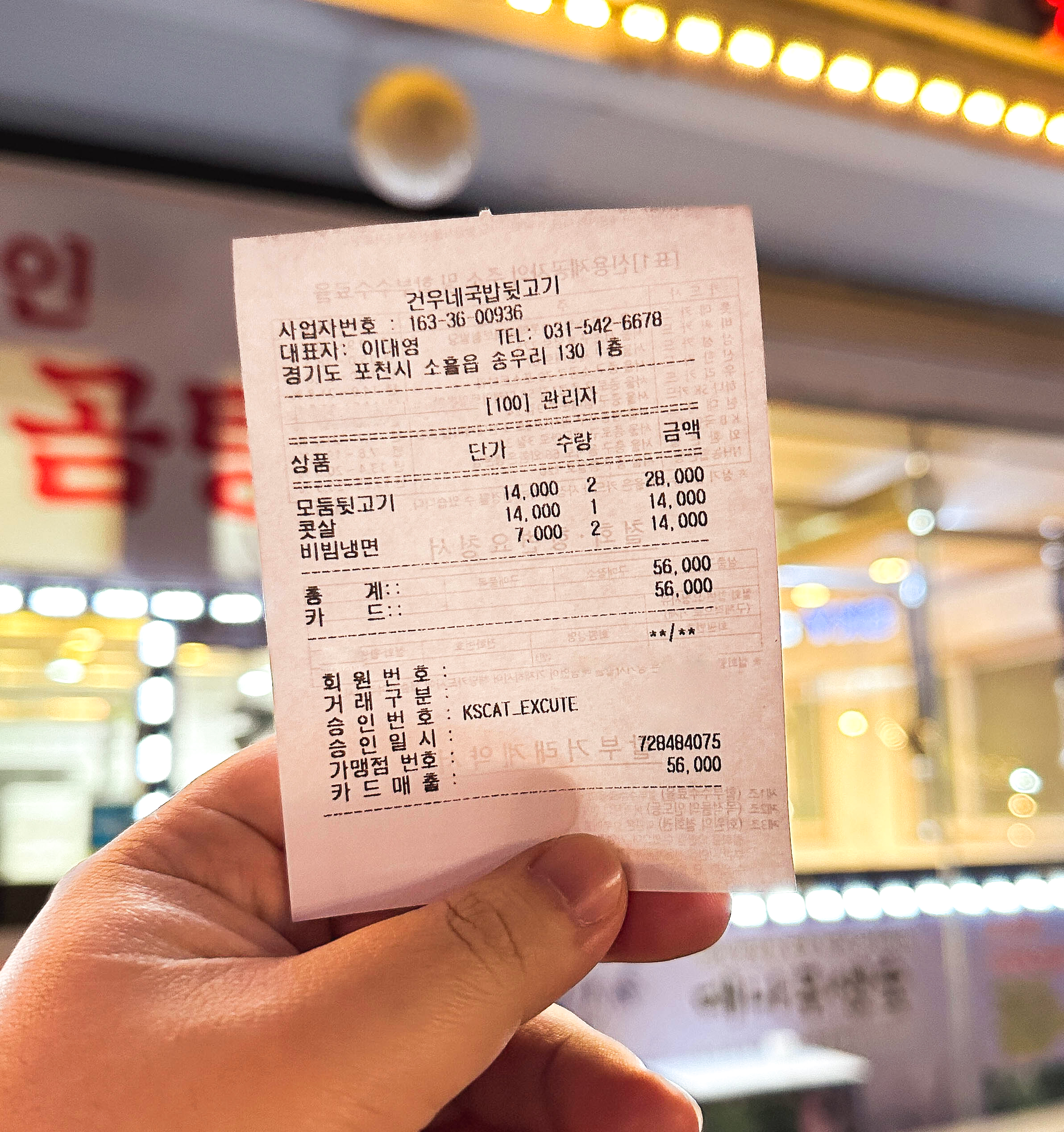 * 저희는 모둠뒷고기 2인분, 뽈살 1인분, 비빔냉면 2개를 주문했습니다.