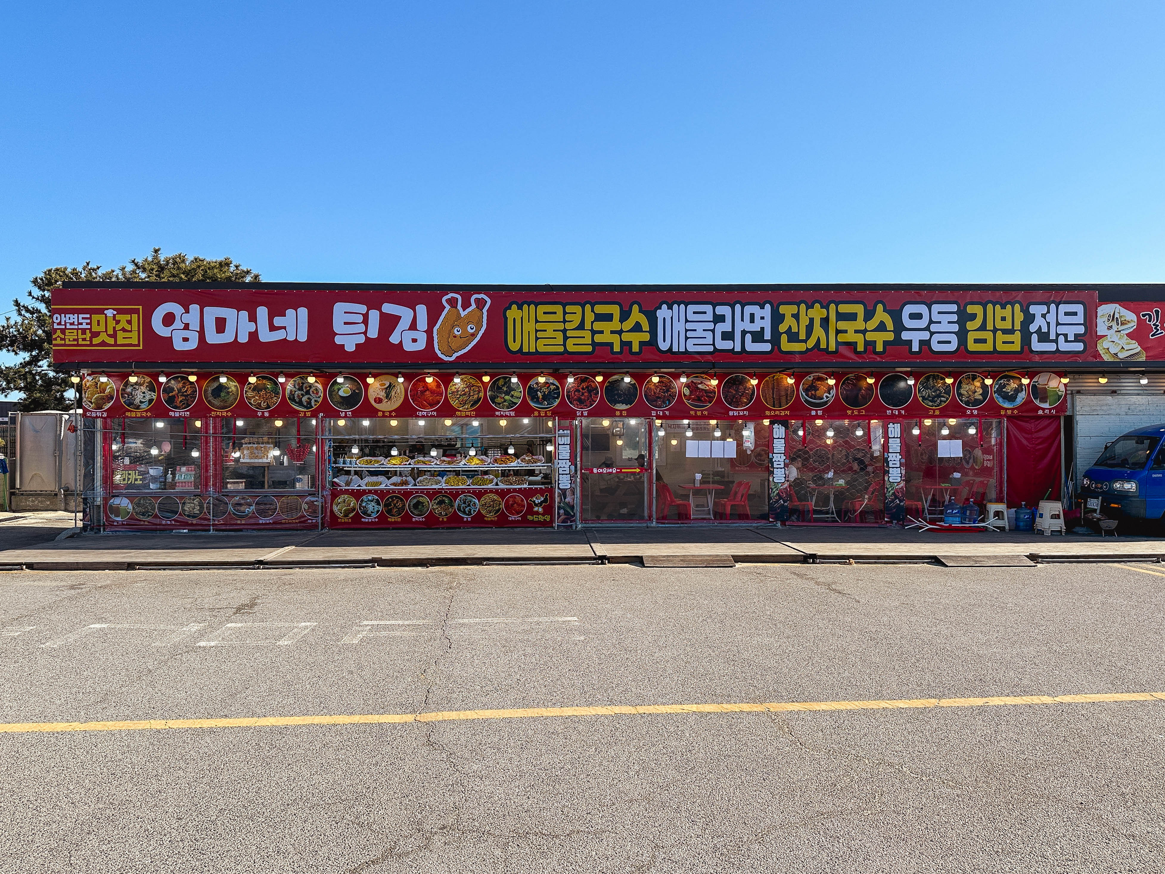 튤립축제 행사장 근처는 대부분 튀김 전문점이 많이 자리 잡고 있었습니다. 주차장 한쪽에 델마호텔&카페가 있으니 카페 및 호텔이용을 하시는 분들은 이용해 보셔도 좋을 것 같습니다. 저는 그중에 엄마네 튀김이라는 가게를 다녀왔습니다.