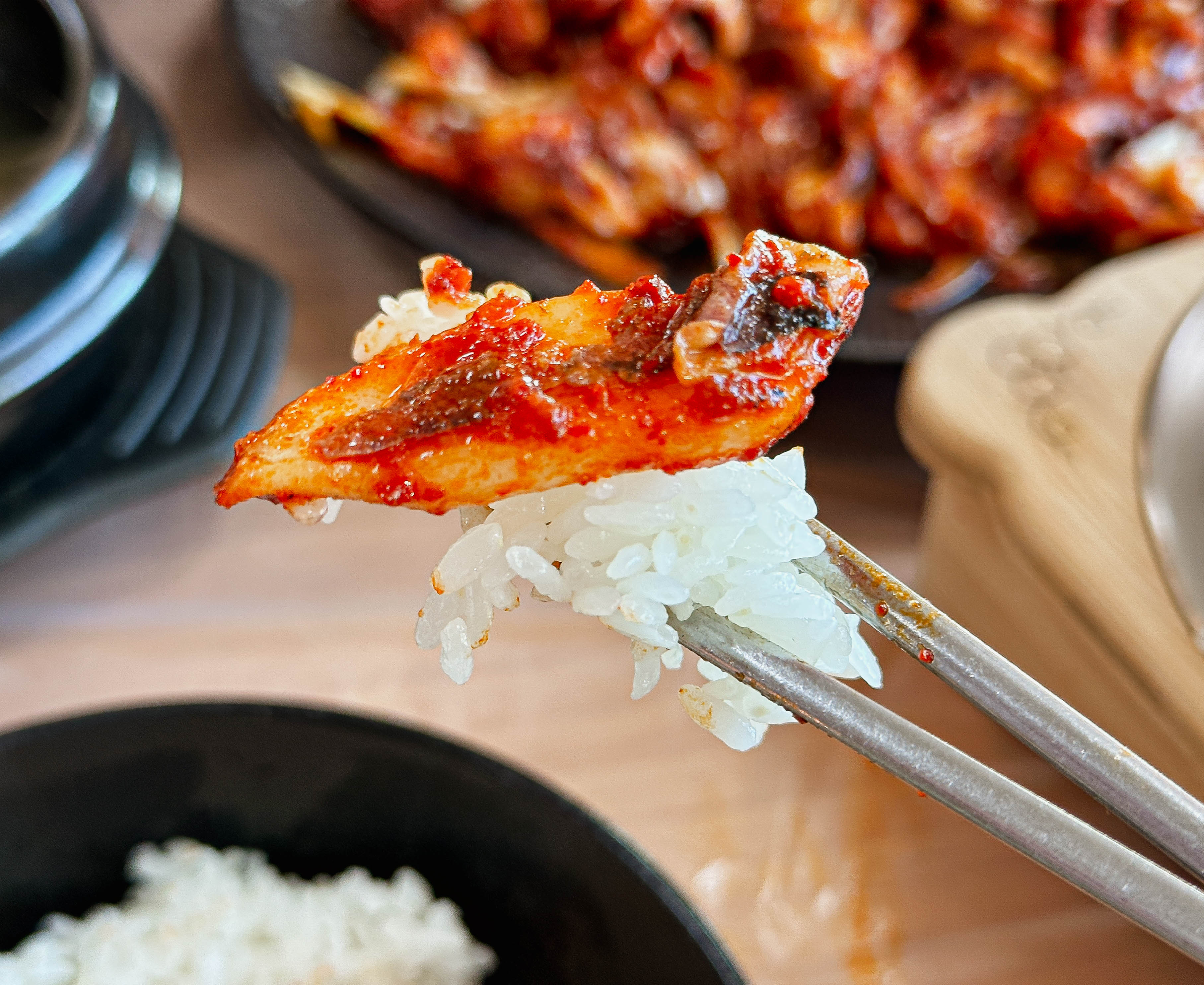 태안 해비알꽃게는 태안 튤립축제 행사장 인근에 식사할만한 장소를 찾아보다가 발견한 장소입니다. 갑오징어 특유의 탱글 하면서도 부드러운 식감의 갑오징어볶음은 불맛이 은은하게 나면서 치즈까지 올라가 매콤고소한 맛이 특징인 메뉴였습니다. 갓 지은 솥밥과 함께 먹으면 완전 꿀맛이더라고요. 해비알꽃게는 게국지로도 유명하지만, 갑오징어볶음도 추천하고 싶습니다.